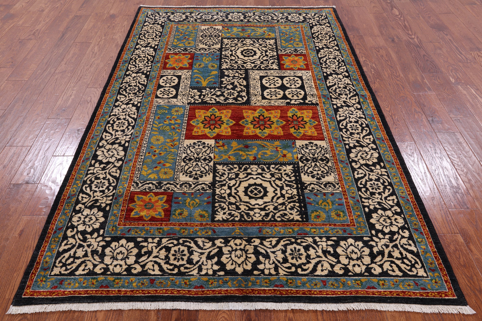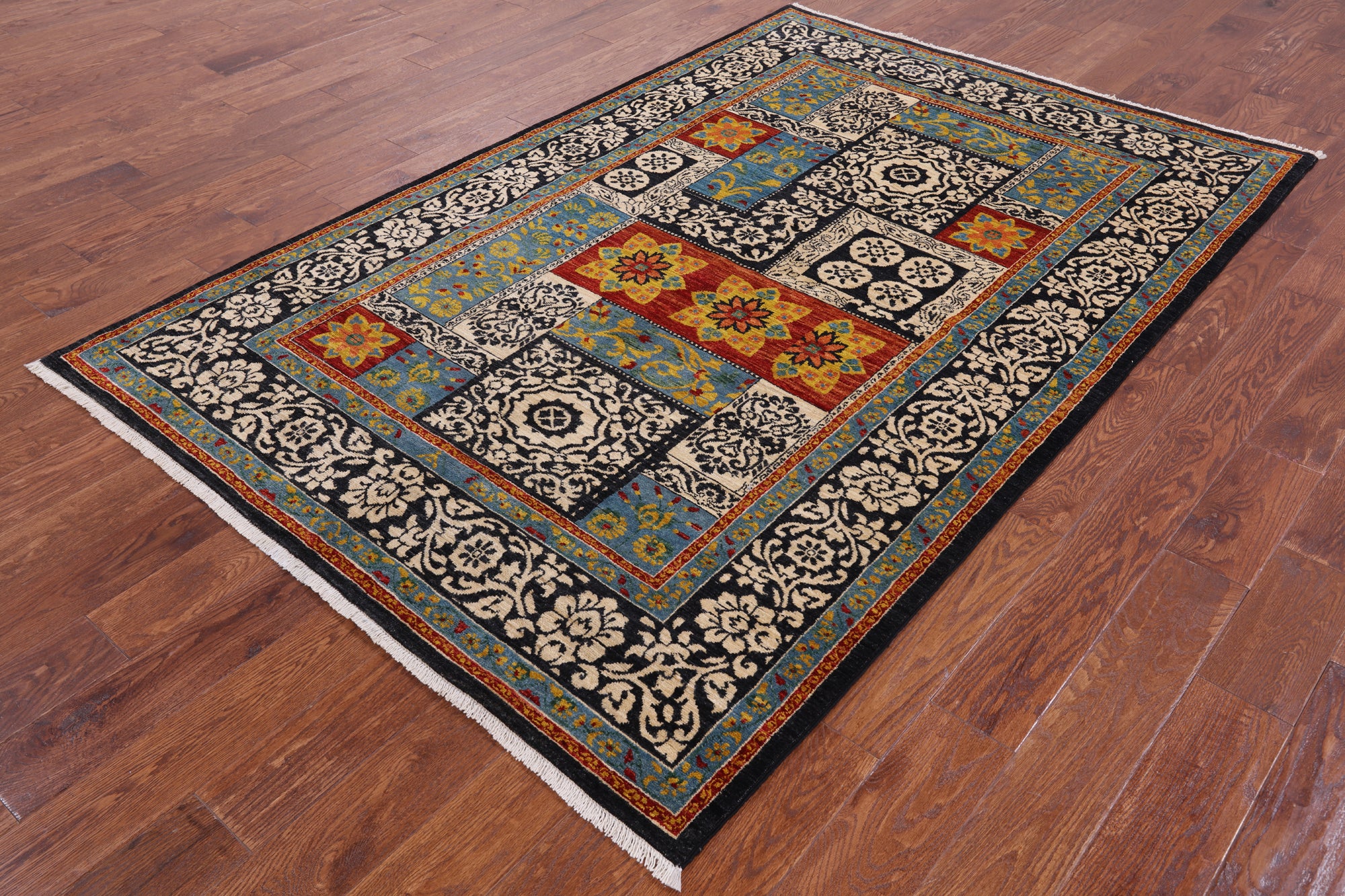 Black William Morris Handmade Wool Area Rug - 5' 2" X 7' 10"