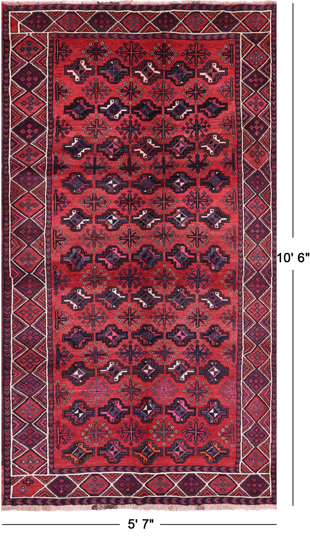 Red Persian Hand Knotted Wool On Wool Rug - 5' 7" X 10' 6"