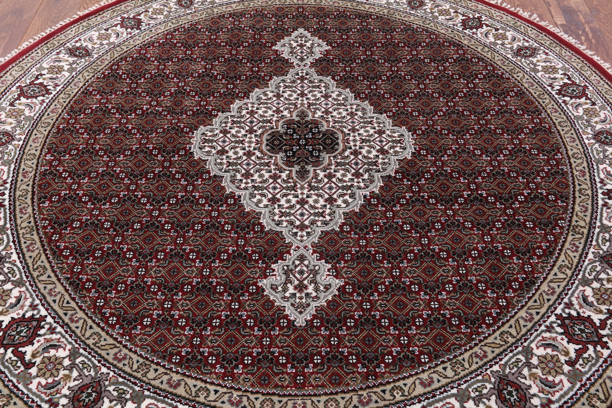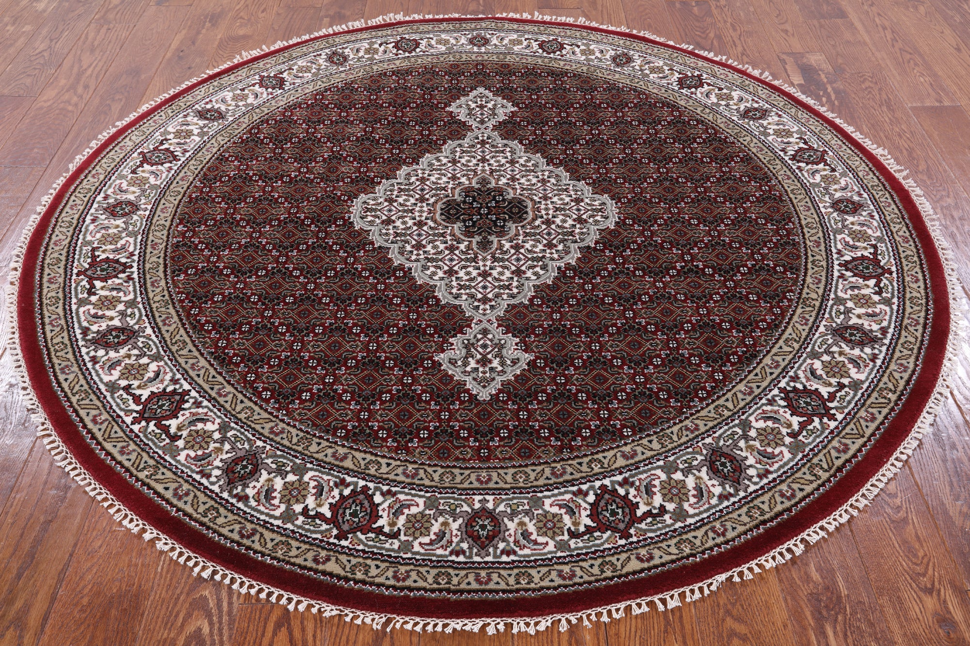 Round Bijar Hand Knotted Wool & Silk Rug - 6' 1" X 6' 1"