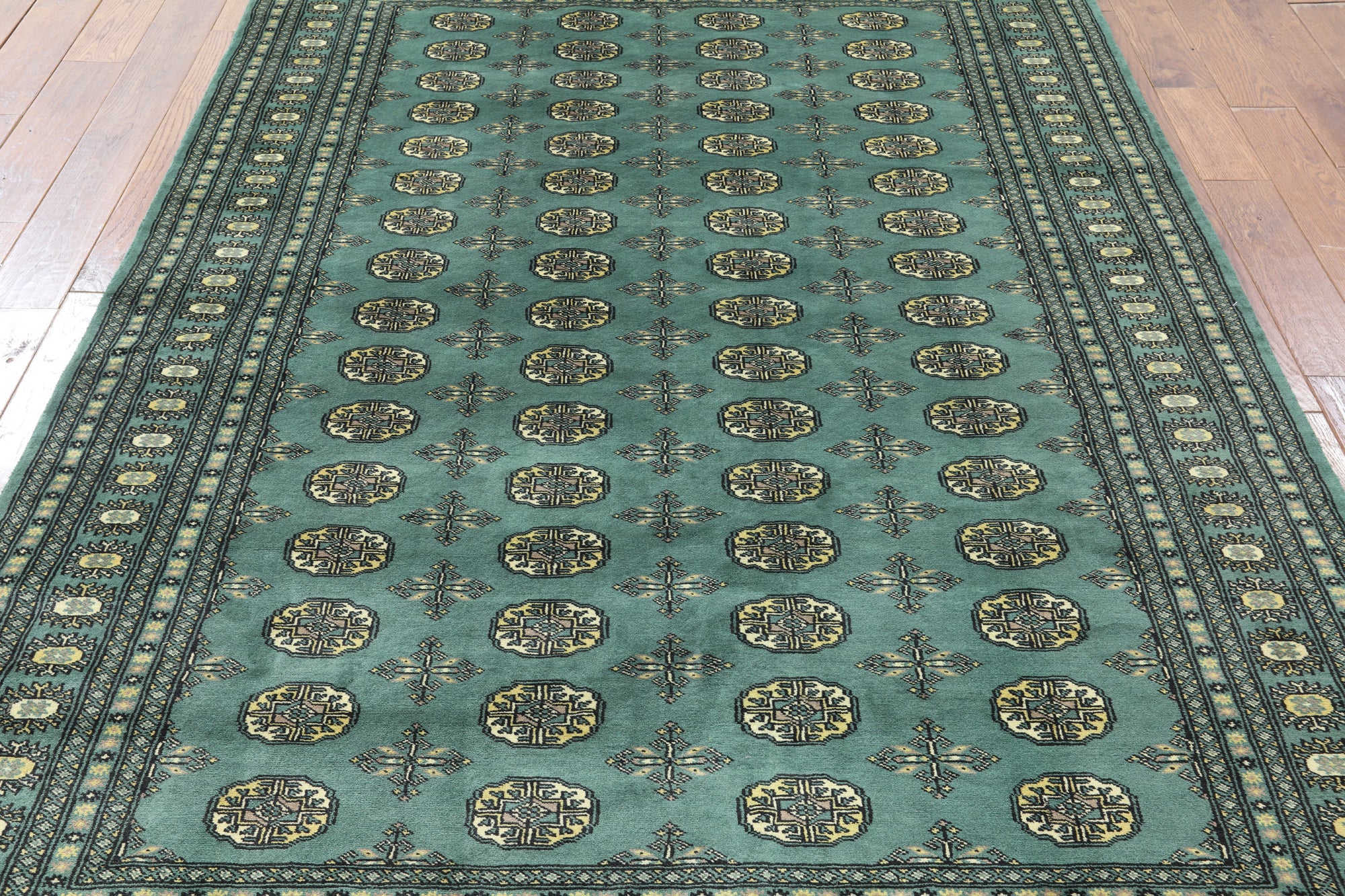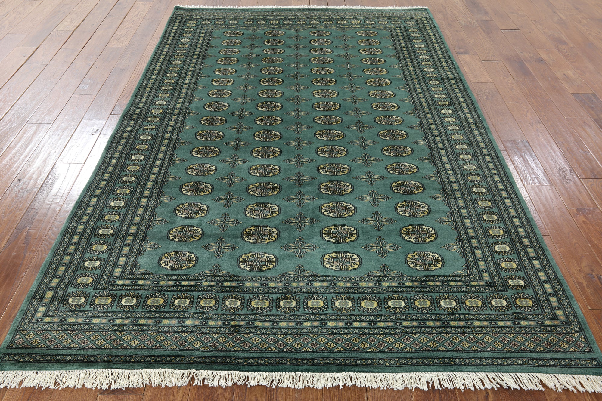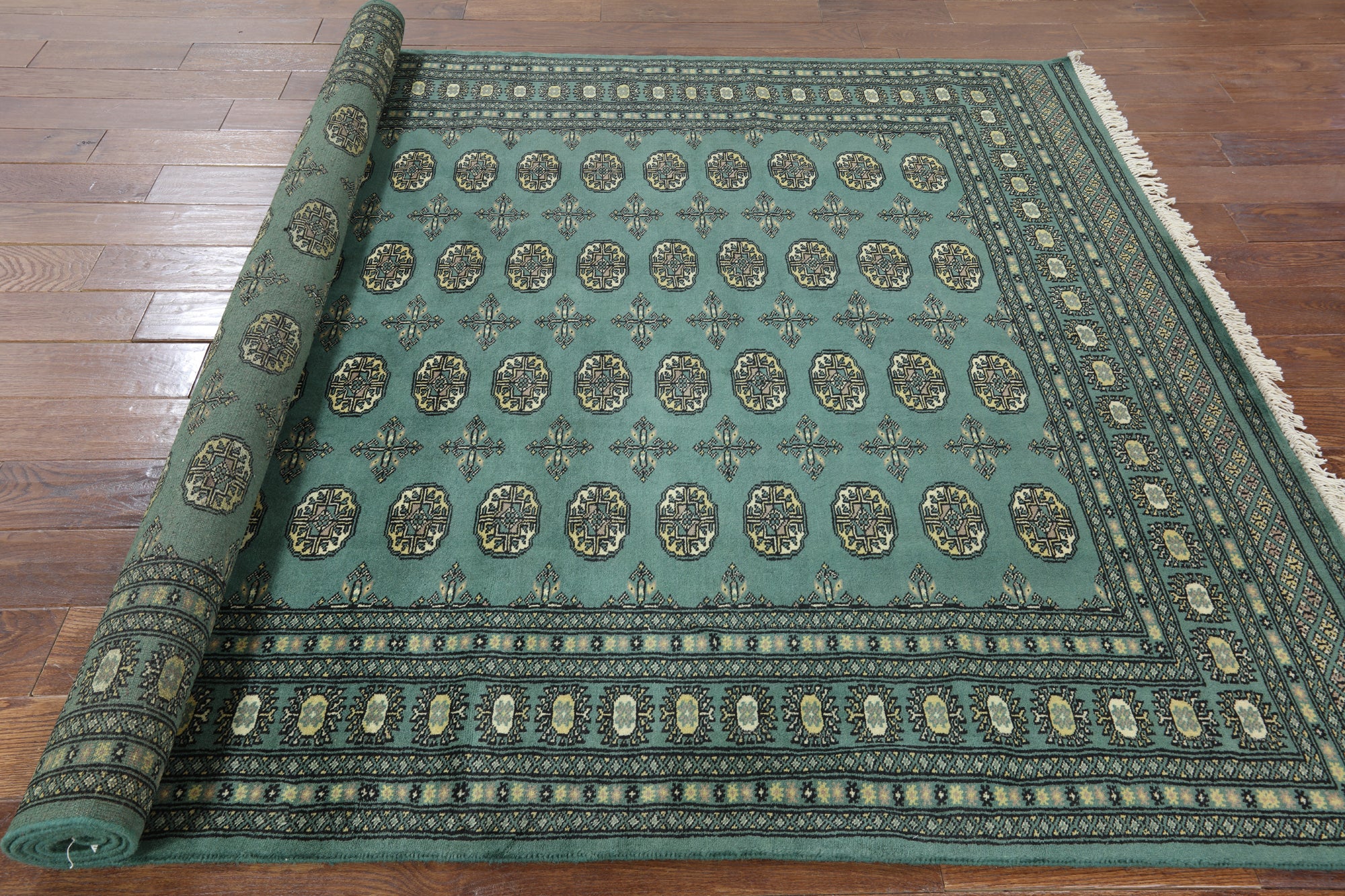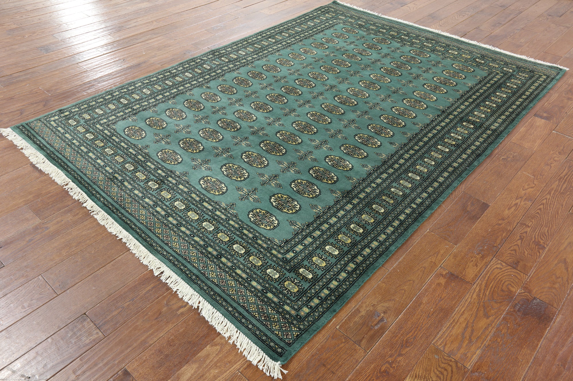 Bokhara Rugs are classic Turkoman designs originally created by nomadic tribes in India. Bokhara Rugs are among the most popular handmade rugs widely produced in Pakistan, India & Afghanistan. There foundation and heavy pile consist of wool, and have a soft luxurious feel. There unique designs consist of repeating geometric designs and vary from one tribe to another. Designs are commonly dark blue/navy, black, brown, or red with ivory accents