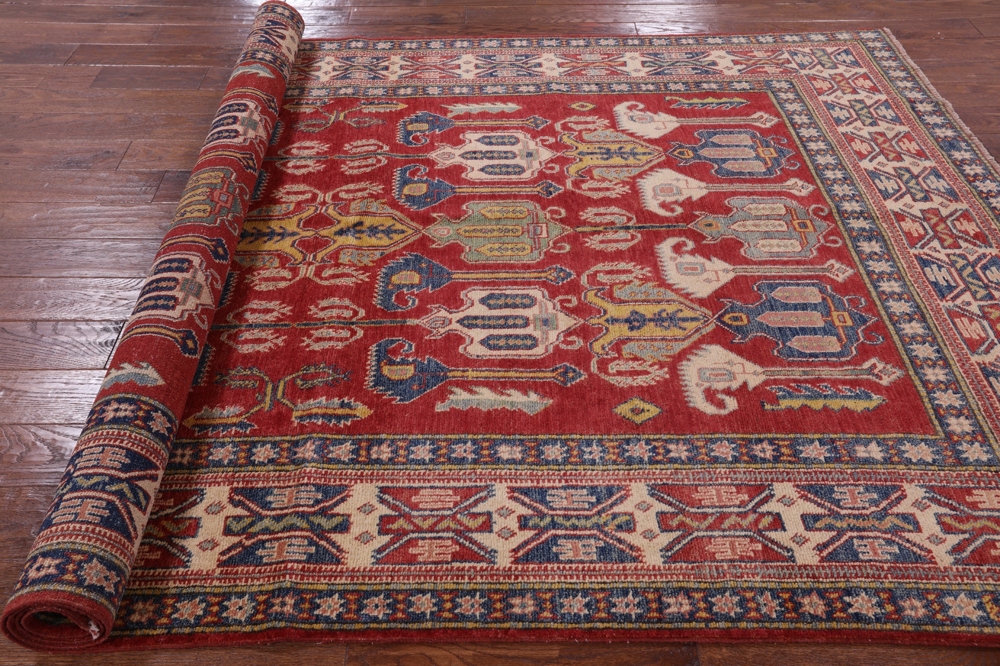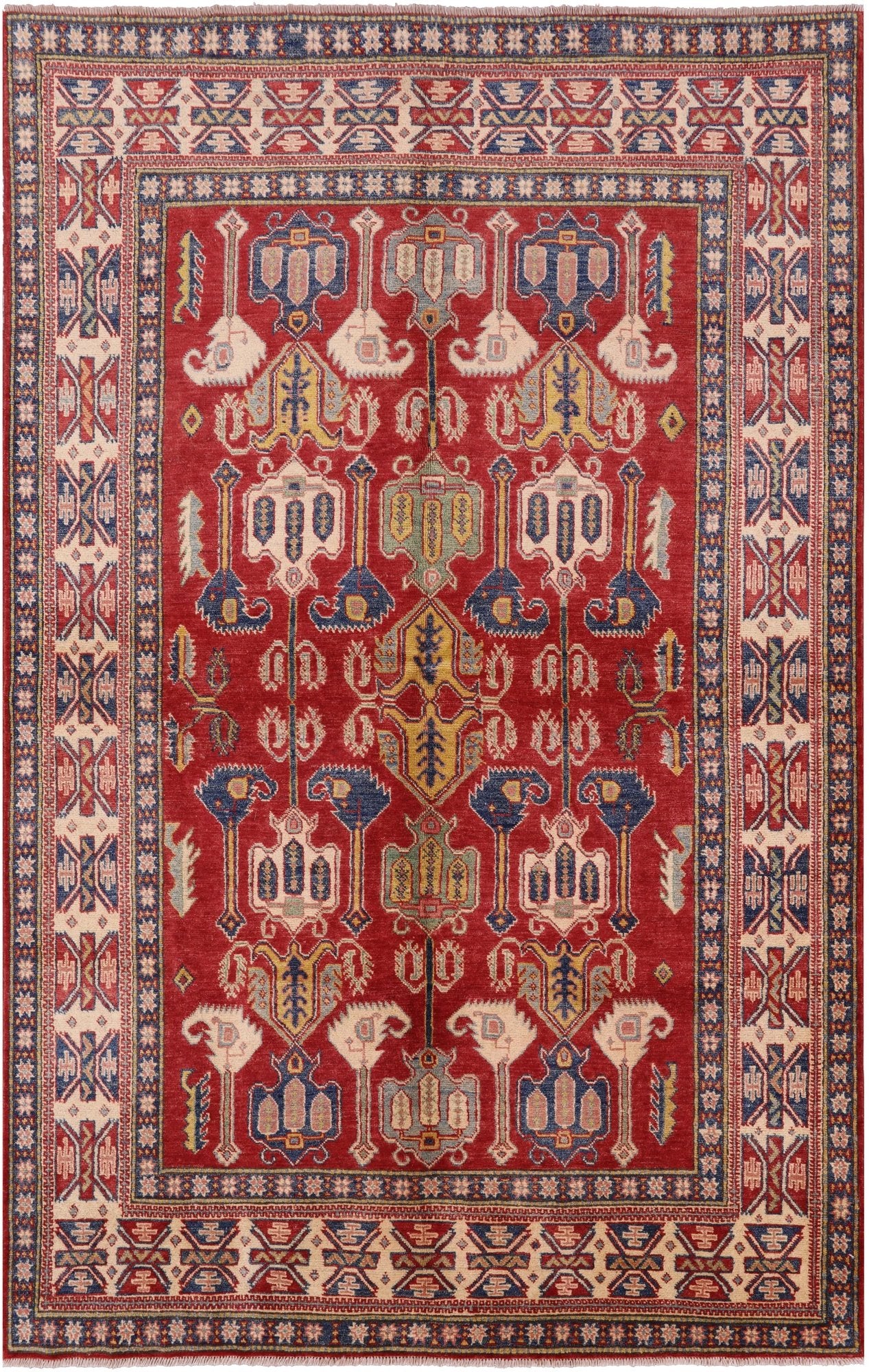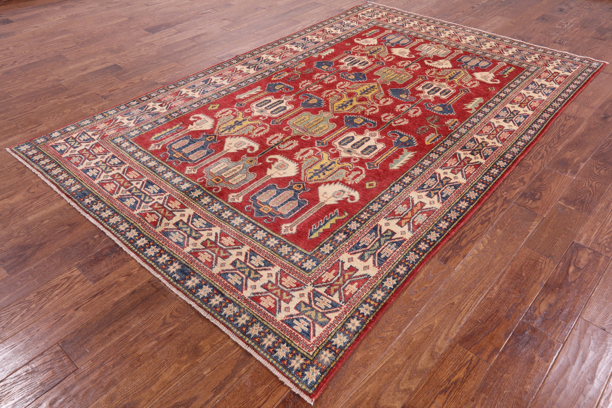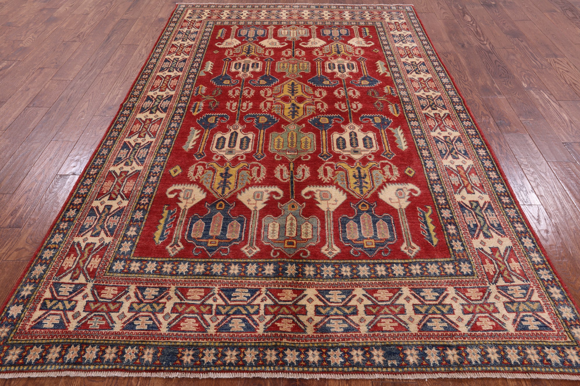 Kazak Hand Knotted Wool Rug - 6' 1" X 9' 4"