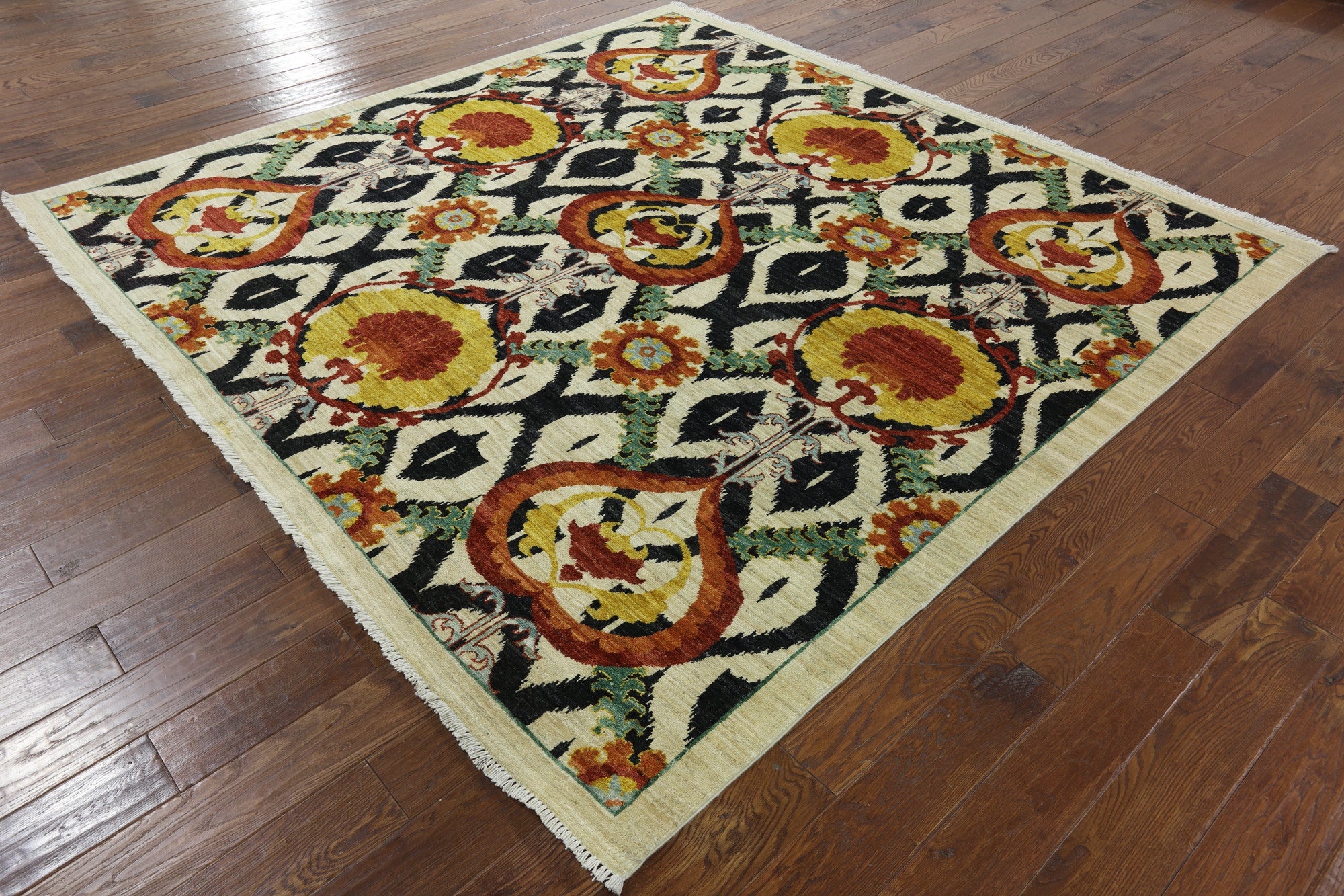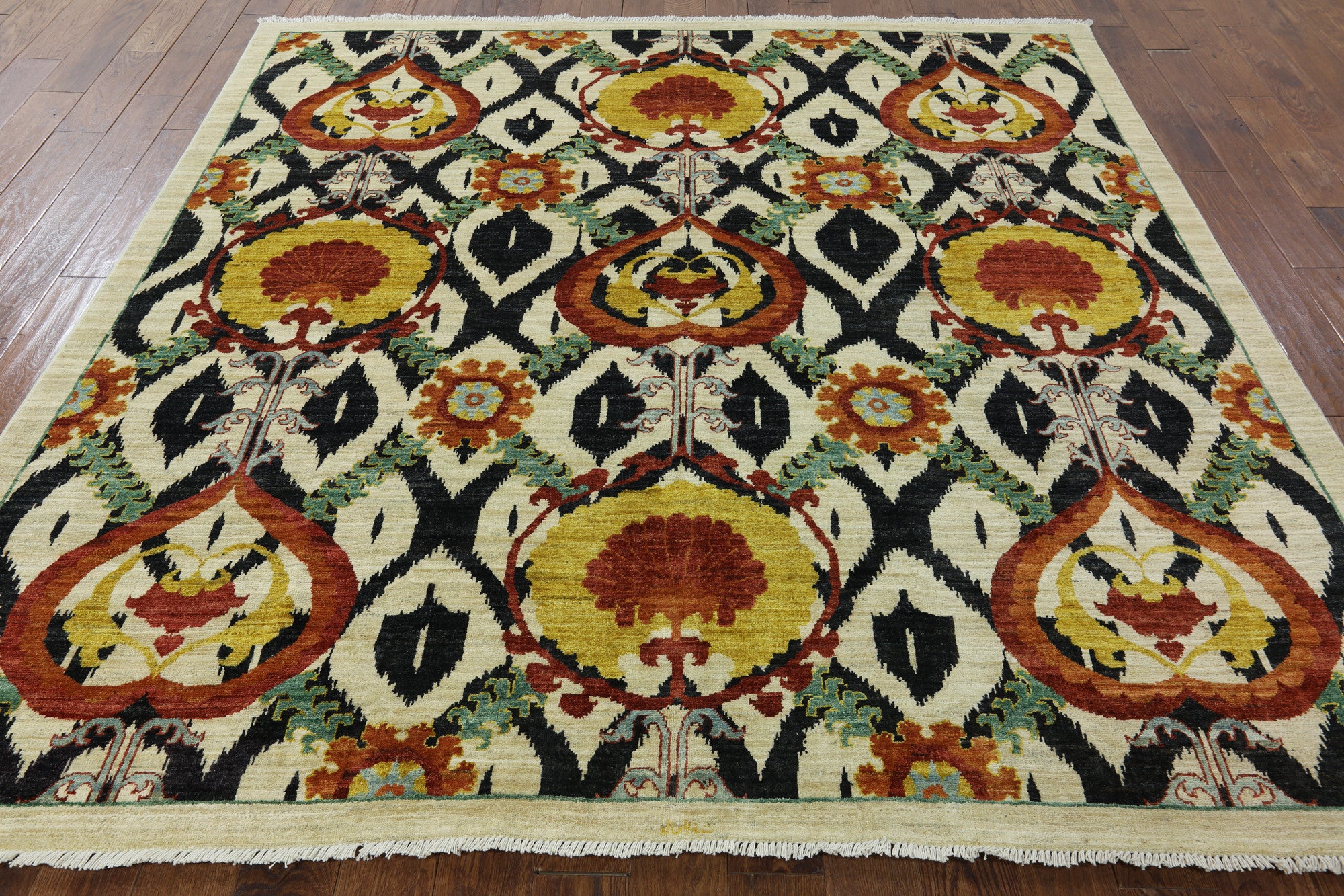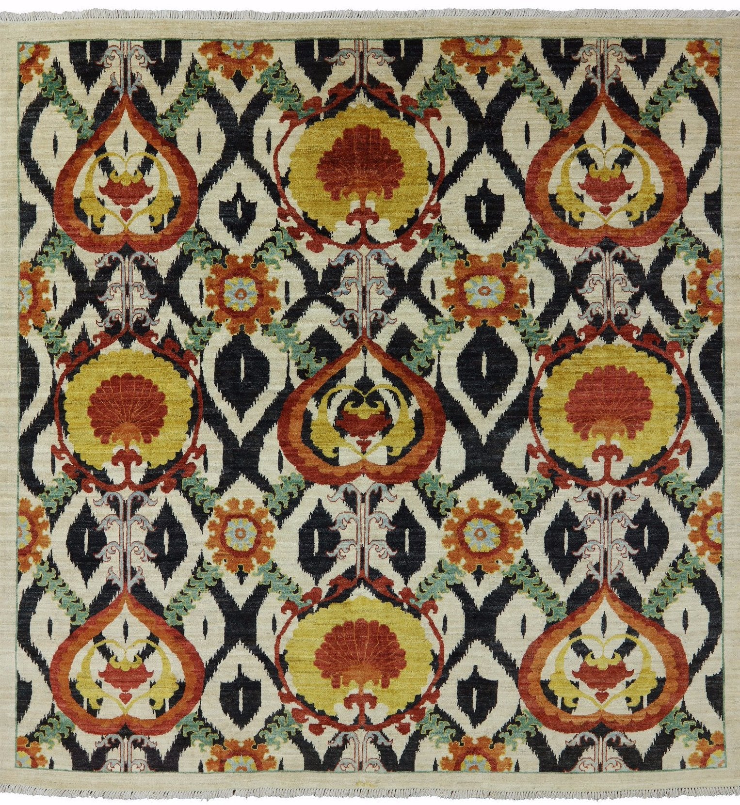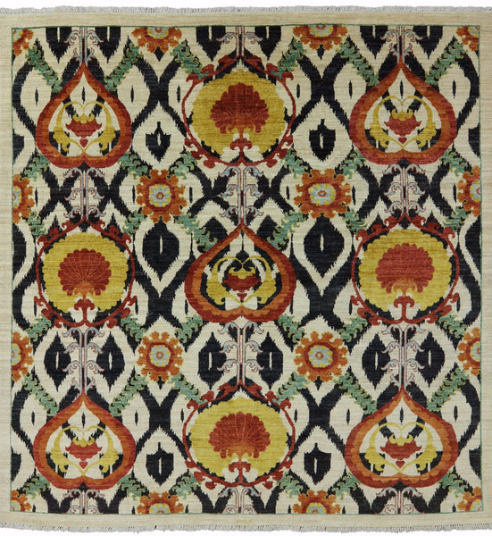 8' Square Persian Suzani Signed Area Rug