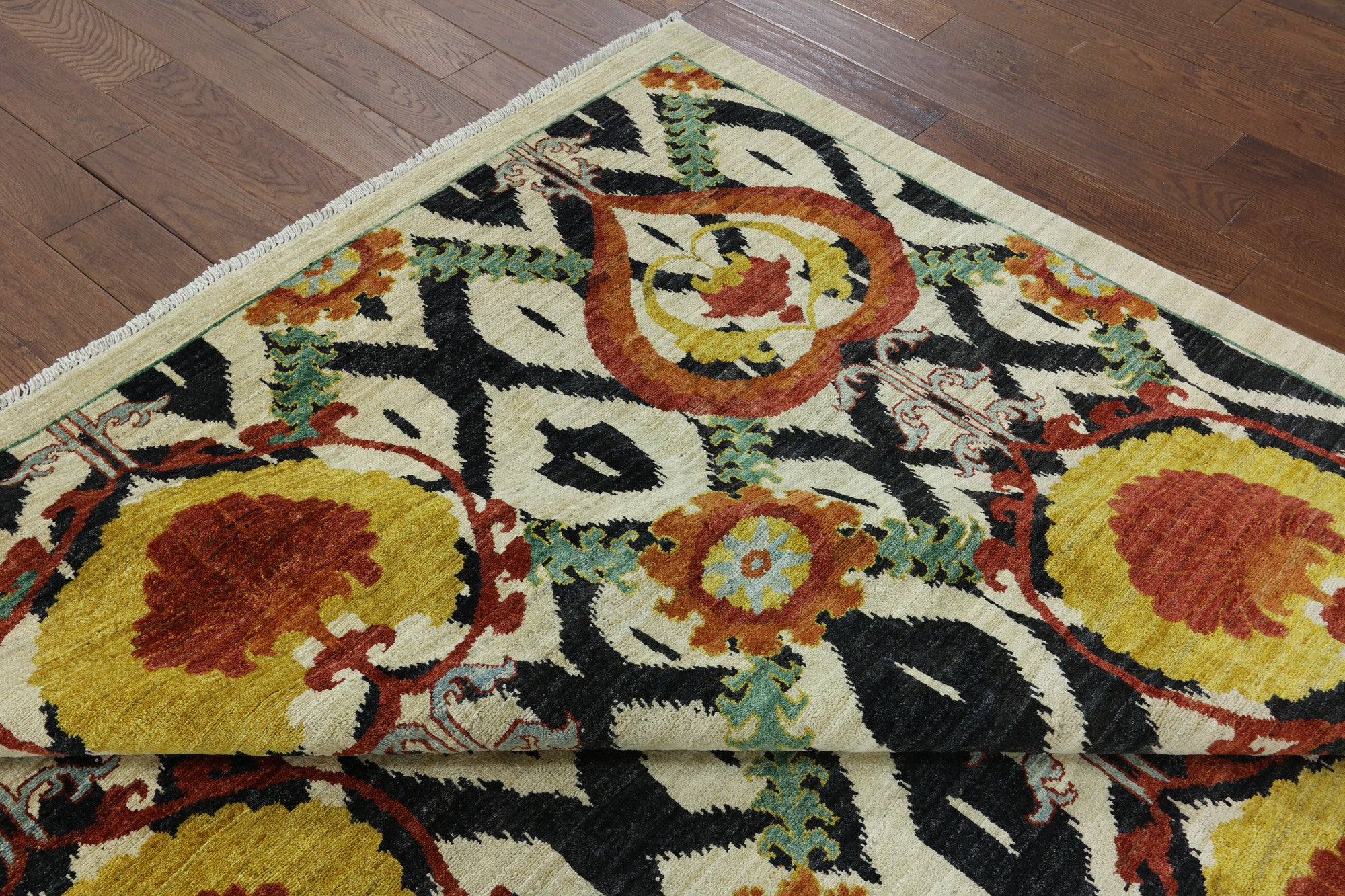 William Morris design are part of arts and crafts movement often including natural forms. These 19th and early 20th century designs are distinctive for their stylized natural forms, their symmetry and their vibrant colors. William Morris patterns are based on nature such thistles, ginkgo leaves, willow trees and flowers. These modern hand knotted rugs are woven with high quality wool, silk or both.