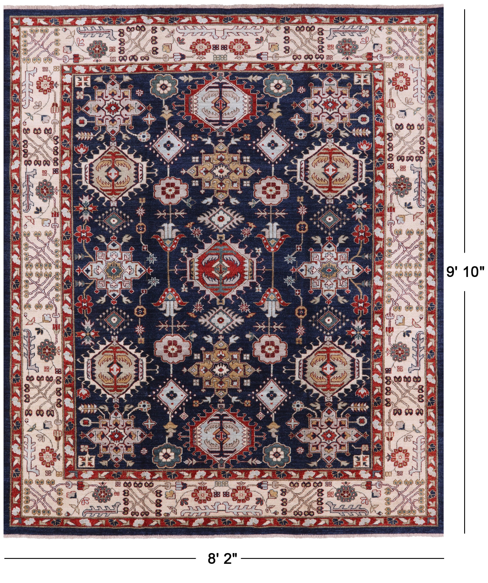 Blue Fine Serapi Hand Knotted Wool Rug - 8' 2" X 9' 10"