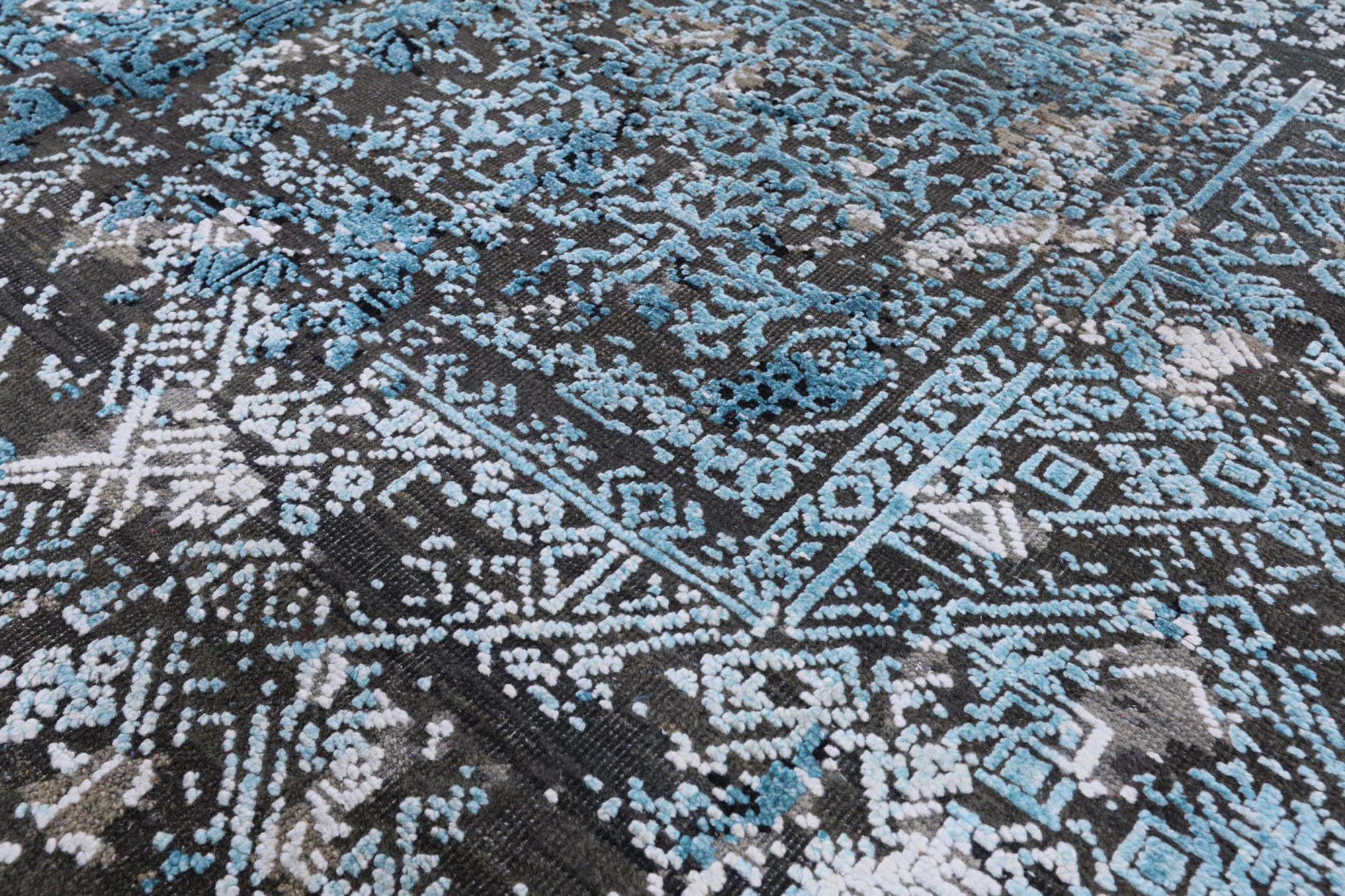 Art deco rugs are designed with both medallion as well as all-over designs. Colors are vibrant & energetic. Rich tones of magenta, turquoise, emerald, ruby and violet are common. Art Deco carpets are woven with pile & sometimes flat woven without pile, using various materials such as silk, wool, and cotton.