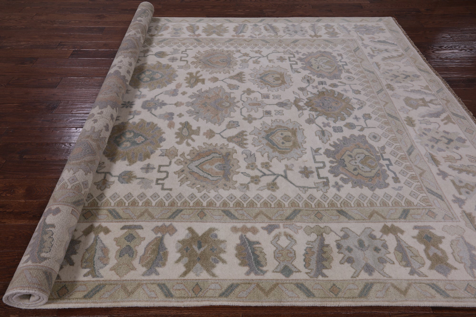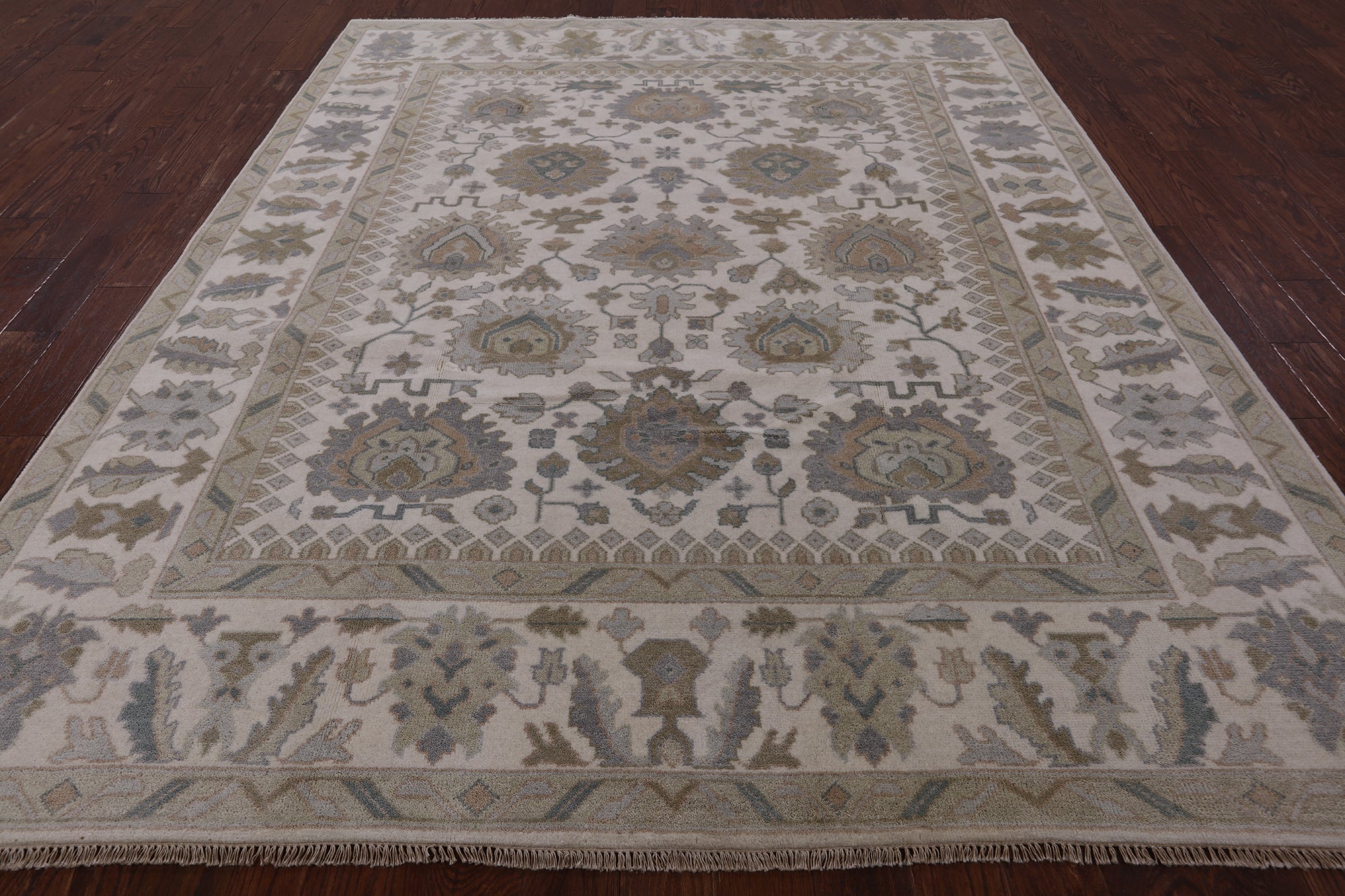 Ivory Turkish Oushak Handmade Wool Area Rug - 8' 0" X 10' 1"