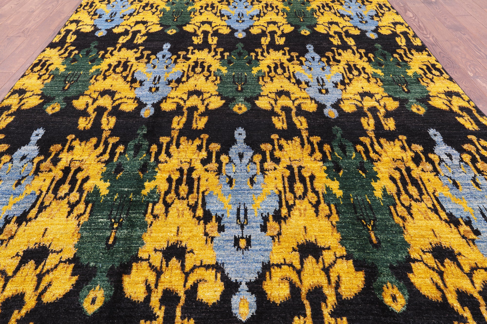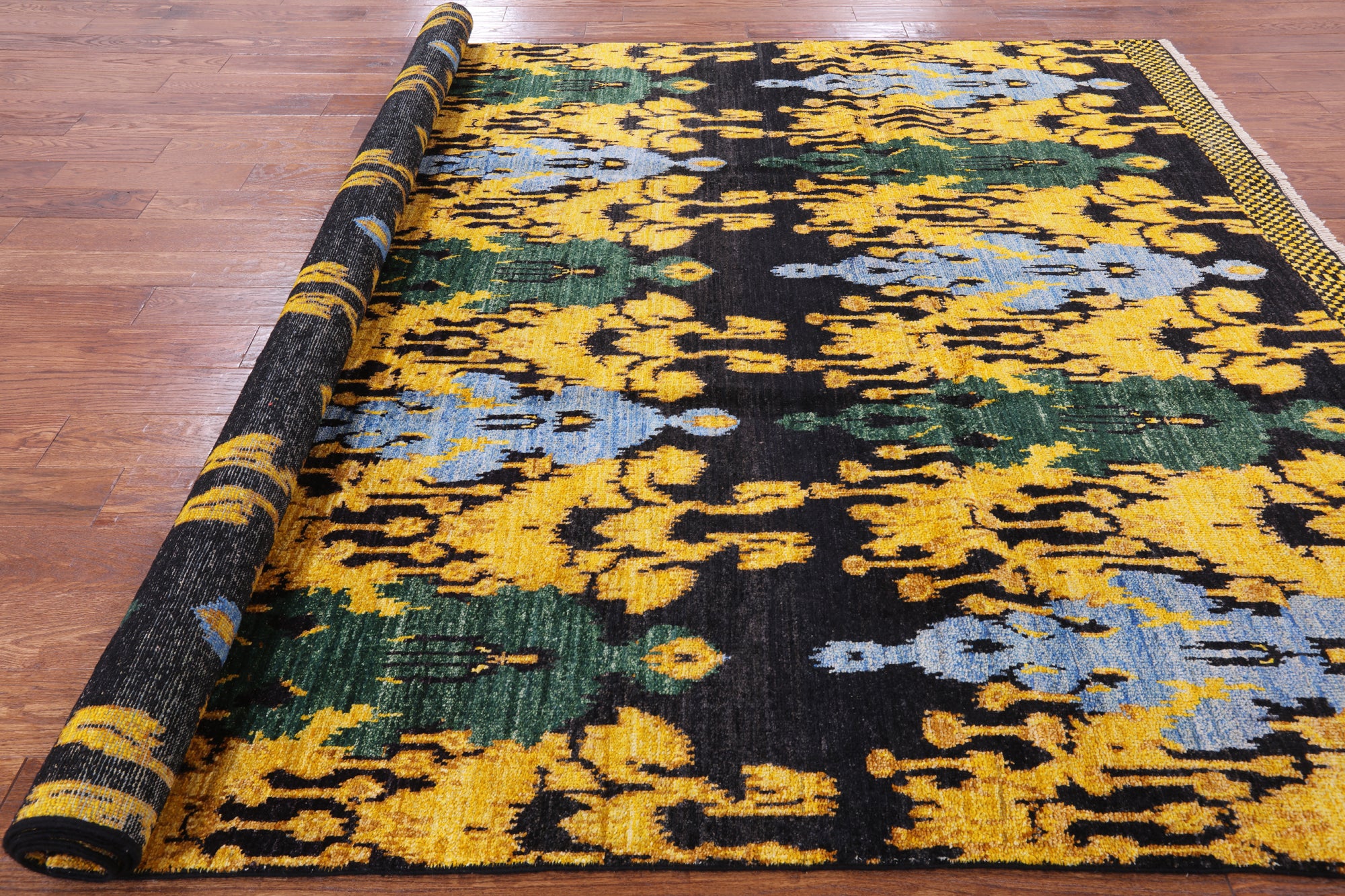 Ikat Rugs are of high quality and generate from numerous Oriental backgrounds. Ikat simply is binding or tying parts of the rugs and using natural dyes to create a modern masterpiece. Ikat Rugs are popular and recognized instantly for their geometric designs and bright vivid bleeding colors. Their consistent pattern, floral, oriental, or tribal, adds a touch of exotic to both traditional and modern interiors.