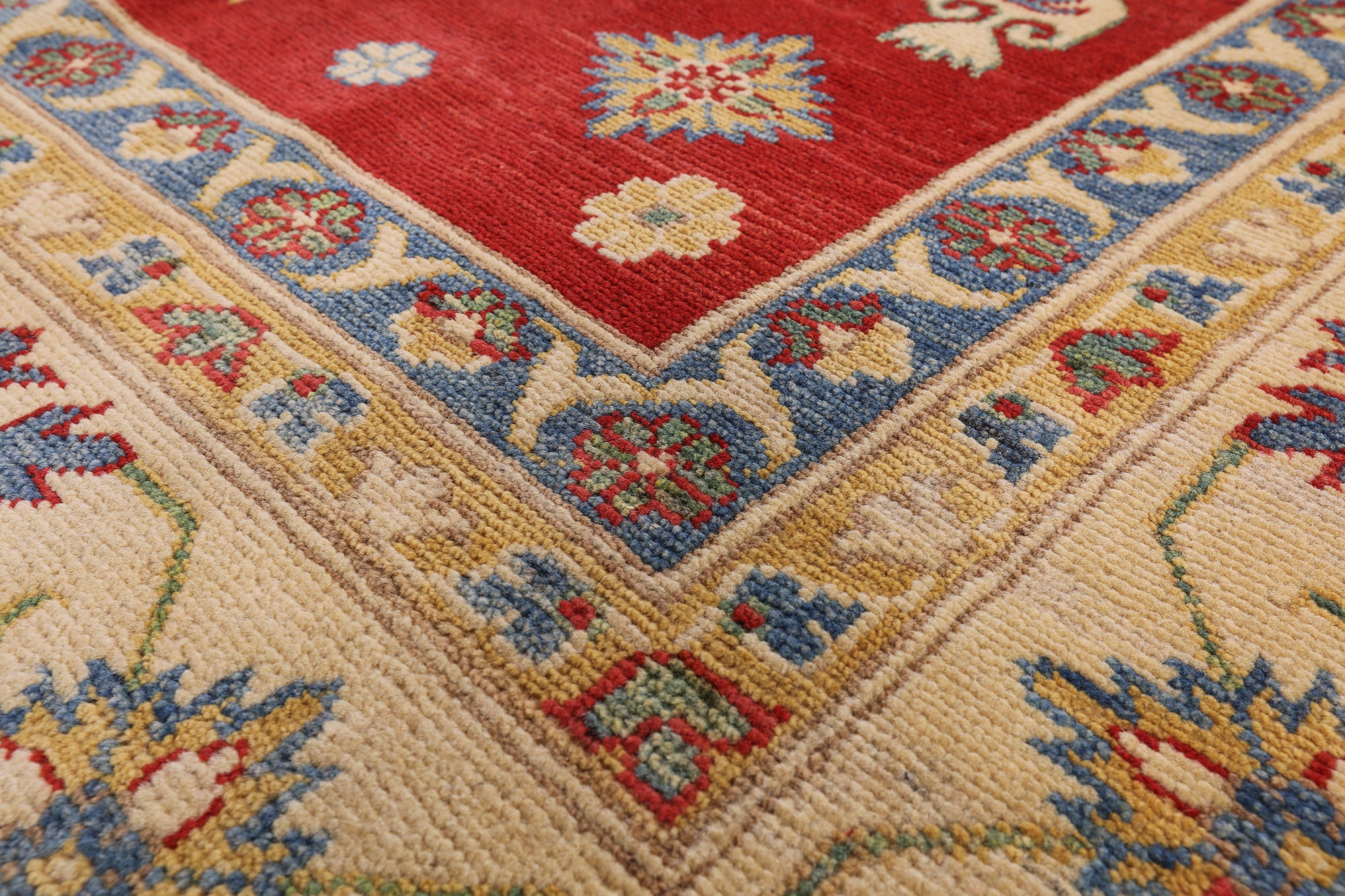 Kazak Rugs are popular for their stunning geometric designs & high quality dyes. Kazak patterns tend to be red, yellow/gold and blue. Designs include, but are not limited to animals, flowers, medallions, & iconic figures such as geometric people/ and animals & symbolic motifs.
