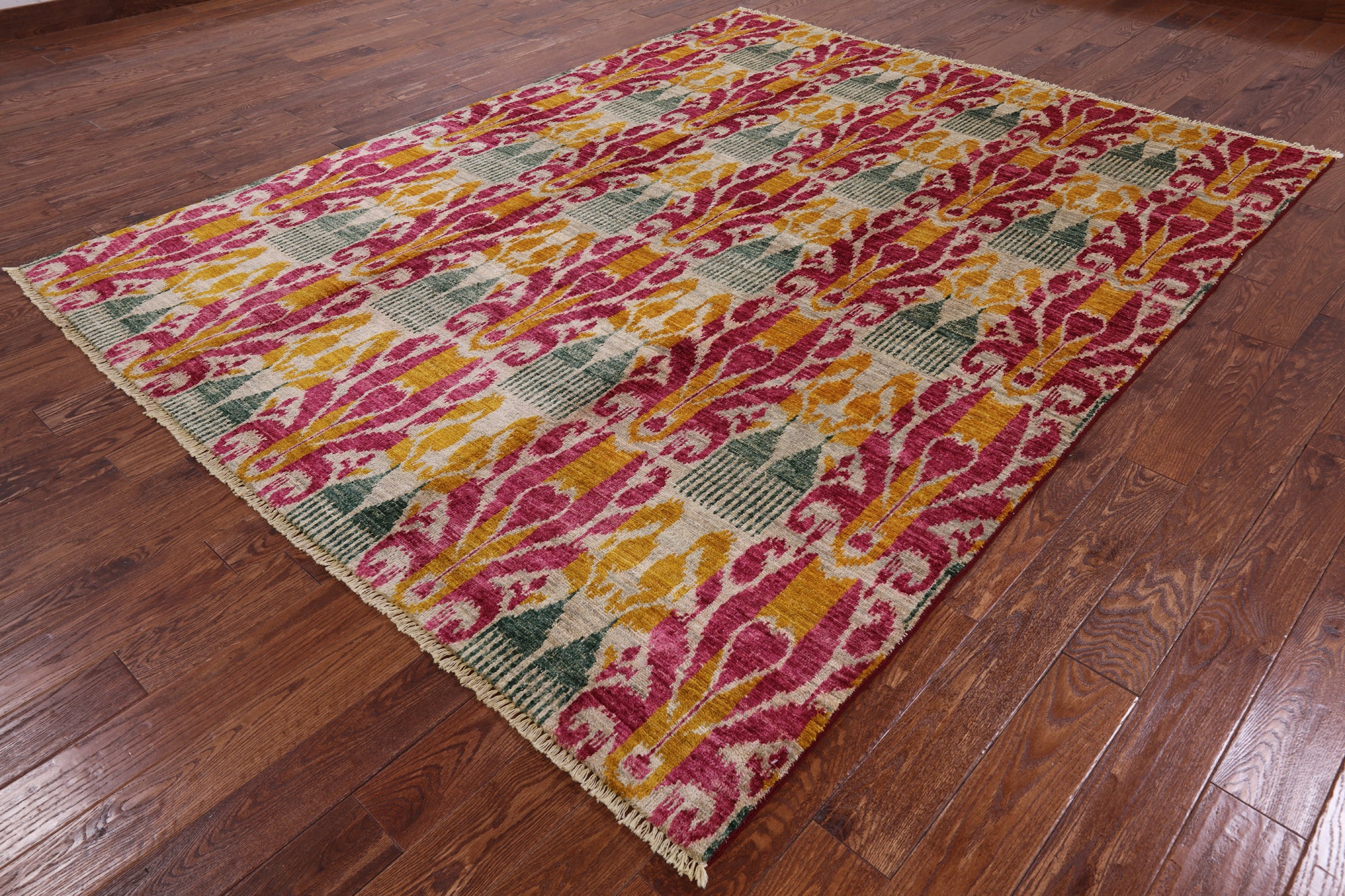 Ikat Hand Knotted Wool Area Rug - 7' 10" X 9' 10"