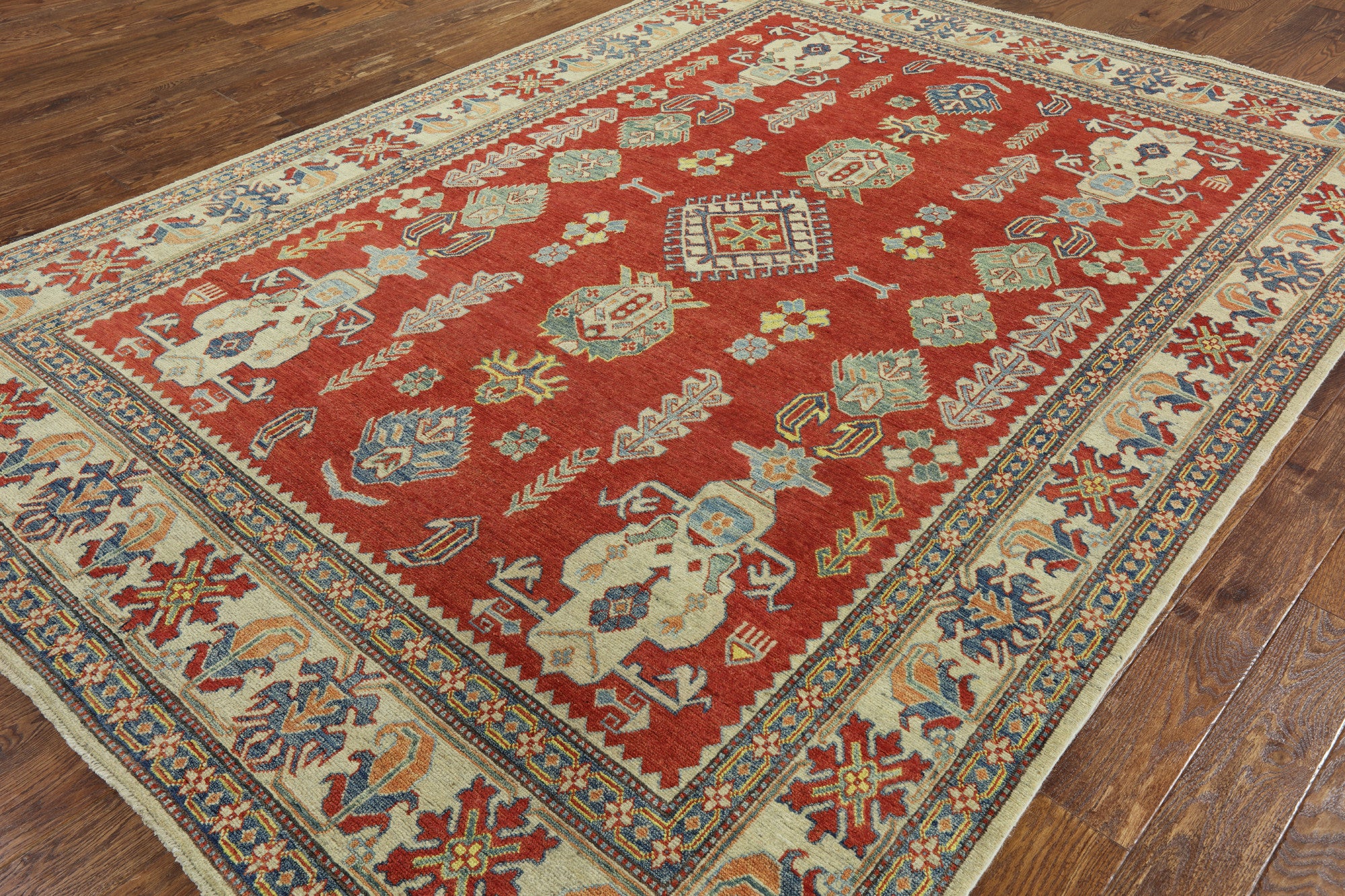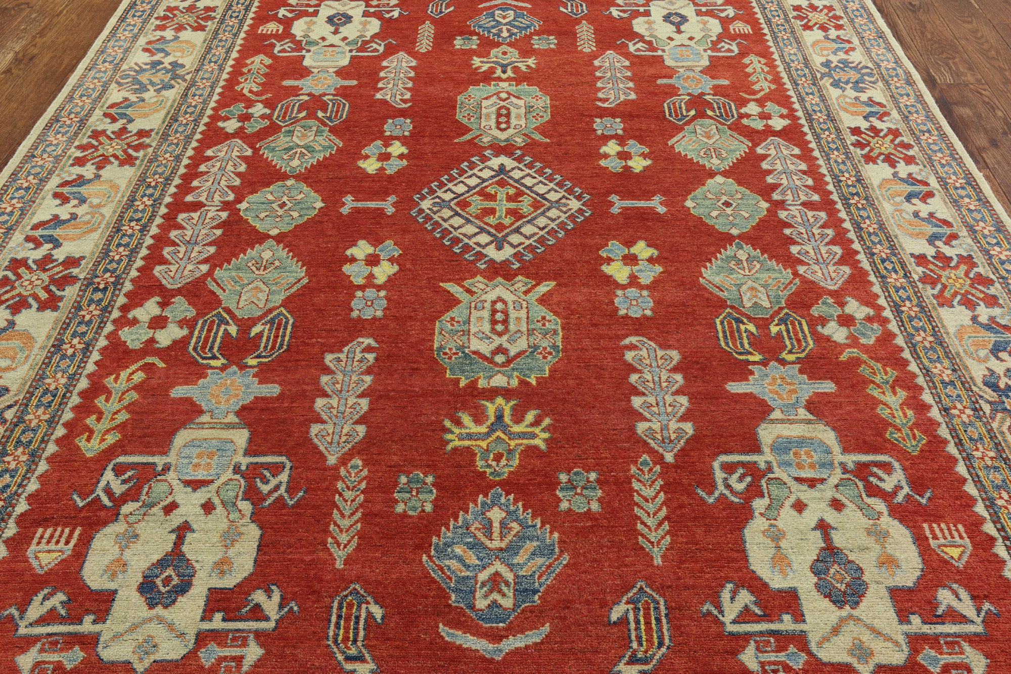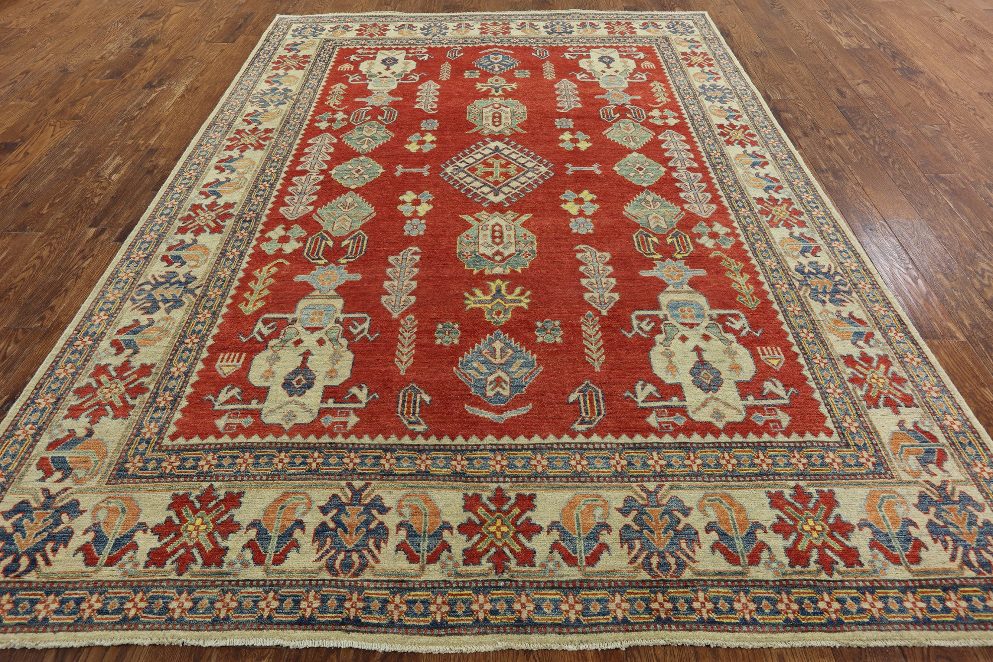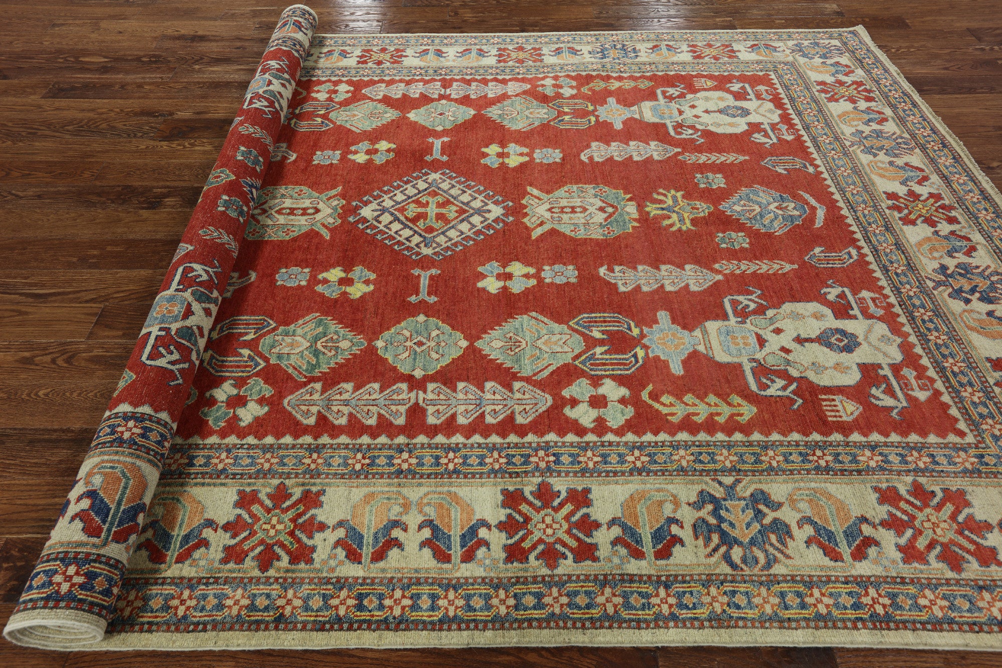 Kazak Rugs are 100% Wool, hand-knotted, created with natural colors made to last a lifetime! They are durable, and emphasizes any contemporary setting. However, itβs the rich colors which makes them stand out from any other antique rug.