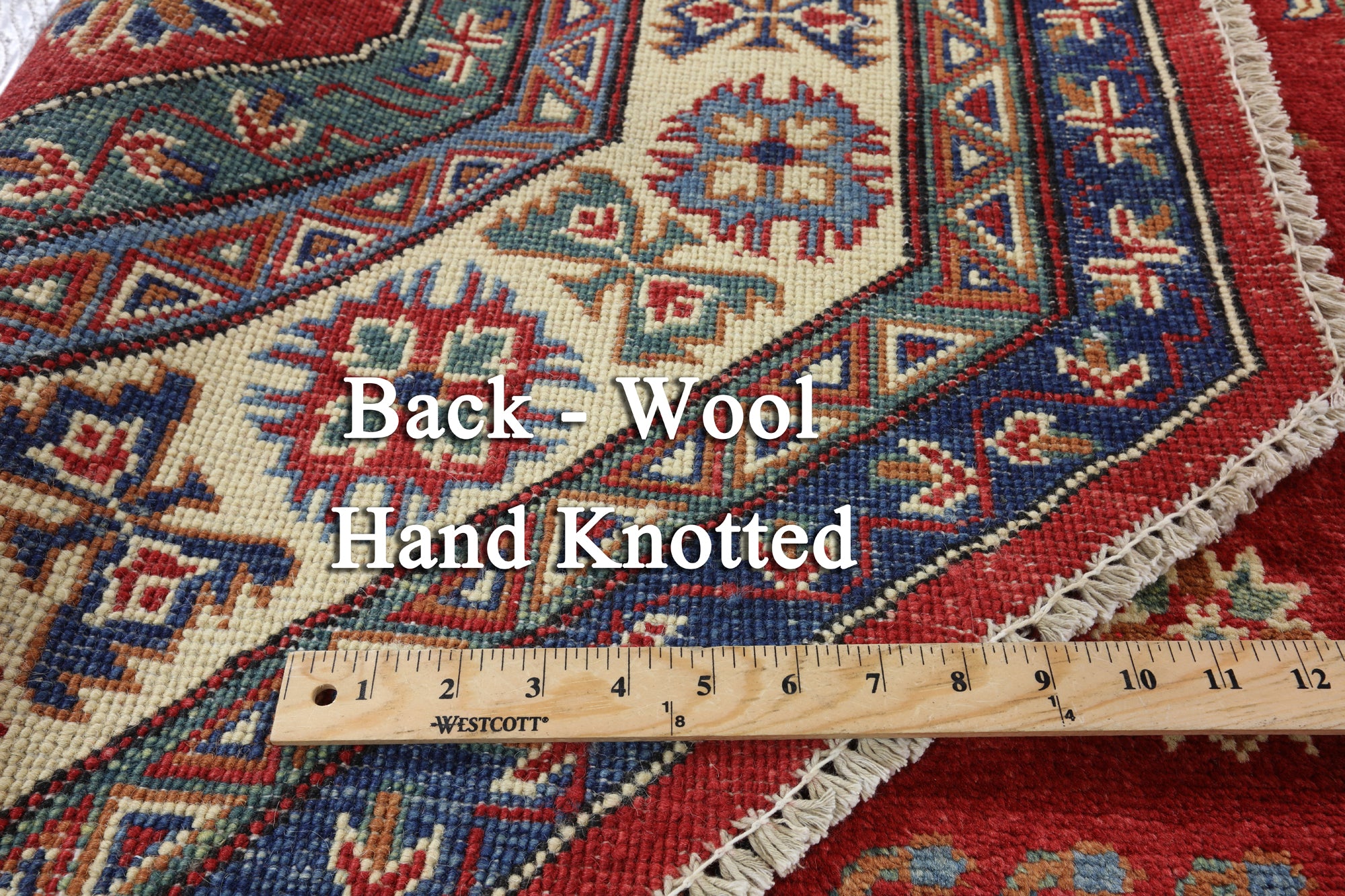 Kazak Rugs are popular for their stunning geometric designs & high quality dyes. Kazak patterns tend to be red, yellow/gold and blue. Designs include, but are not limited to animals, flowers, medallions, & iconic figures such as geometric people/ and animals & symbolic motifs.