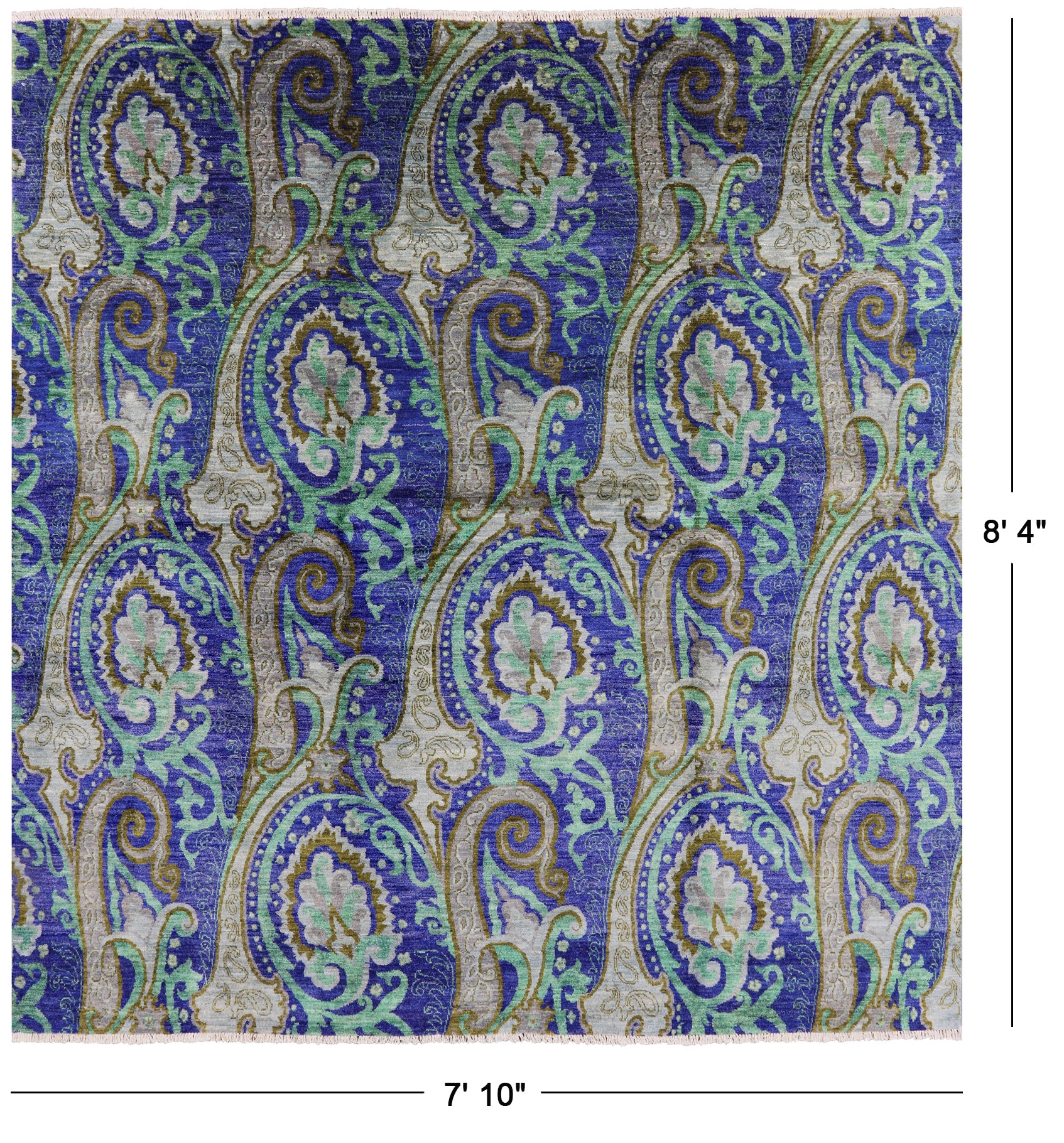 Square William Morris Hand Knotted Wool Rug - 7' 10 X 8' 4