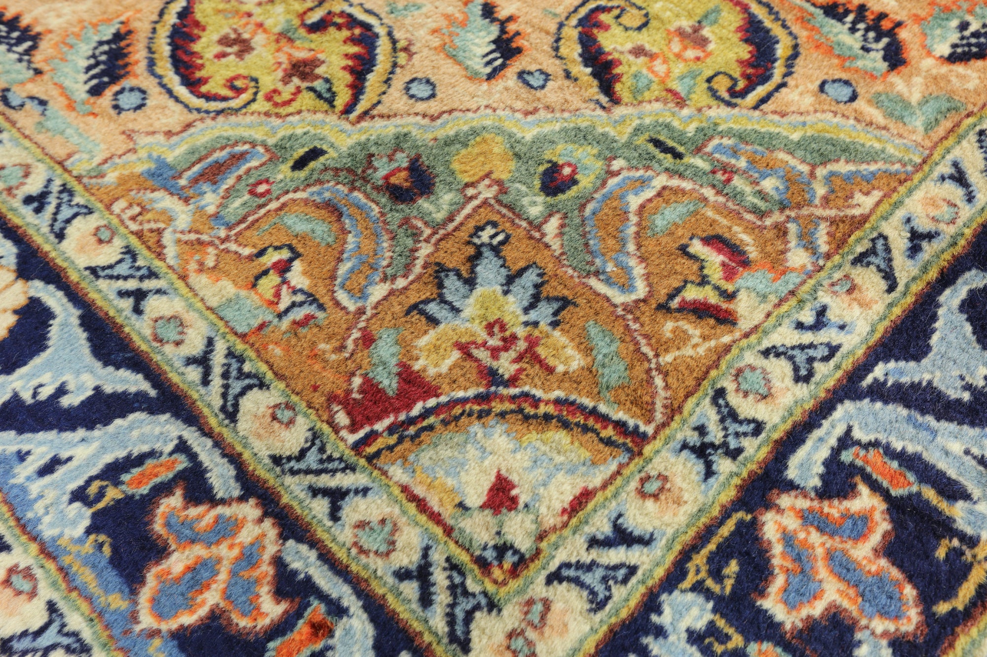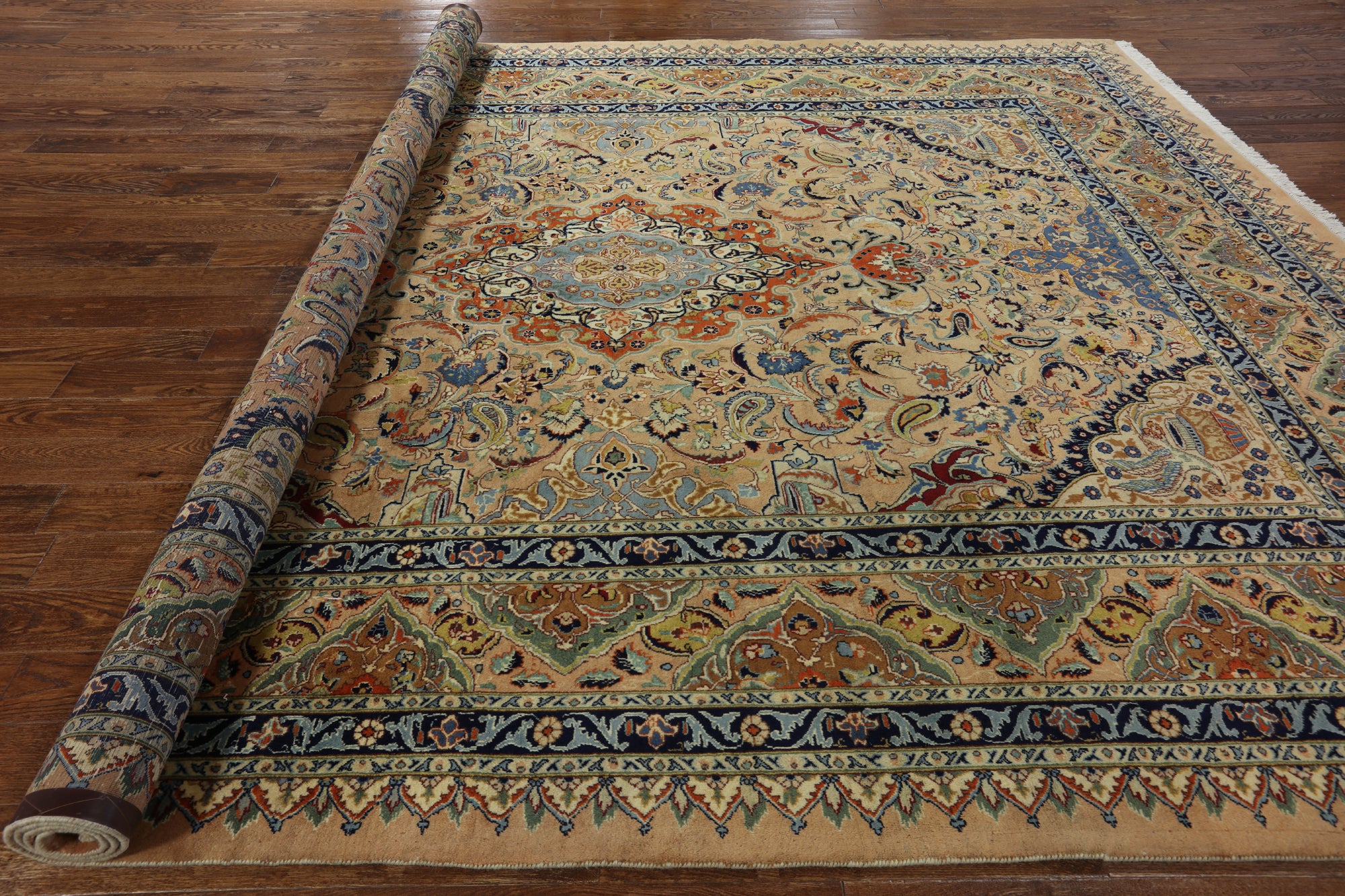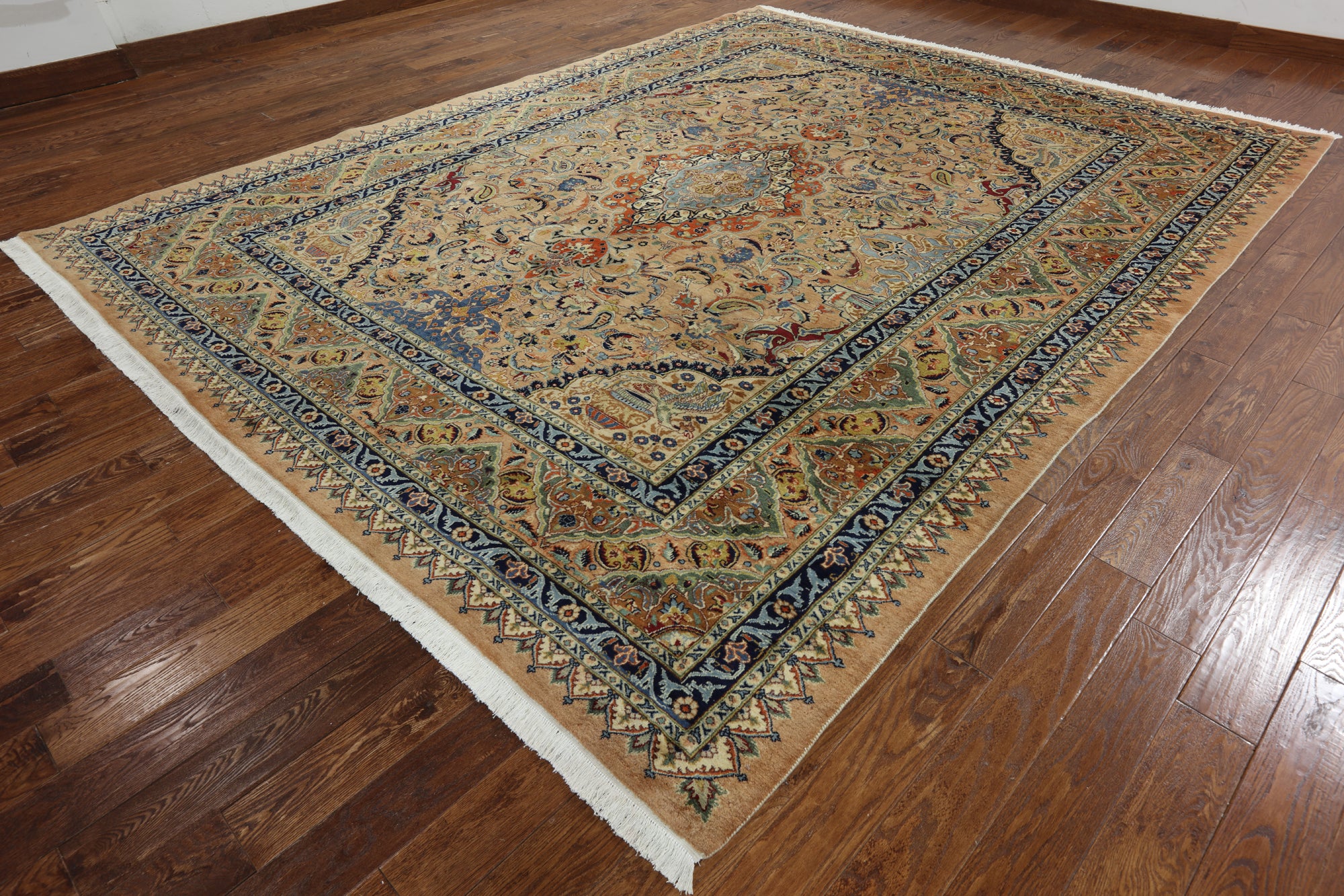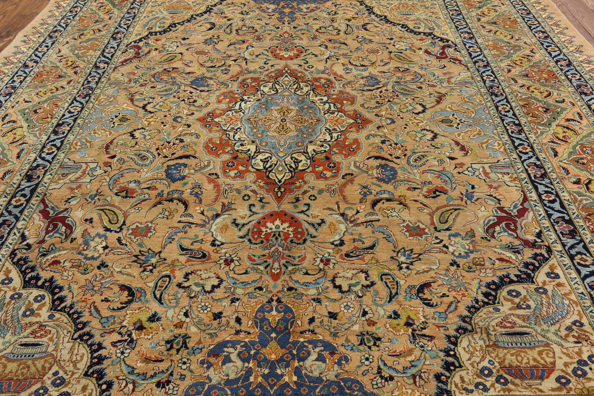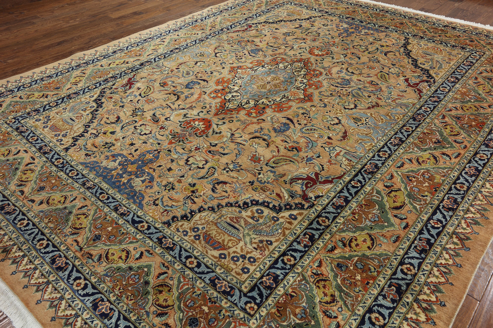 These unique rugs are distinguishable by their exquisite patterns. The rugs are woven on cotton foundation, using soft wool of very high quality. They often depict historical or garden scenes in a pictorial manner. Kashmar rugs are overall very elegant carpets. The quality is high, and they are extremely rare and beautiful masterpieces to own.