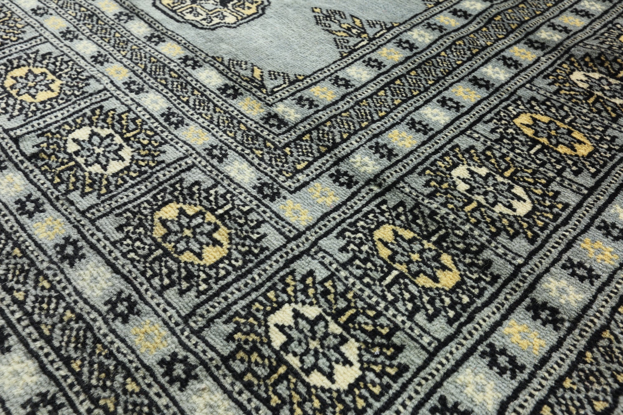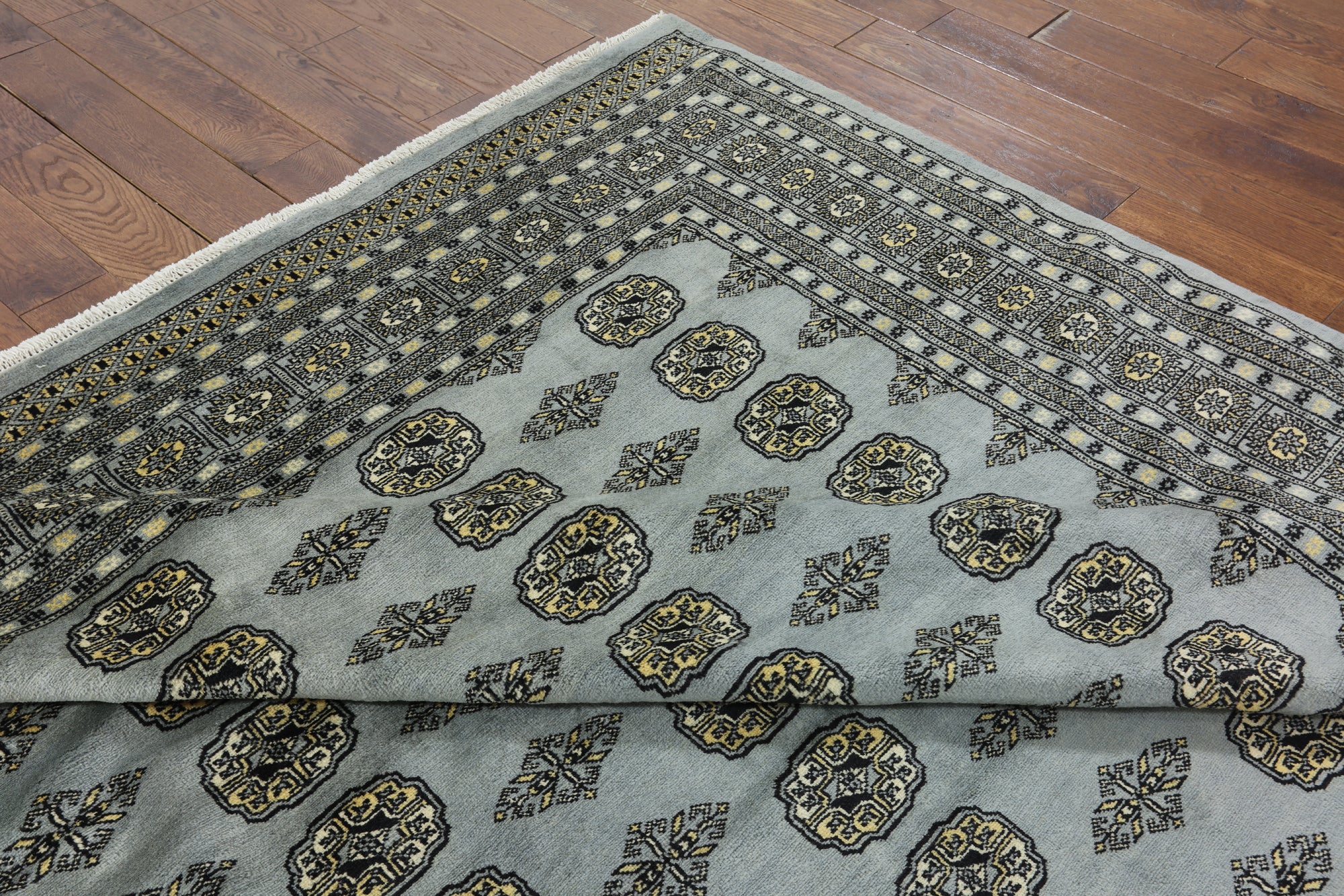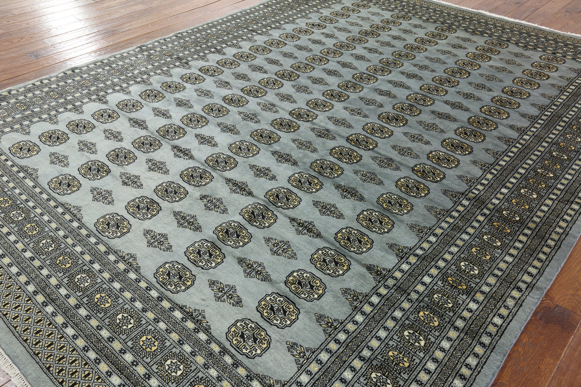 Bokhara Rugs are classic Turkoman designs originally created by nomadic tribes in India. Bokhara Rugs are among the most popular handmade rugs widely produced in Pakistan, India & Afghanistan. There foundation and heavy pile consist of wool, and have a soft luxurious feel. There unique designs consist of repeating geometric designs and vary from one tribe to another. Designs are commonly dark blue/navy, black, brown, or red with ivory accents