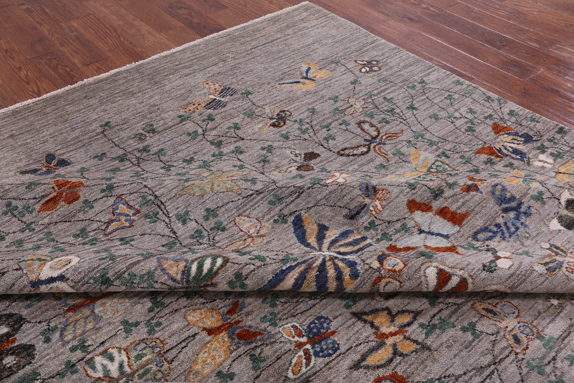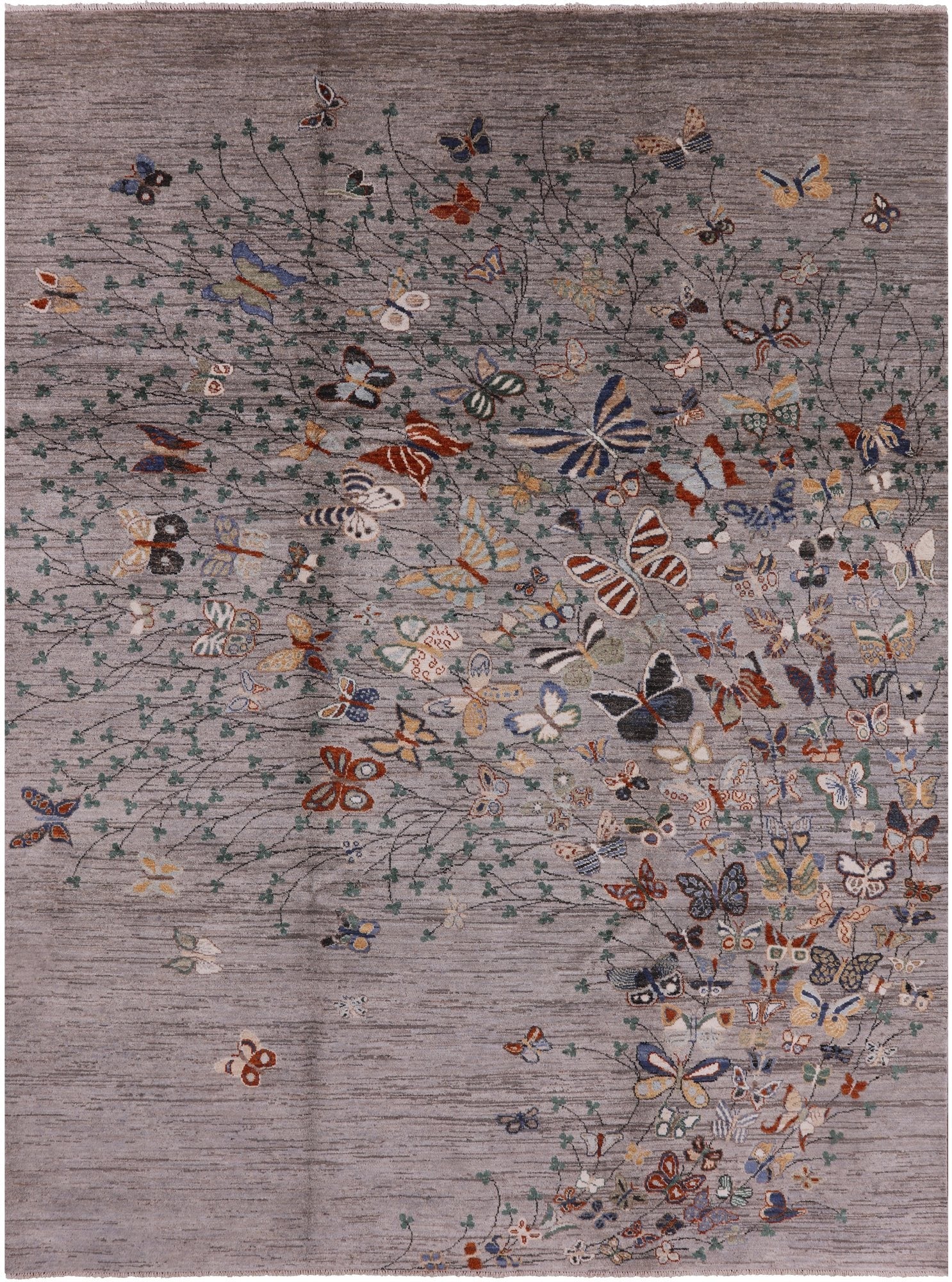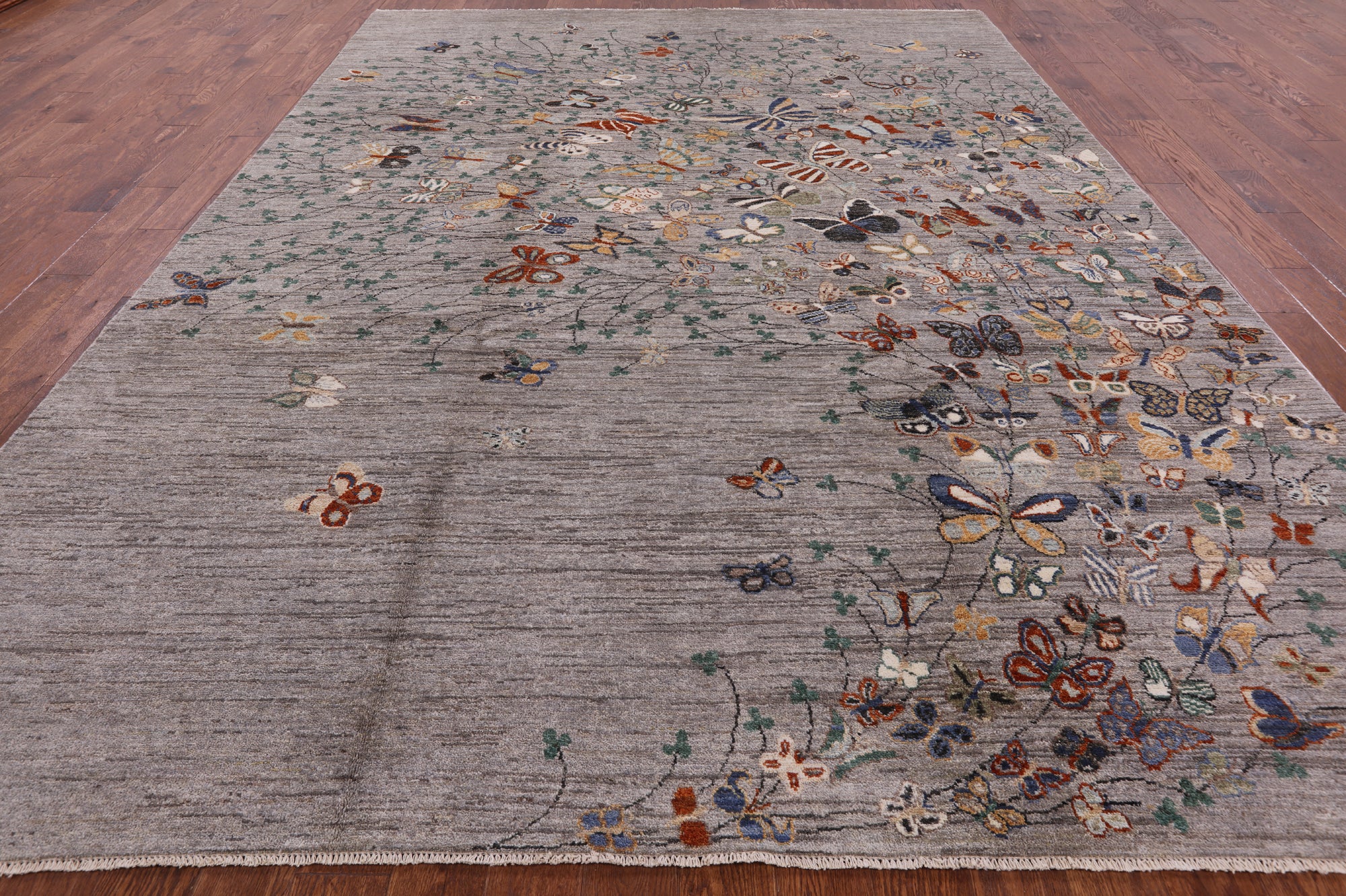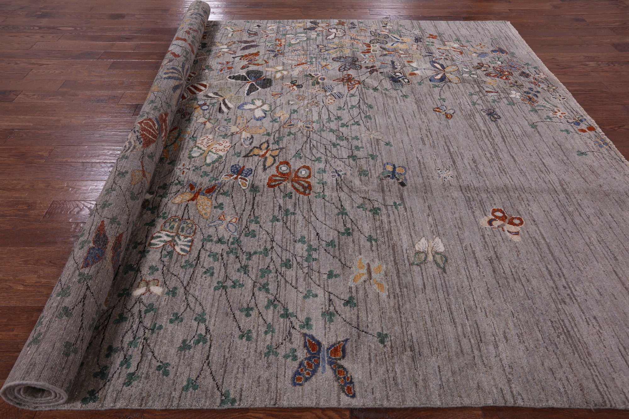 Butterflies Design Modern Handmade Wool Rug - 9' 0" X 12' 2"
