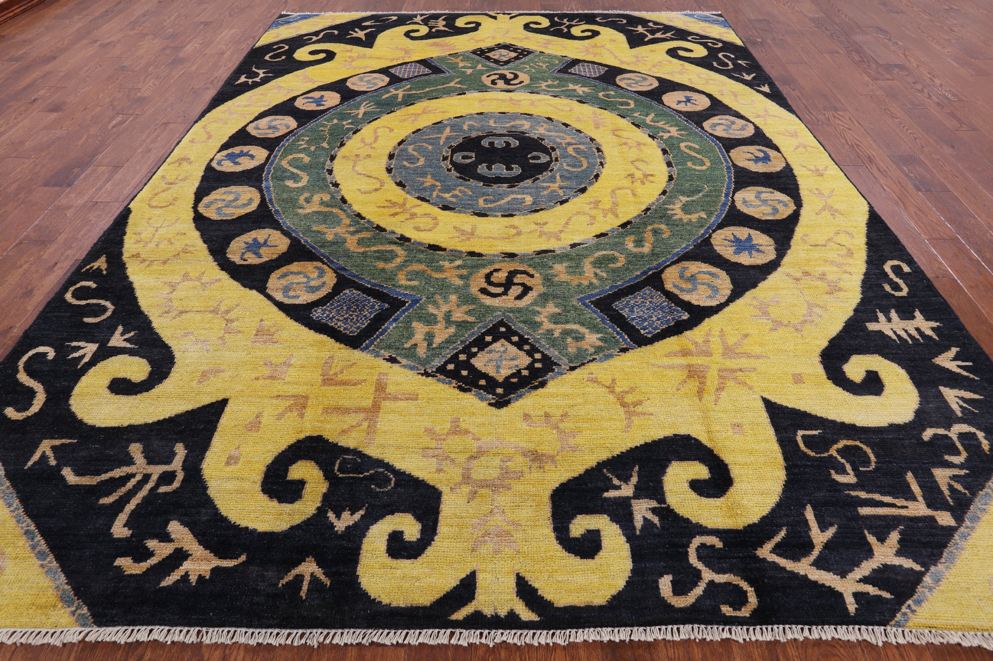 Ikat Rugs are of high quality and generate from numerous Oriental backgrounds. Ikat simply is binding or tying parts of the rugs and using natural dyes to create a modern masterpiece. Ikat Rugs are popular and recognized instantly for their geometric designs and bright vivid bleeding colors. Their consistent pattern, floral, oriental, or tribal, adds a touch of exotic to both traditional and modern interiors.