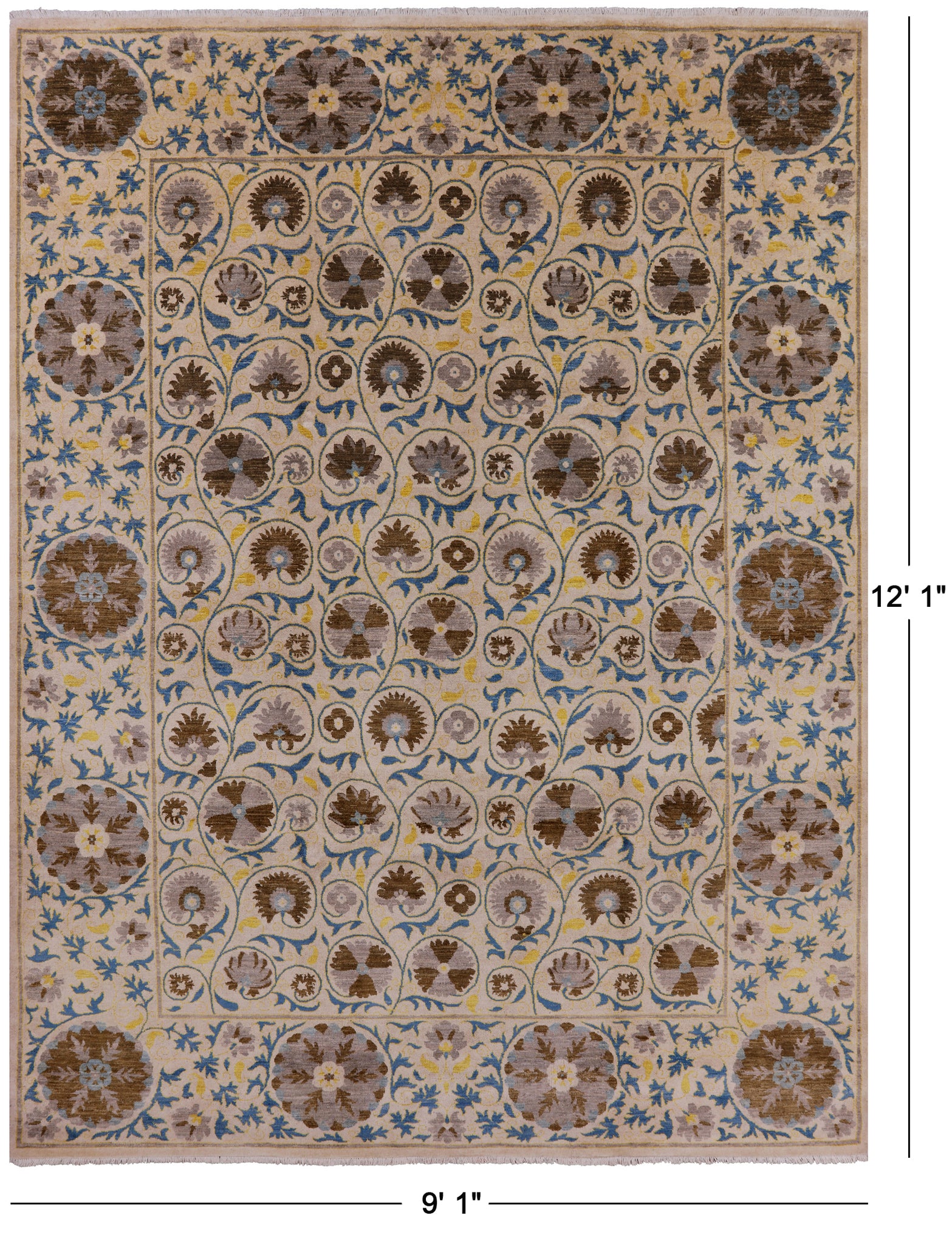 Ivory William Morris Handmade Wool Rug - 9' 1" X 12' 1"