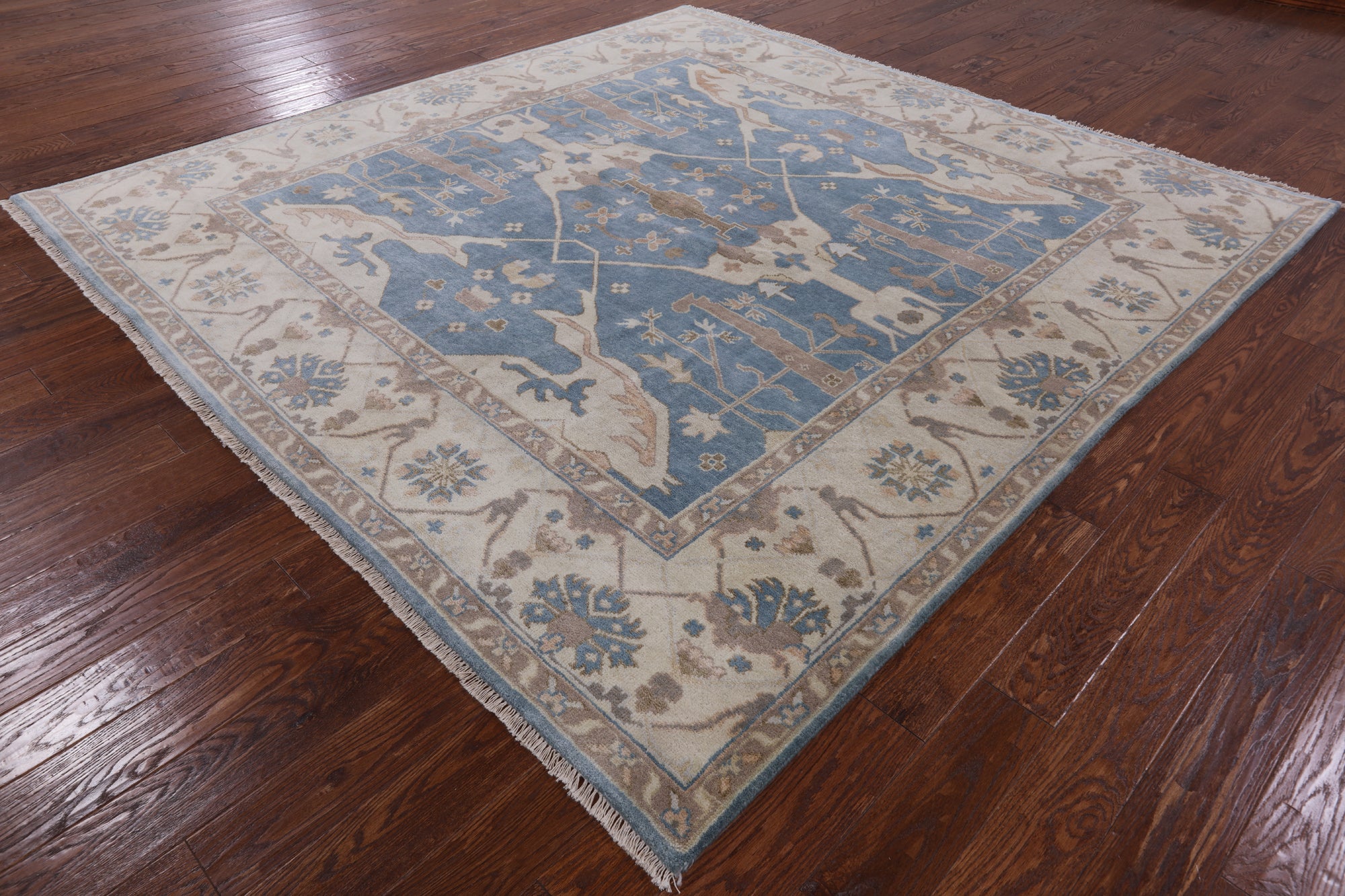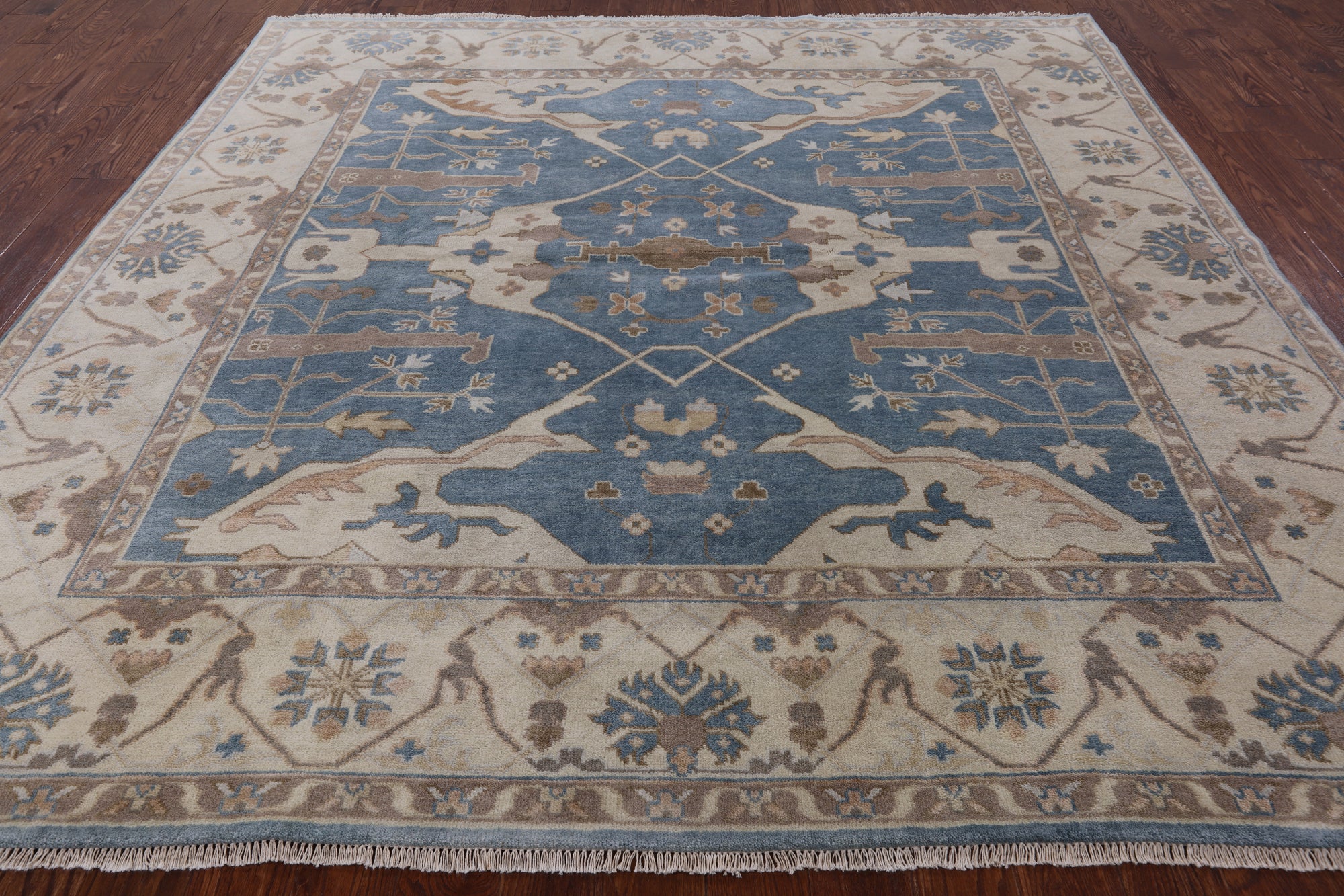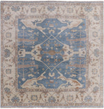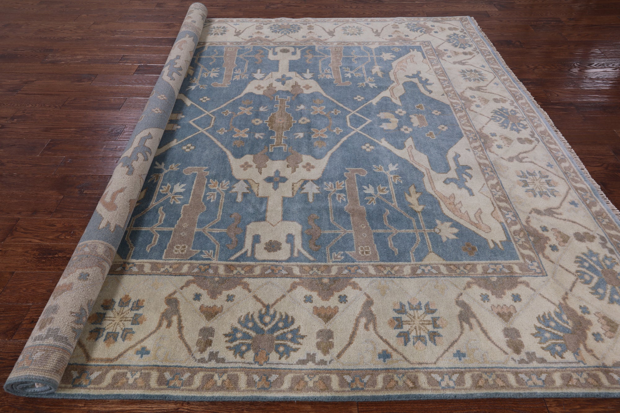 Oushak Rugs are distinctive in both pattern and color palette. Most have a blue, green, dark ivory, or gold & their designs are typically based on geometric motifs and vine / leave motifs. All colors are created with natural vegetable dyes, and the hushed tones are enhanced by the soft, lustrous wool texture. The foundation of an Oushak is cotton while the pile is wool. Oushak rugs are also double-knotted for durability.
