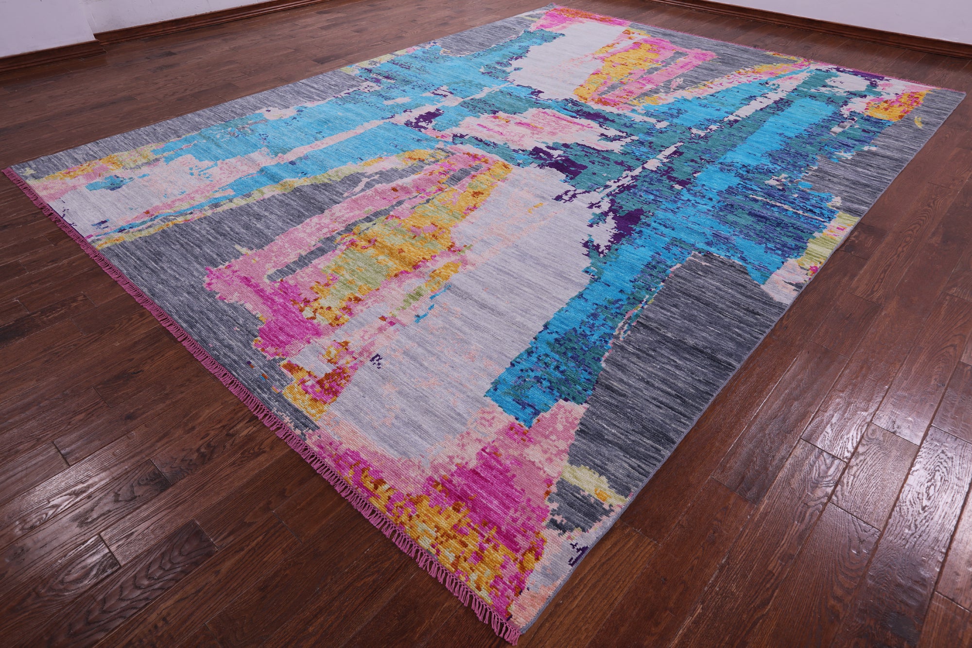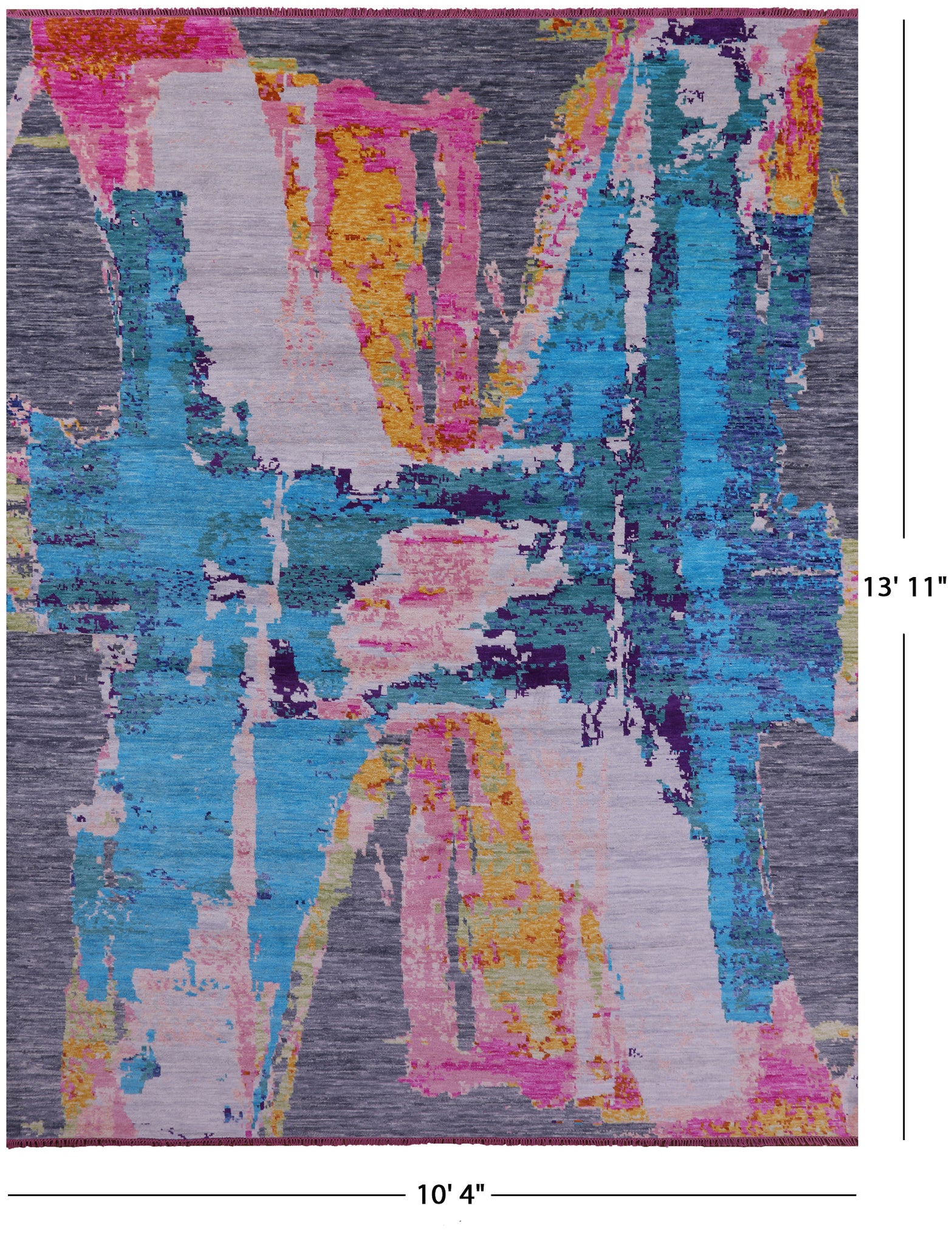 Abstract Contemporary Hand Knotted Wool Rug - 10' 4" X 13' 11"