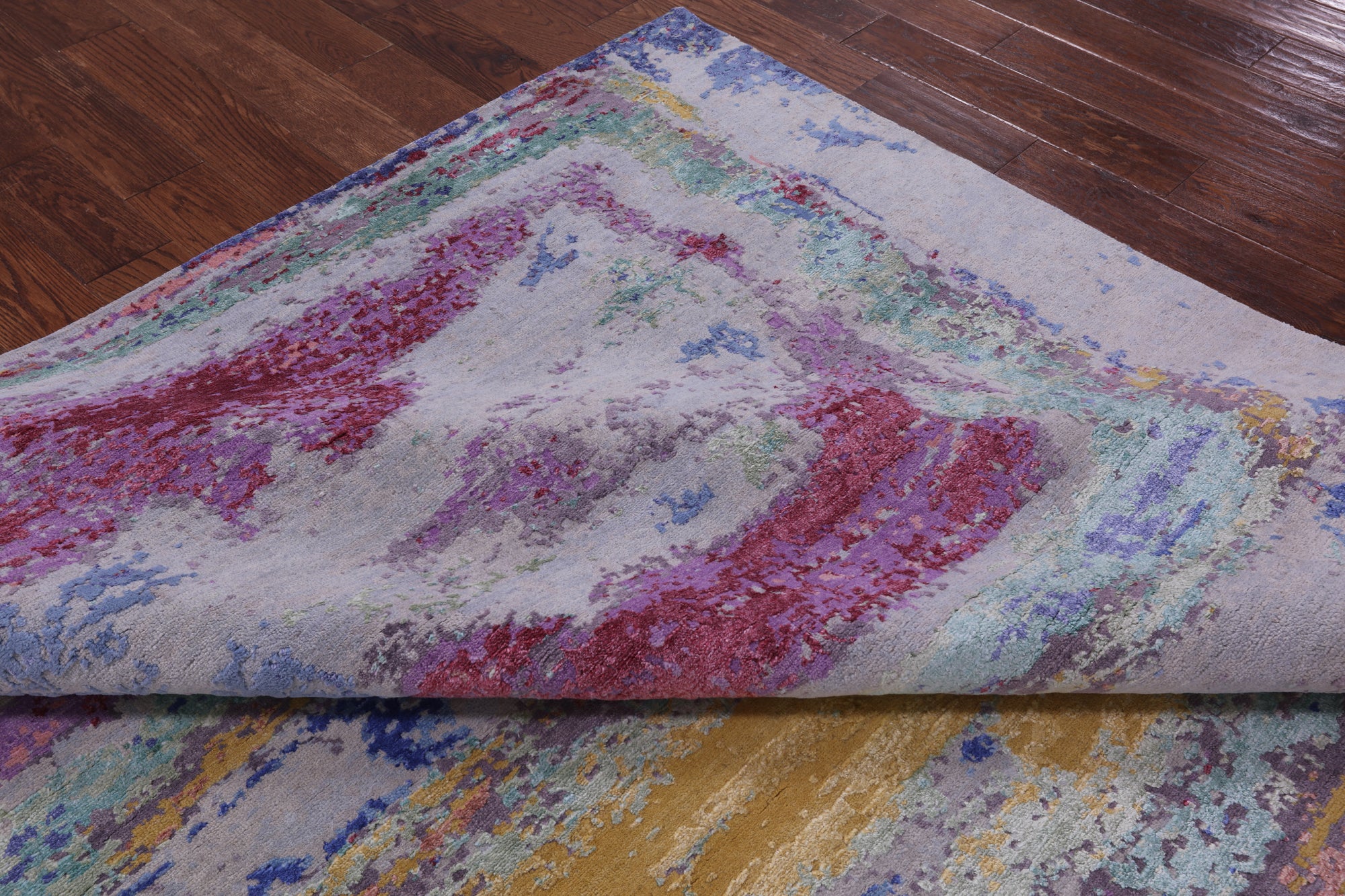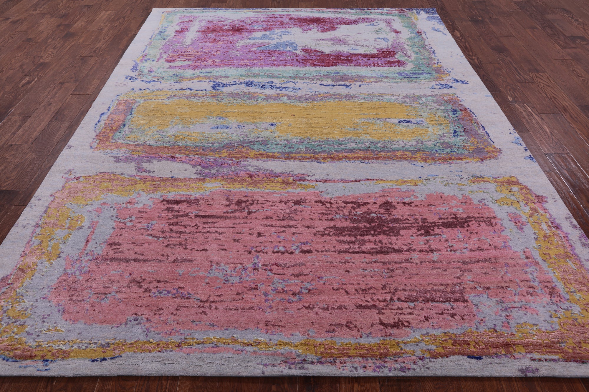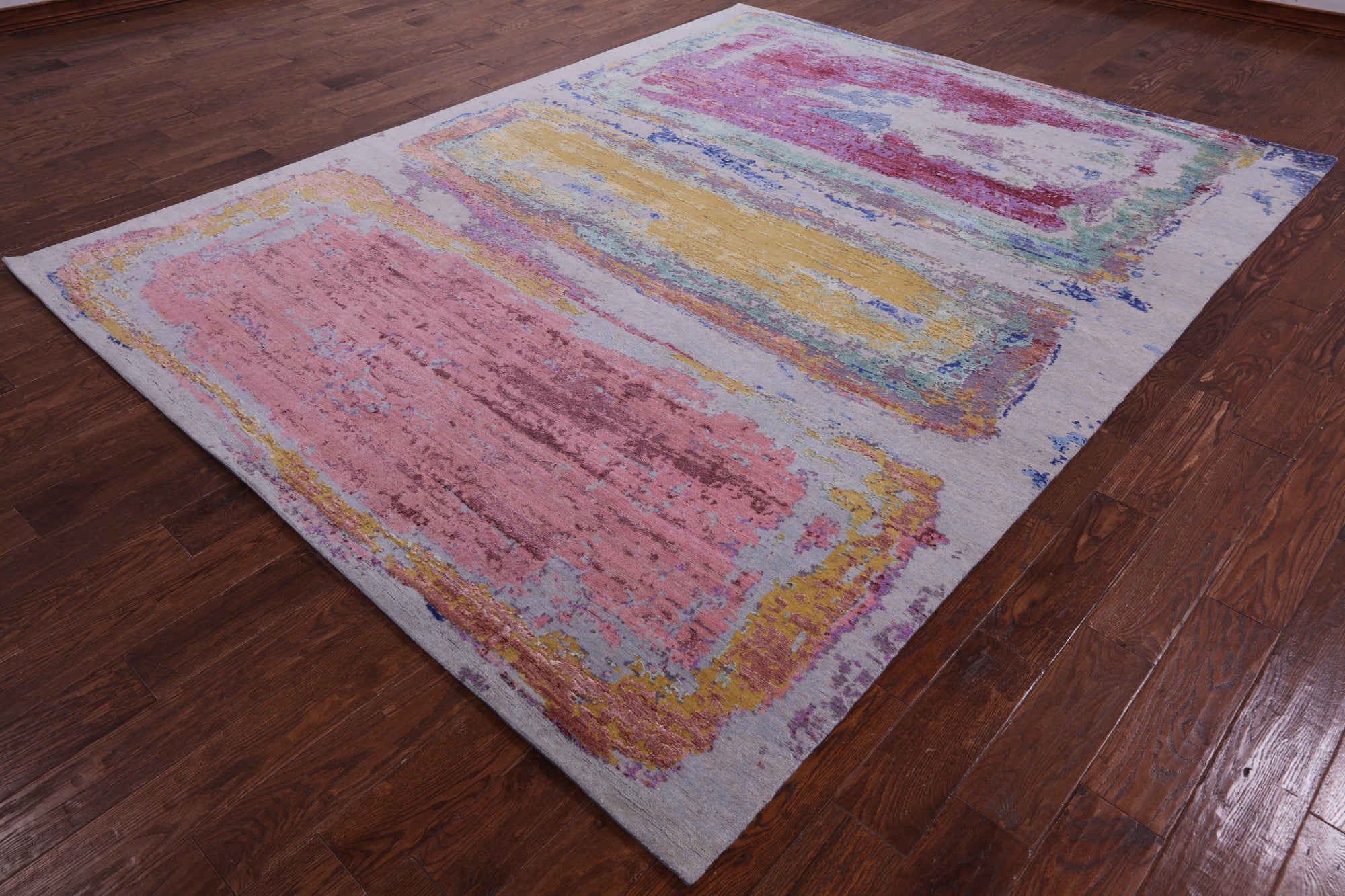 Abstract Contemporary Handmade Wool & Silk Rug - 7' 11" X 10' 1"
