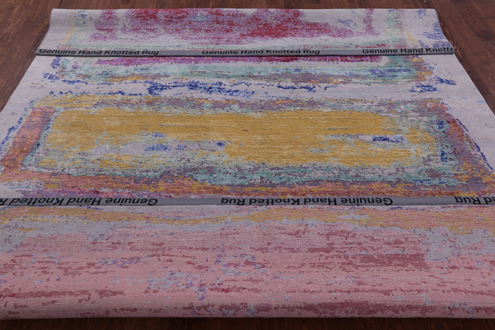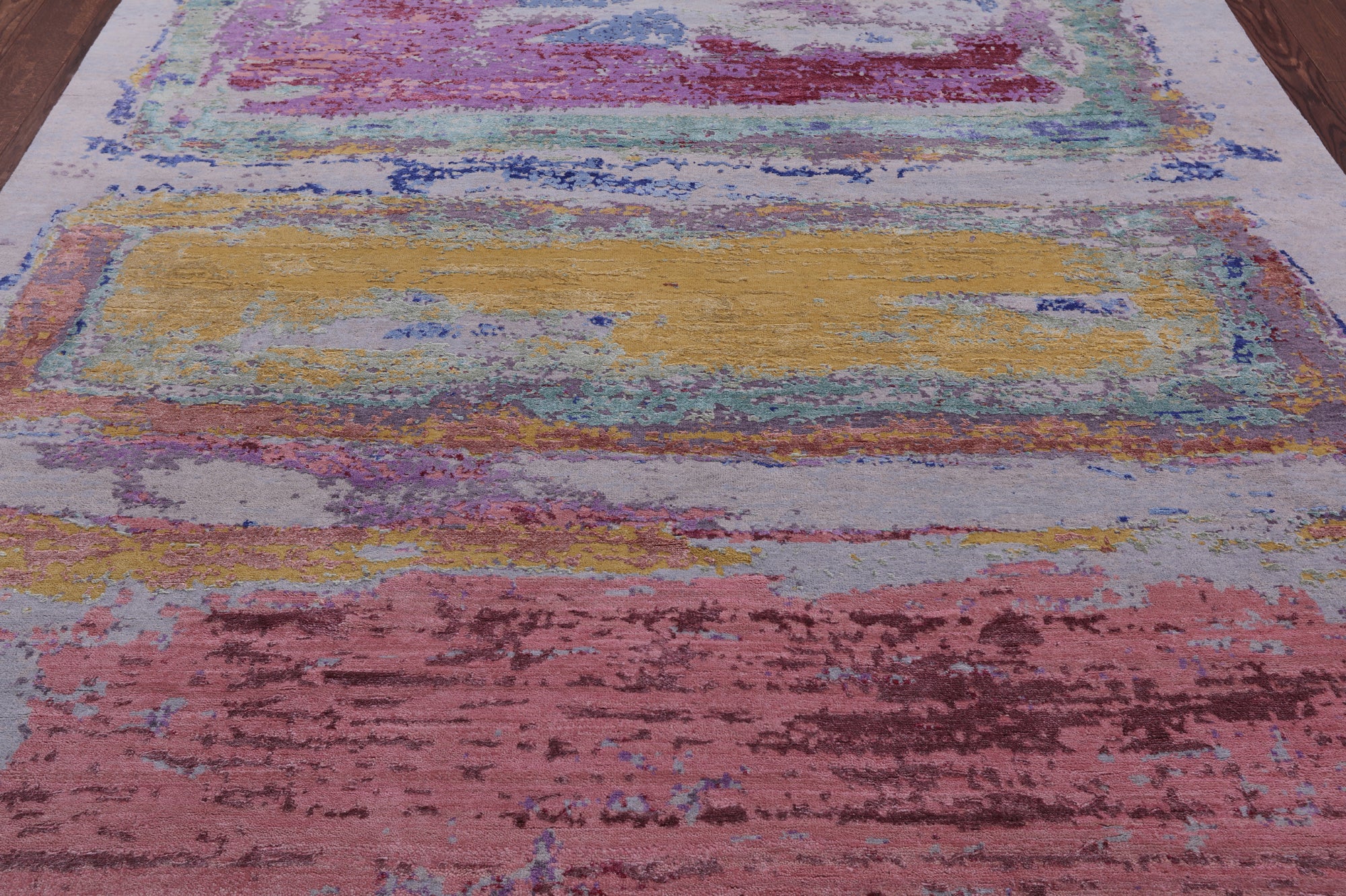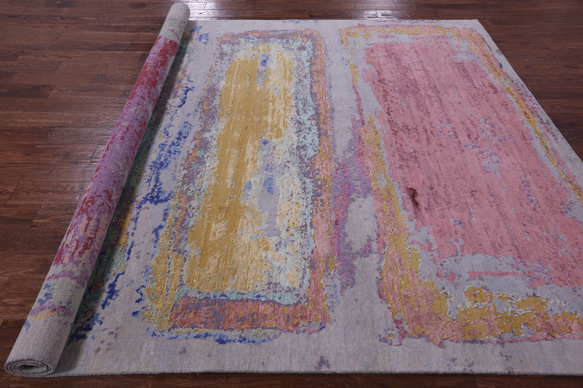 Abstract Contemporary Handmade Wool & Silk Rug - 7' 11" X 10' 1"
