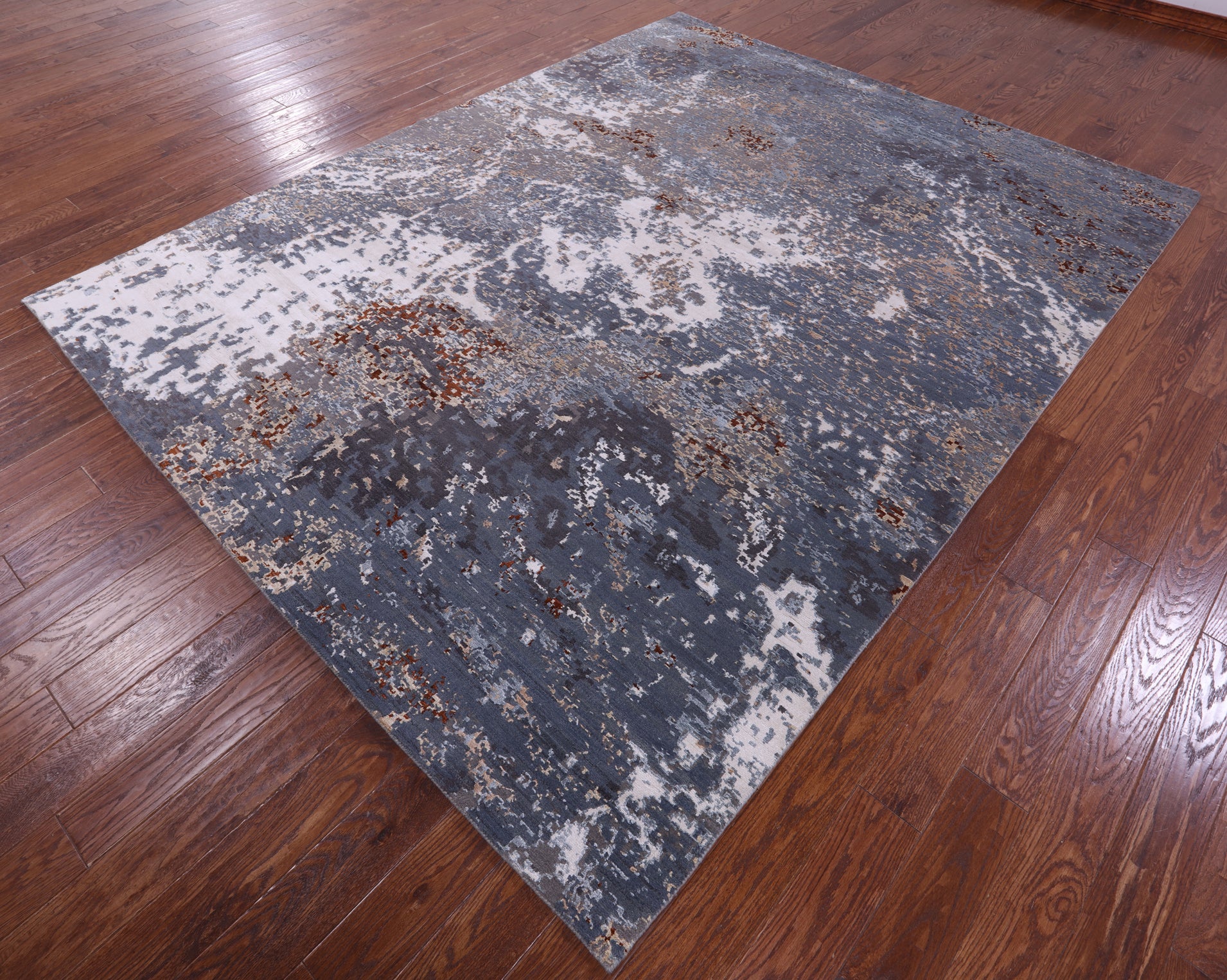 Abstract Contemporary Handmade Wool & Silk Rug - 8' 0" X 10' 3"