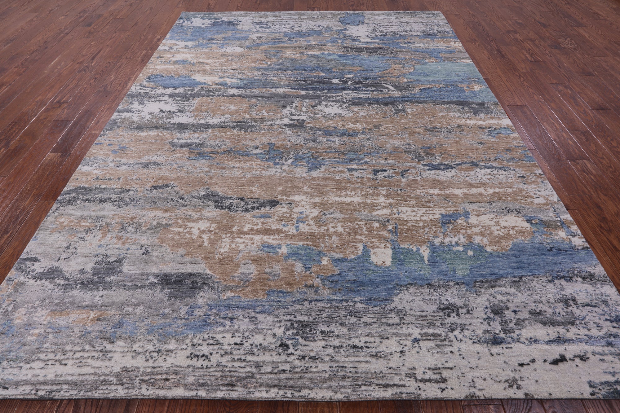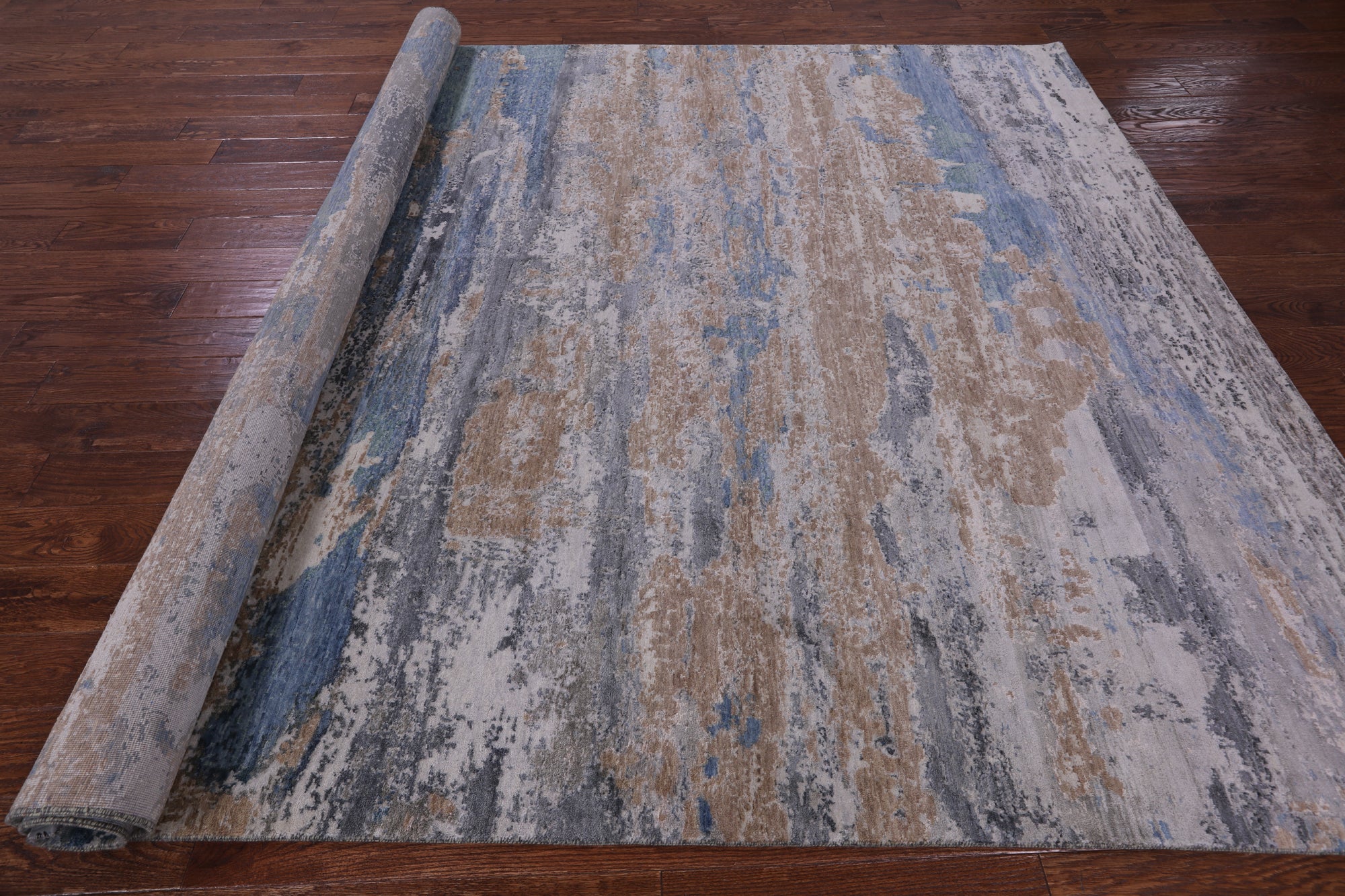 Abstract Modern Hand Knotted Wool & Silk Rug - 7' 11" X 10' 1"