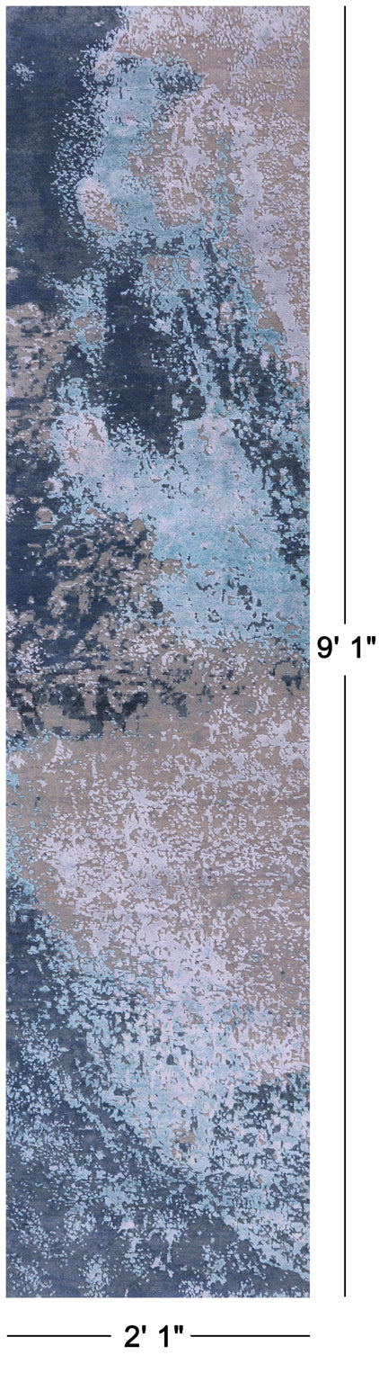 Abstract Modern Hand Knotted Wool & Silk Runner Rug - 2' 1" X 9' 1"
