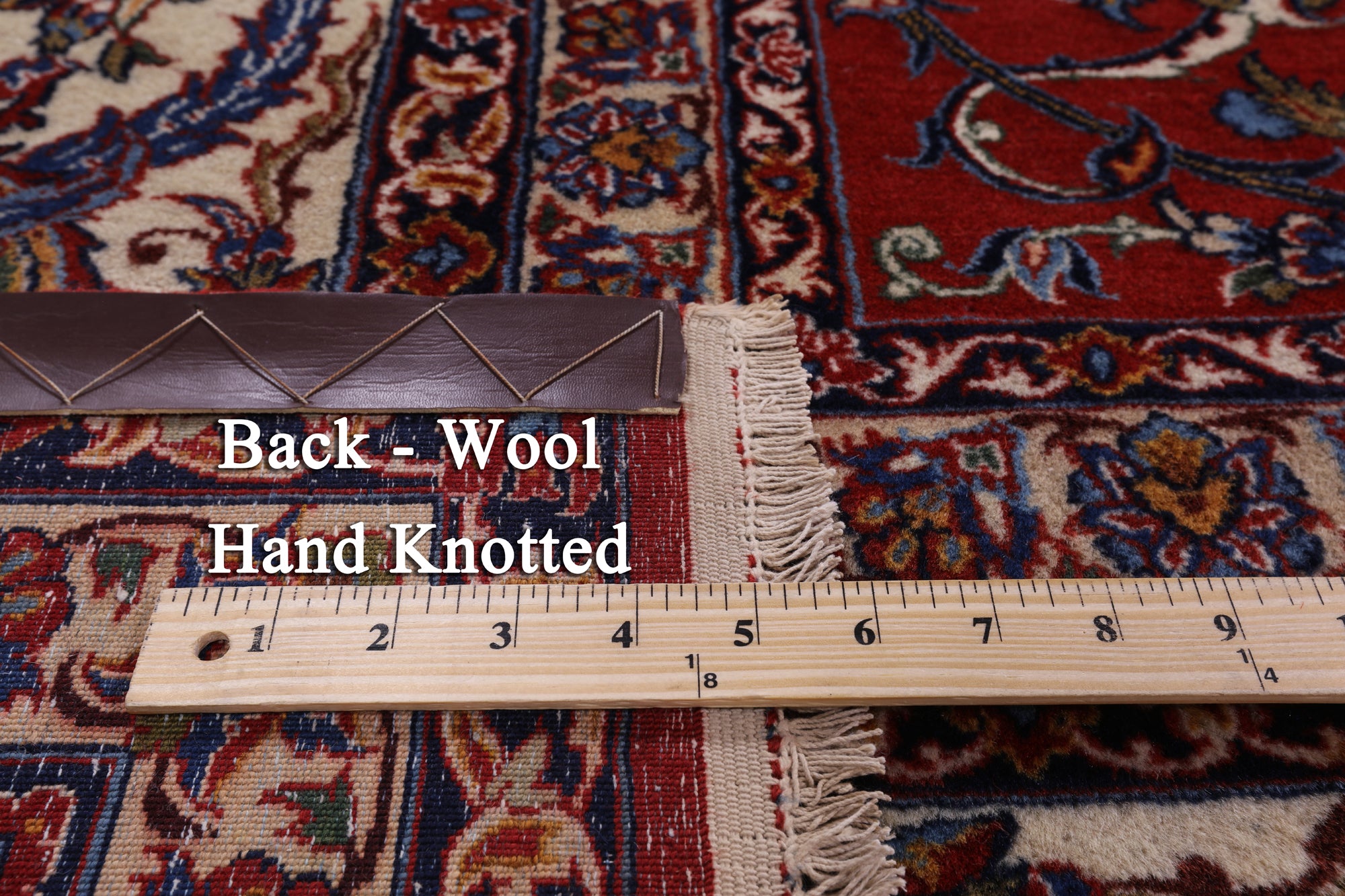 Red Antique Persian Isfahan Hand Knotted Wool Rug - 10' 9" X 14' 1"