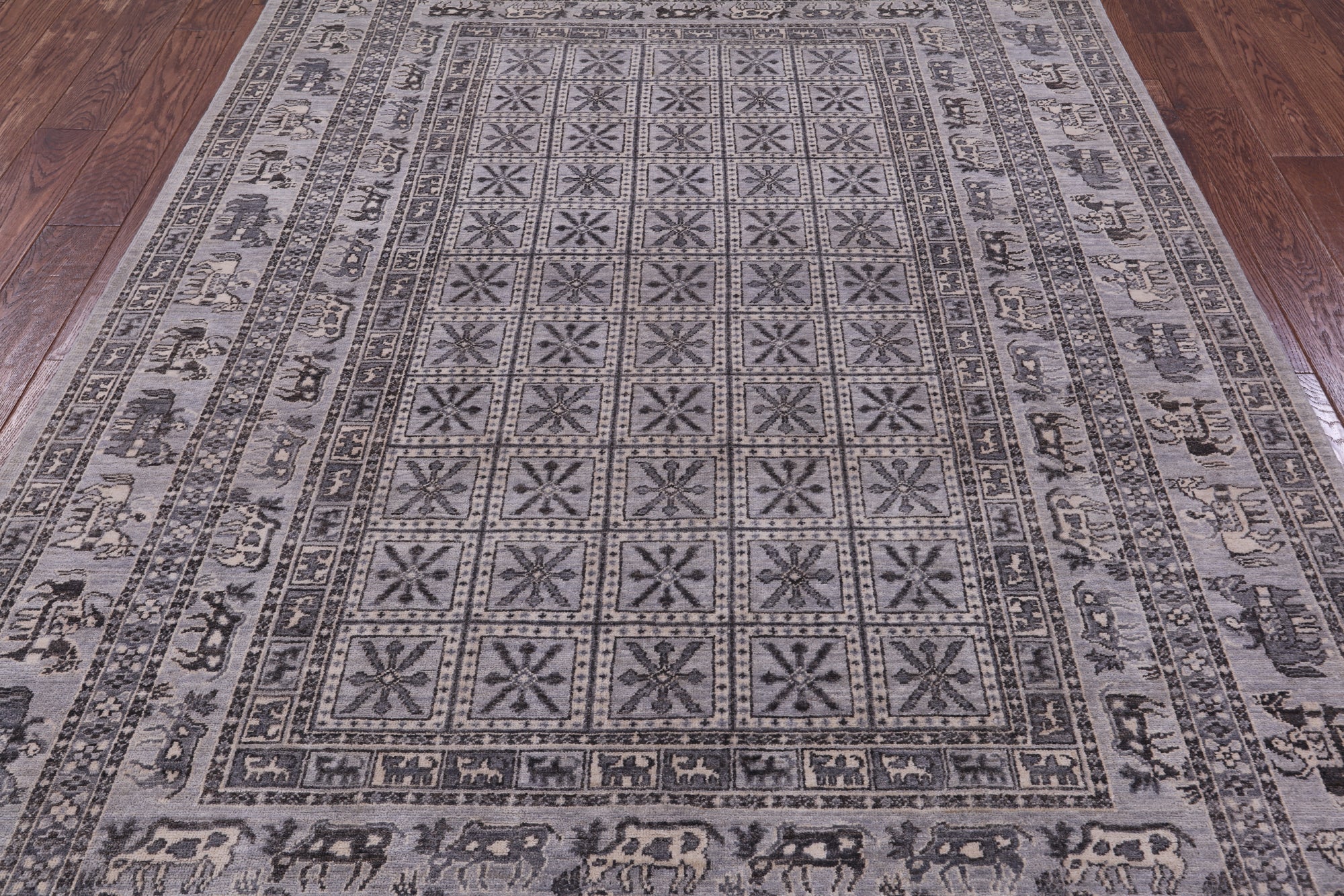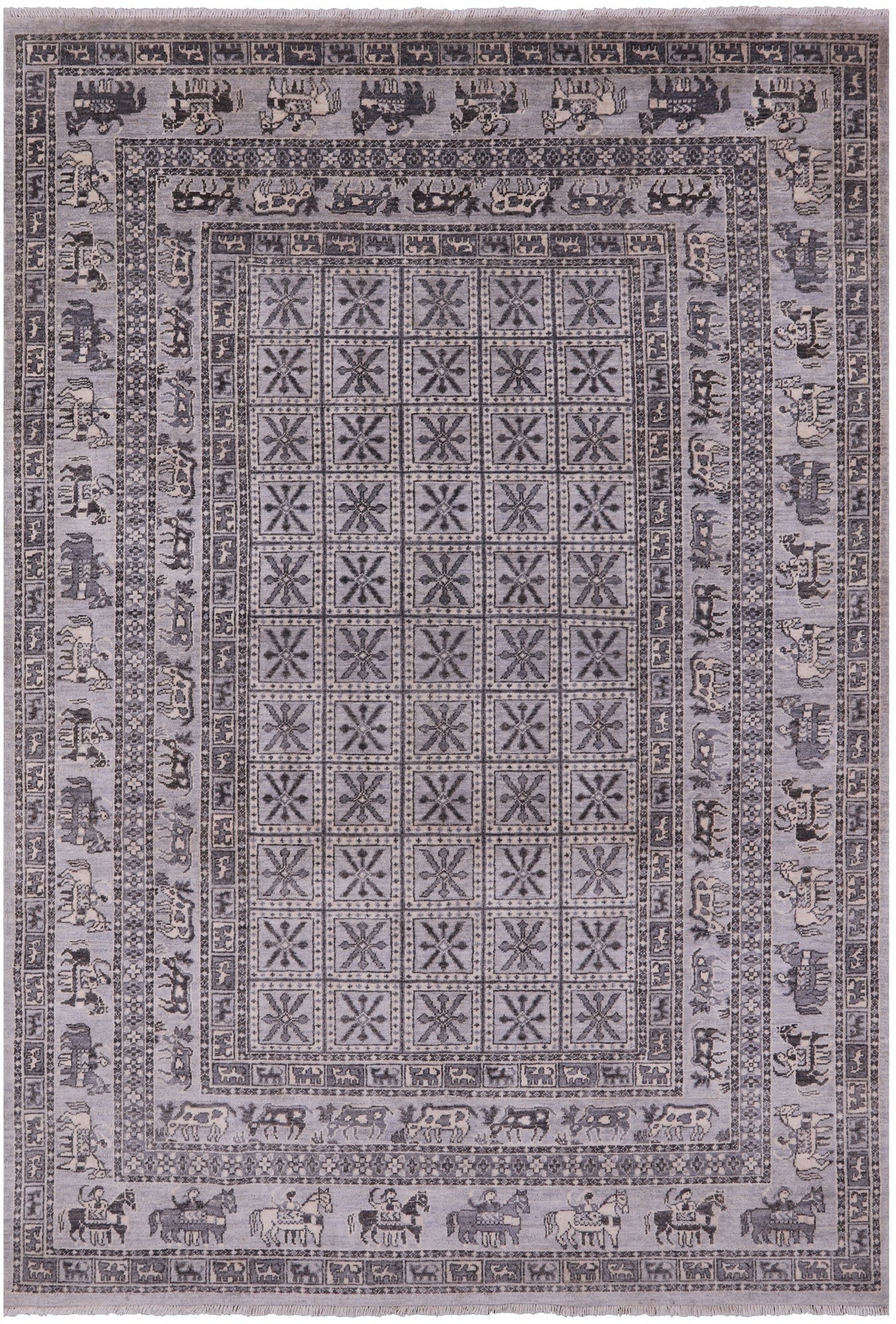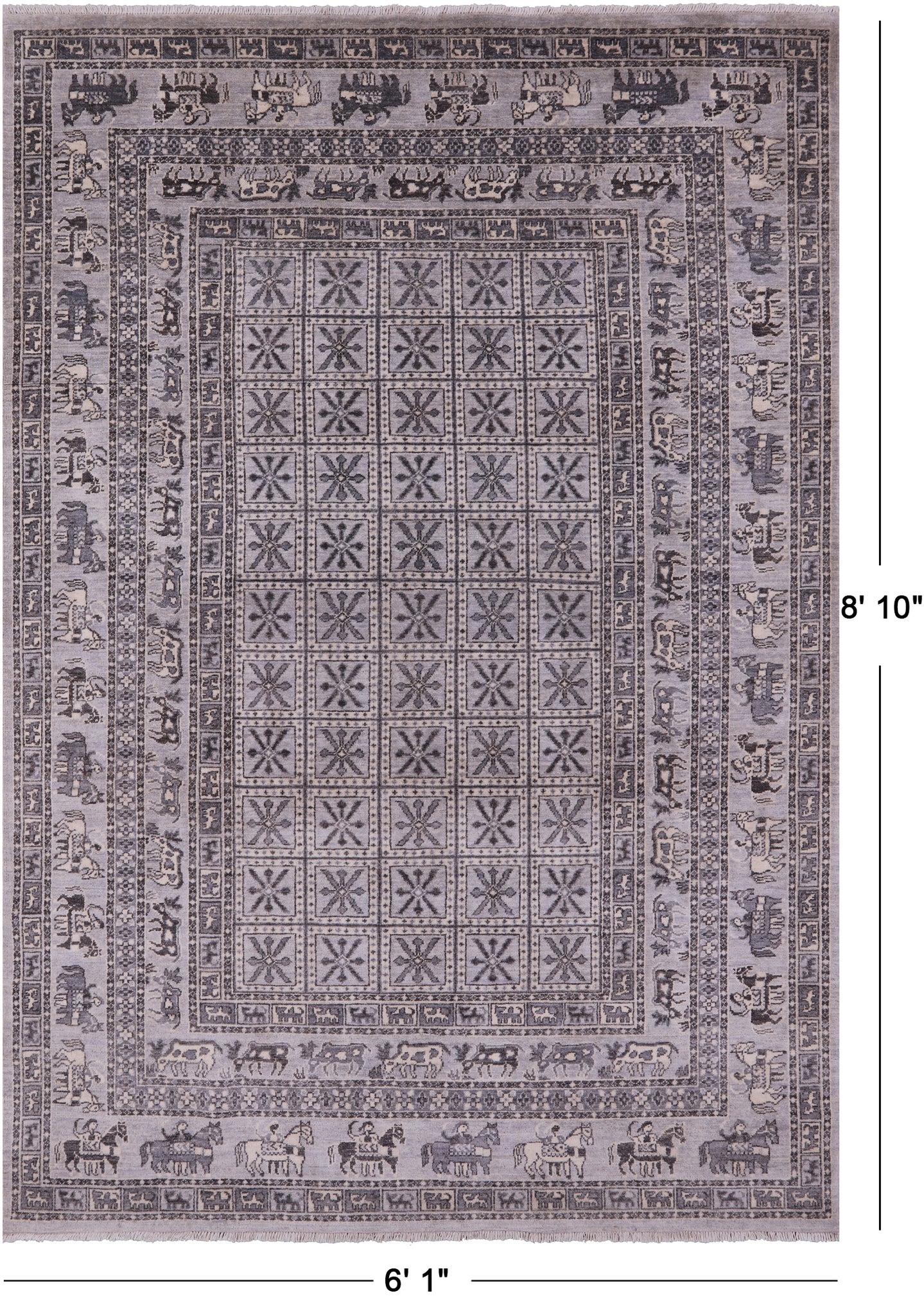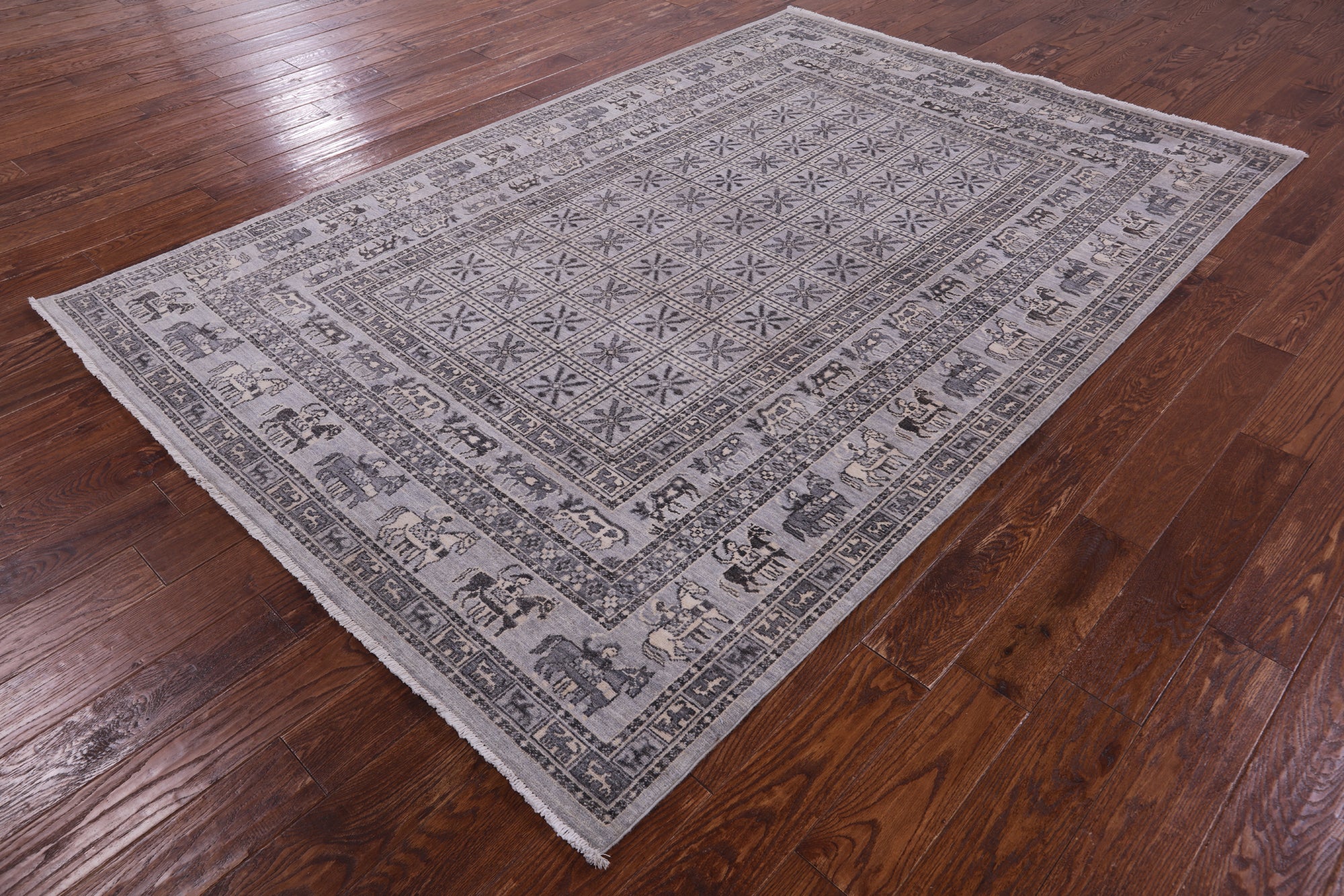 Grey Antiqued Pazyryk Historical Design Handmade Wool Rug - 6' 1" X 8' 10"