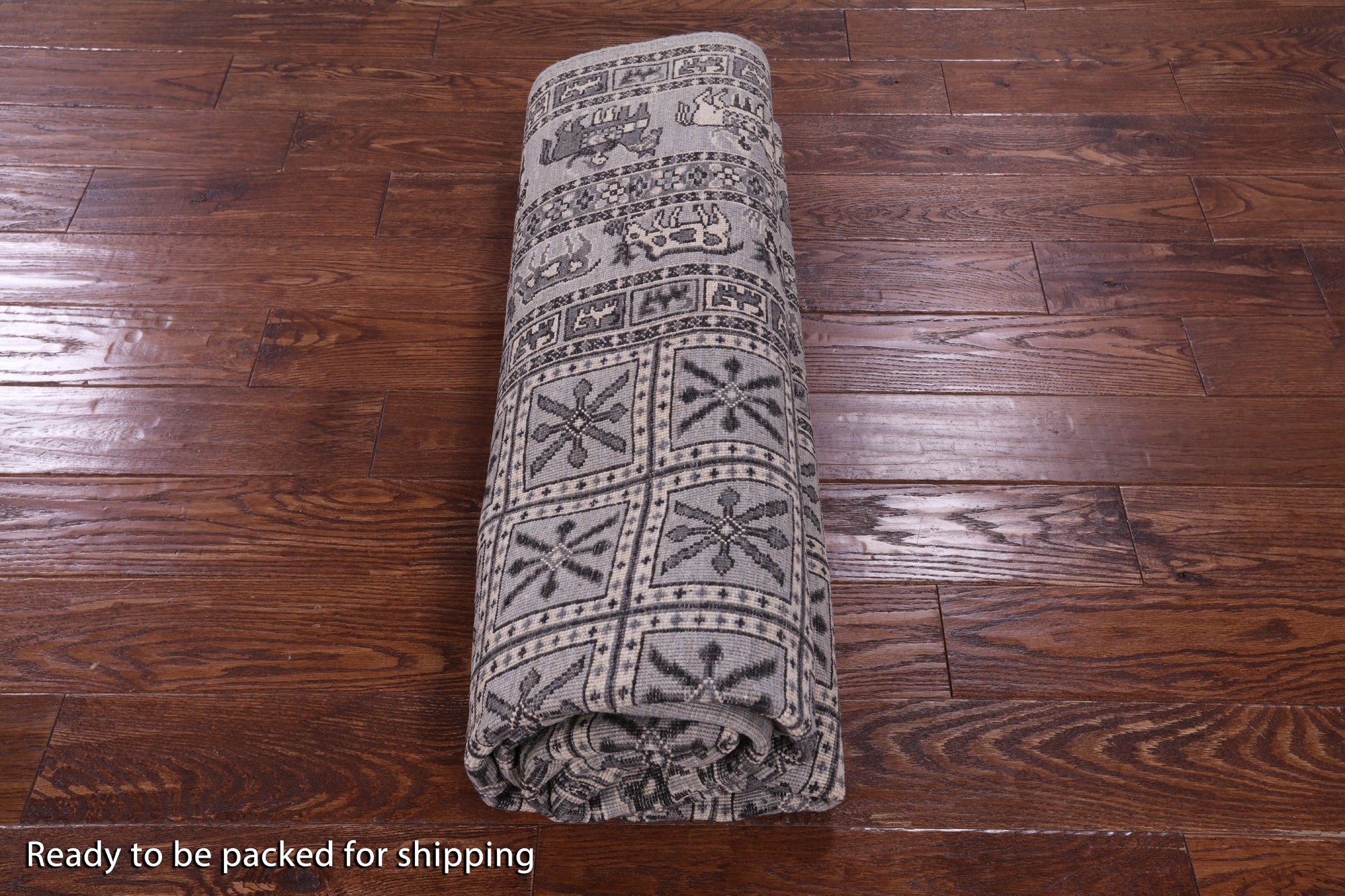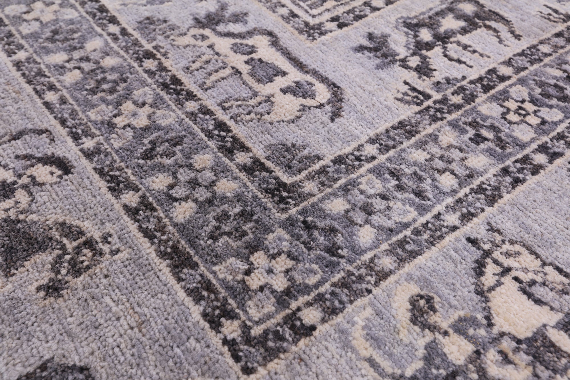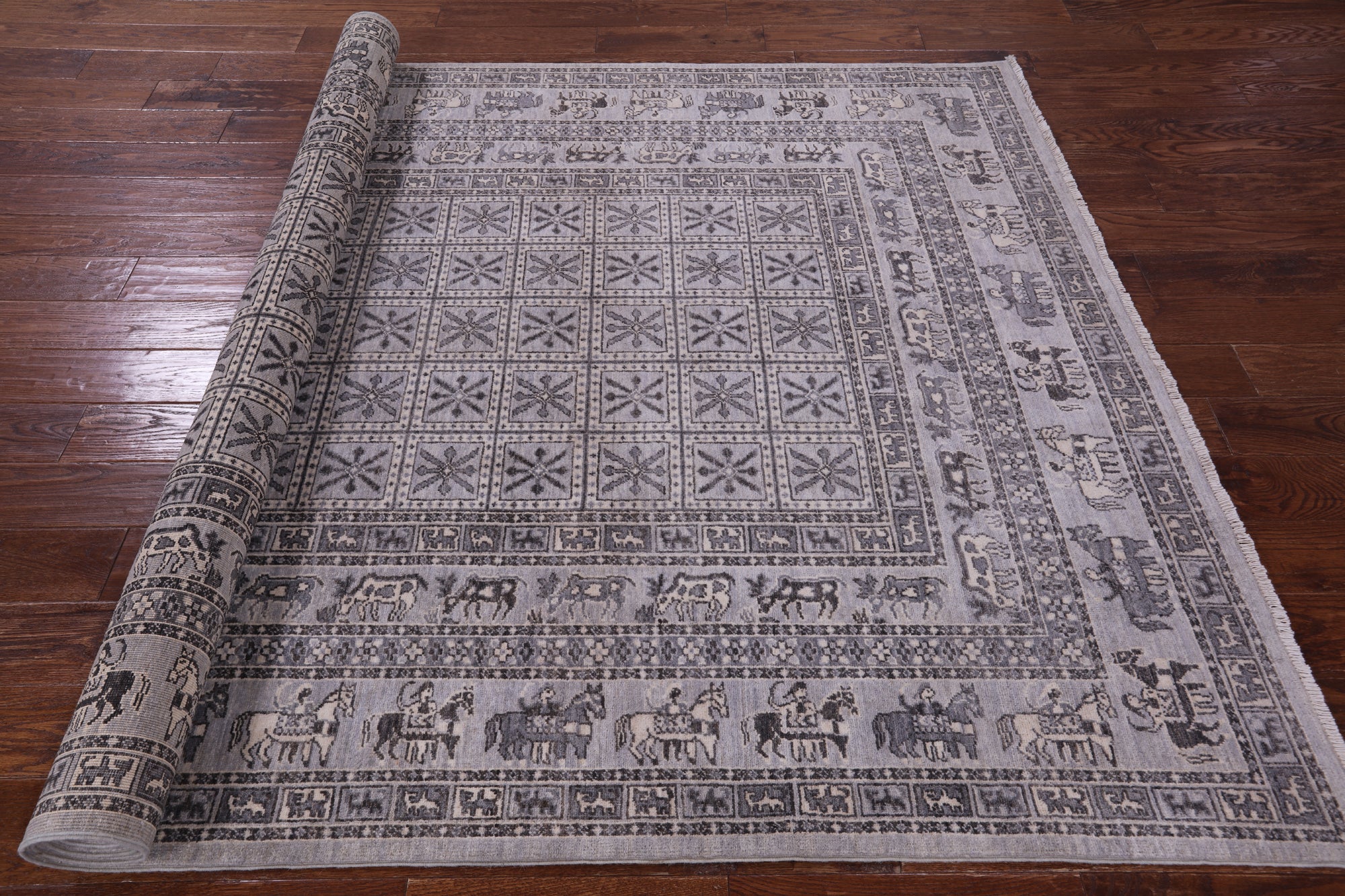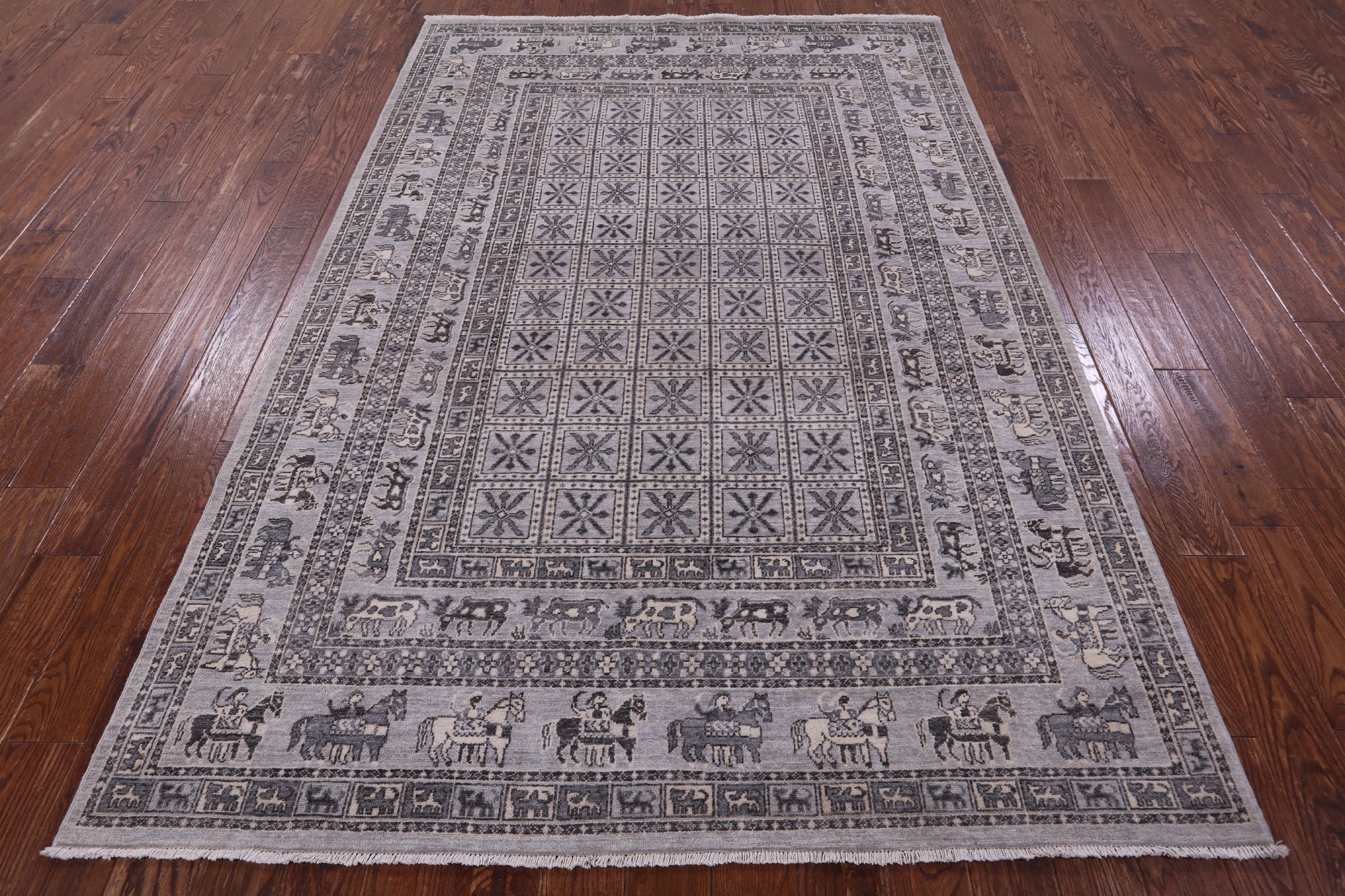 Grey Antiqued Pazyryk Historical Design Handmade Wool Rug - 6' 1" X 8' 10"