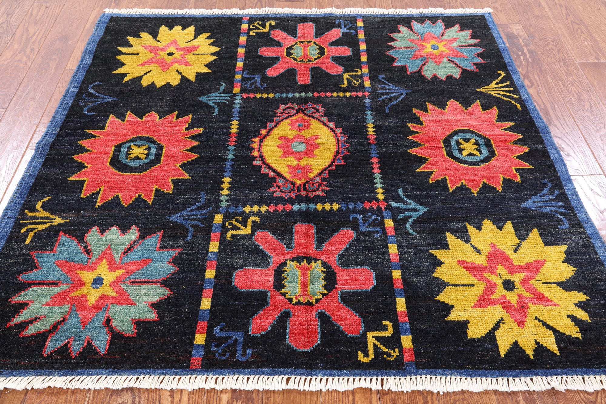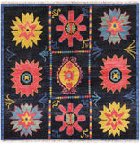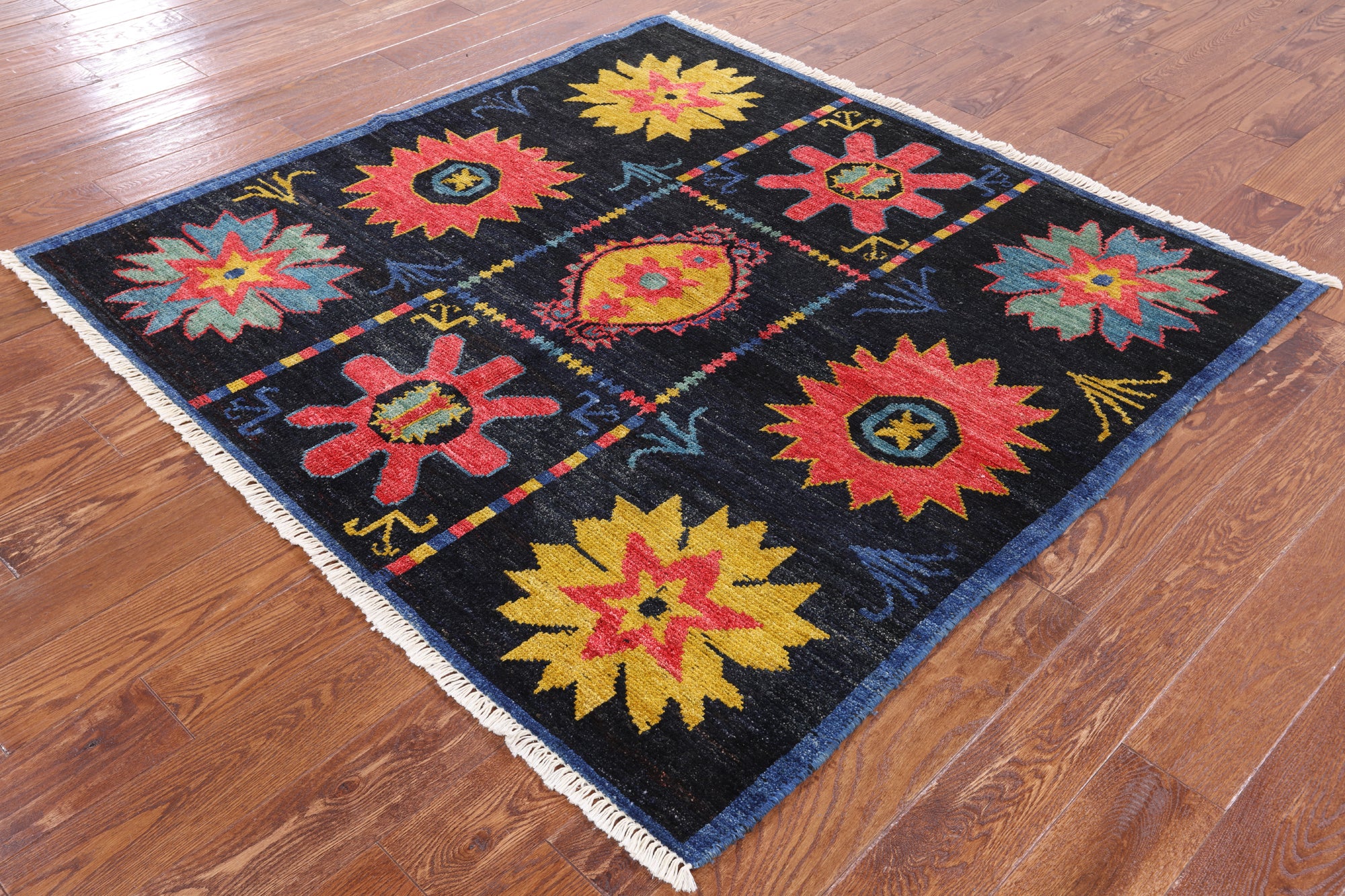Square Ikat Hand Knotted Wool Rug - 5' 3" X 5' 6"