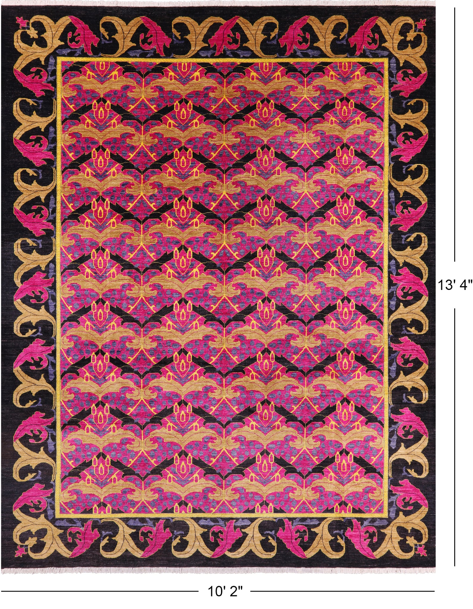 Pink William Morris Hand Knotted Wool Area Rug - 10' 2" X 13' 4"