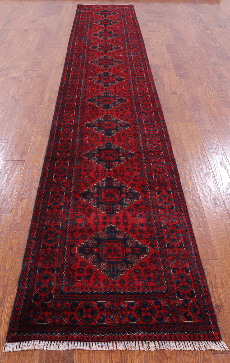 Bokhara Rugs are classic Turkoman designs originally created by nomadic tribes in India. Bokhara Rugs are among the most popular handmade rugs widely produced in Pakistan, India & Afghanistan. There foundation and heavy pile consist of wool, and have a soft luxurious feel. There unique designs consist of repeating geometric designs and vary from one tribe to another. Designs are commonly dark blue/navy, black, brown, or red with ivory accents.