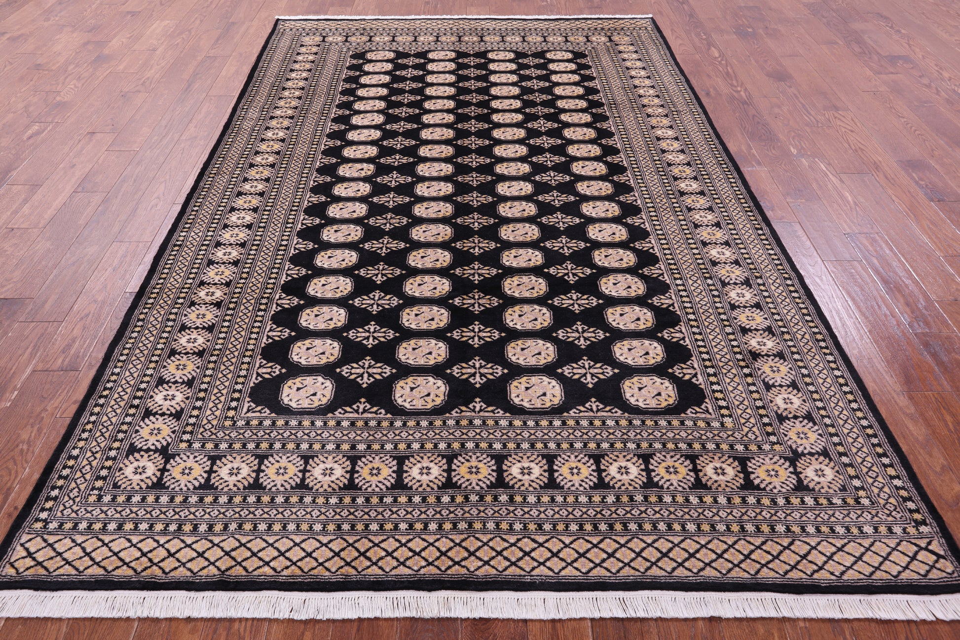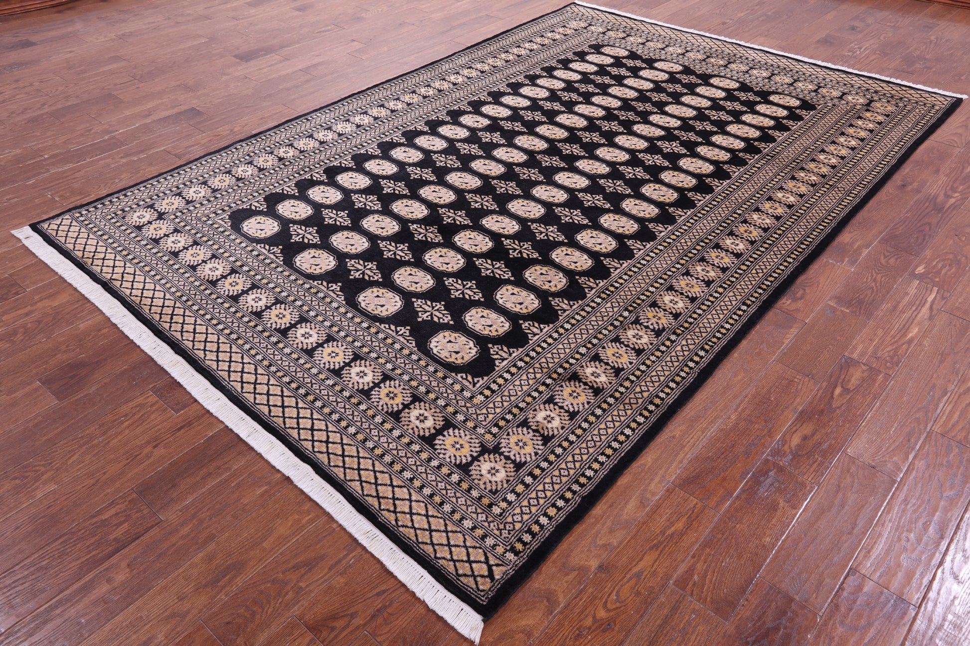 Black Bokhara Hand-Knotted Wool Rug - 6' 8" X 10' 2"