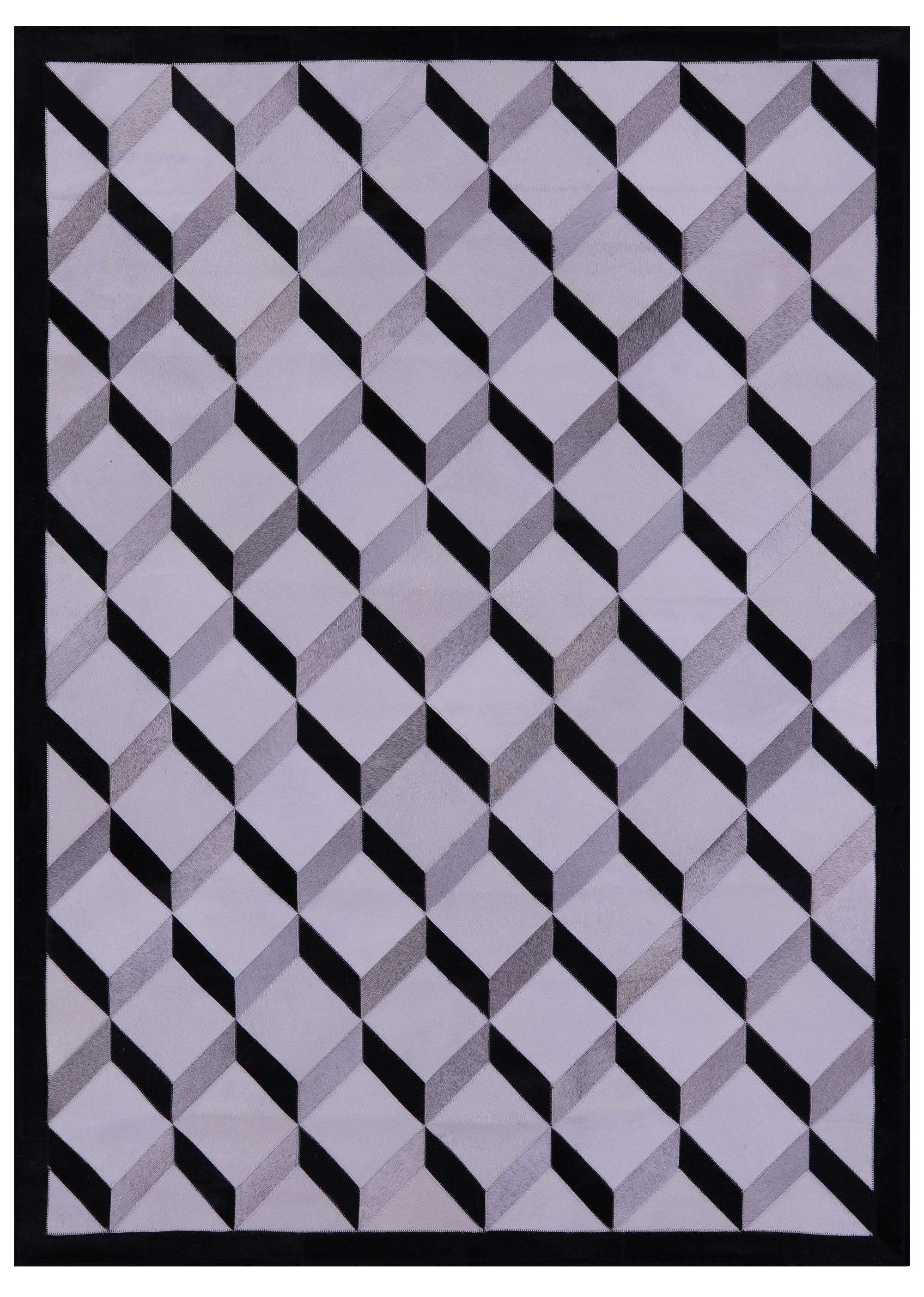 Black & White & Grey Natural Cowhide Hand Stitched Patchwork Rug - 5' 0" X 6' 7"