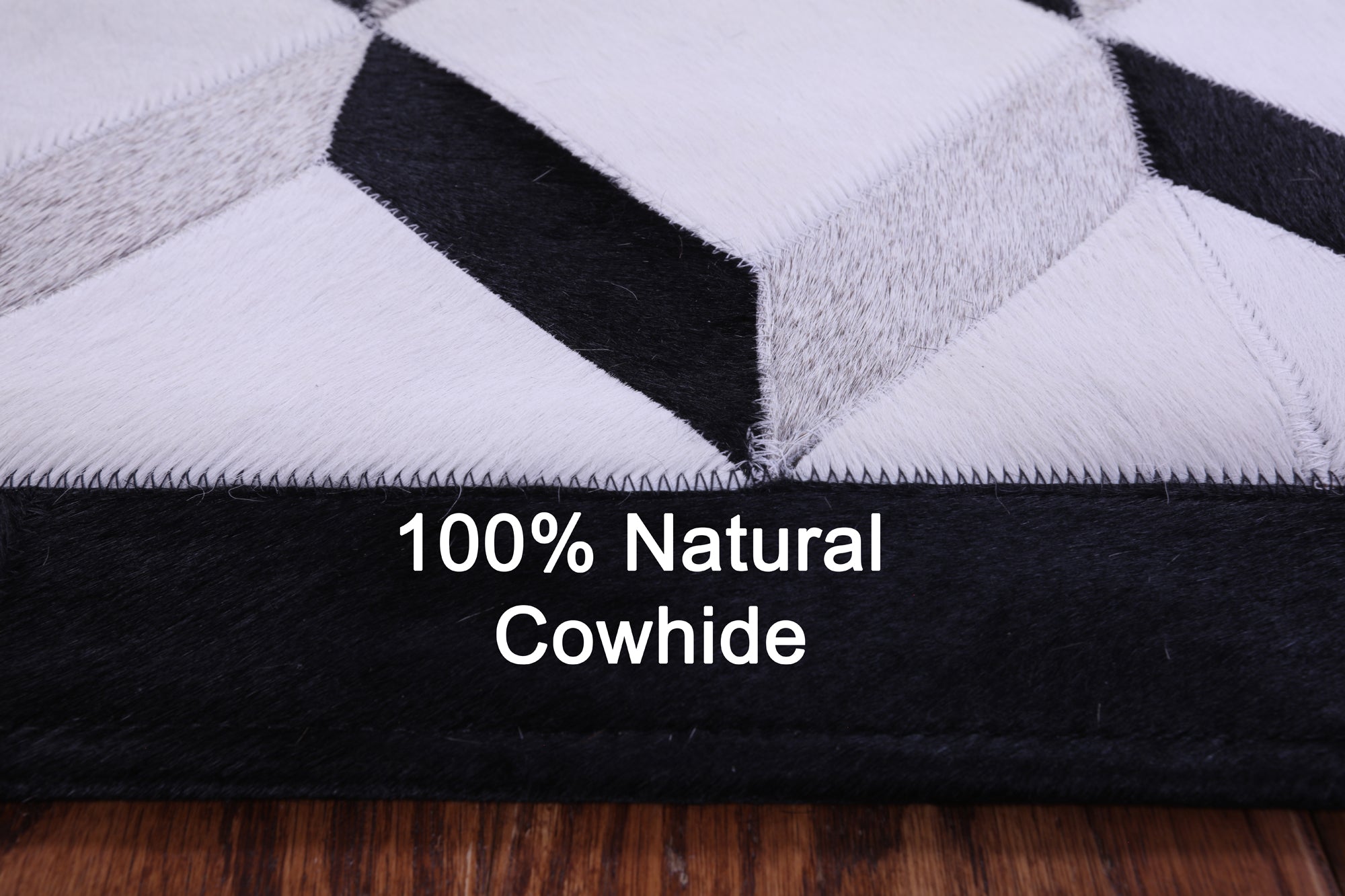 Black & White & Grey Natural Cowhide Hand Stitched Patchwork Rug - 5' 0" X 6' 7"