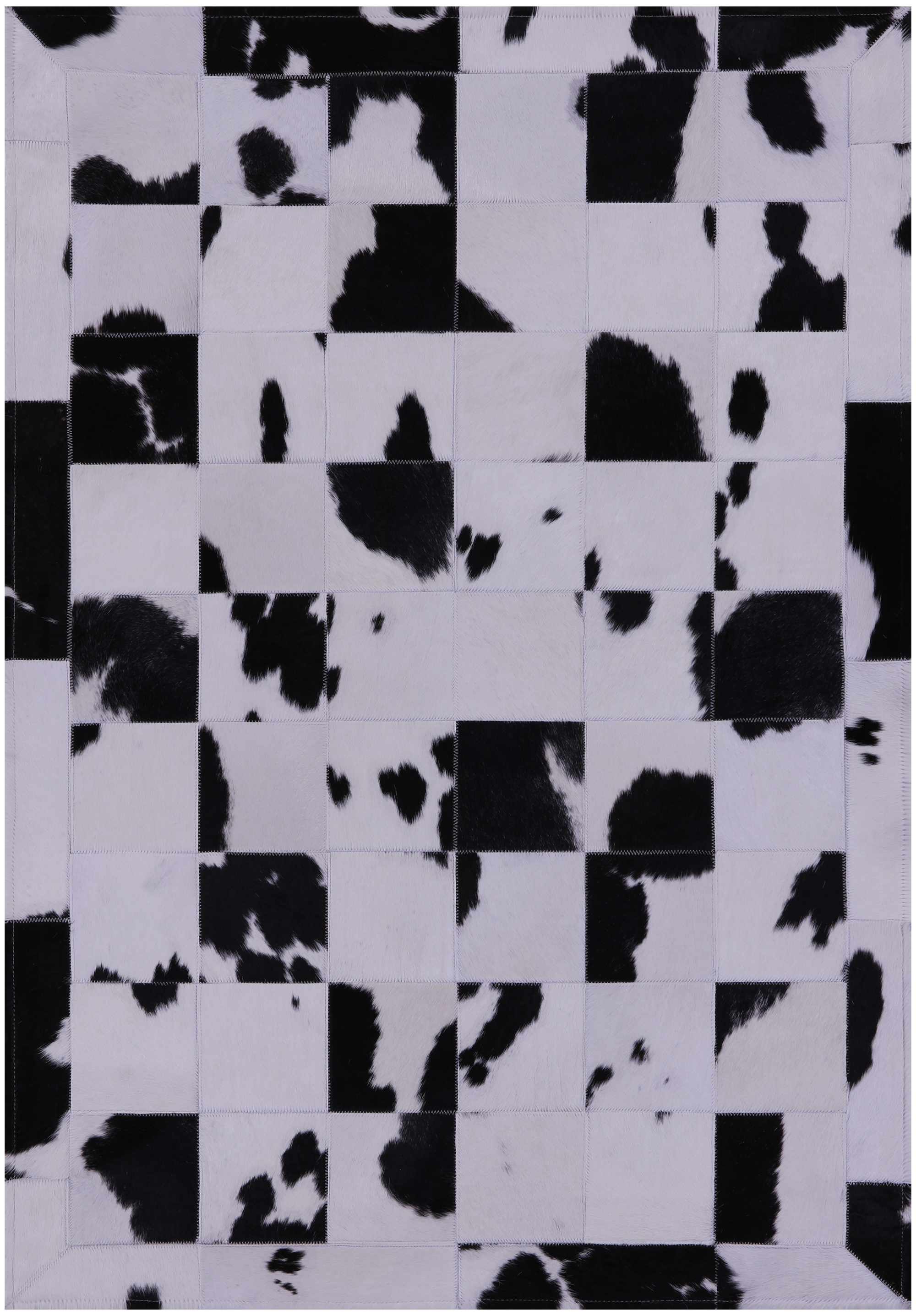 Black & White Natural Cowhide Hand Stitched Patchwork Rug - 3' 5" X 5' 0"