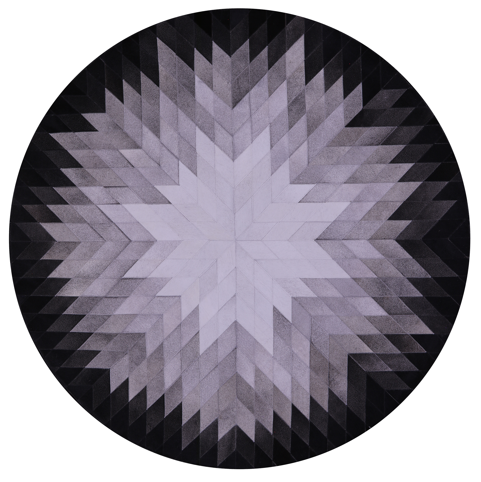 Black & White Round Star Natural Cowhide Hand Stitched Patchwork Rug - 6' 7" X 6' 7"