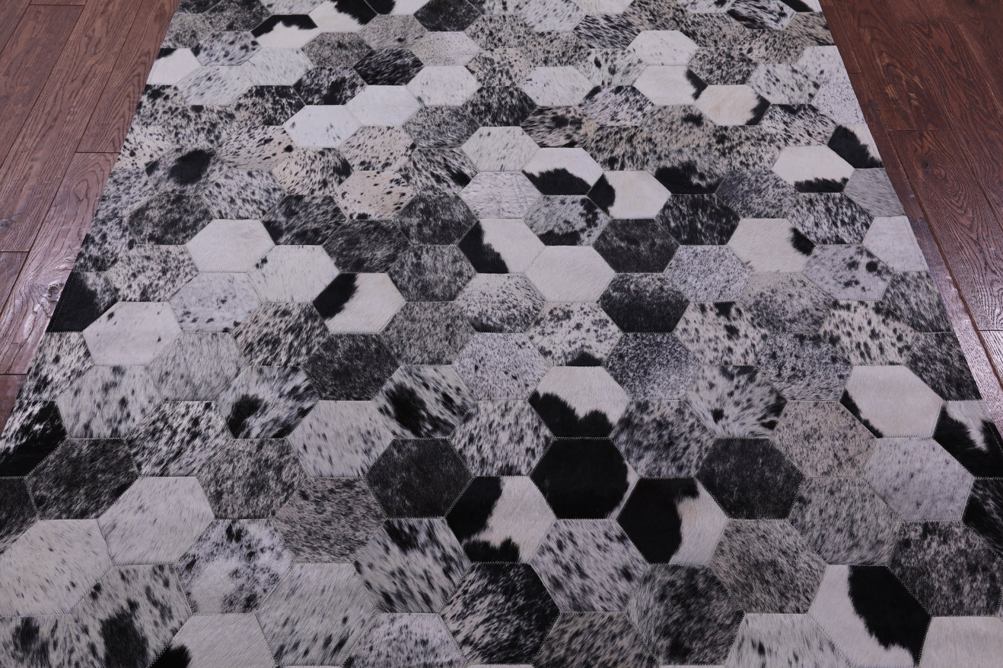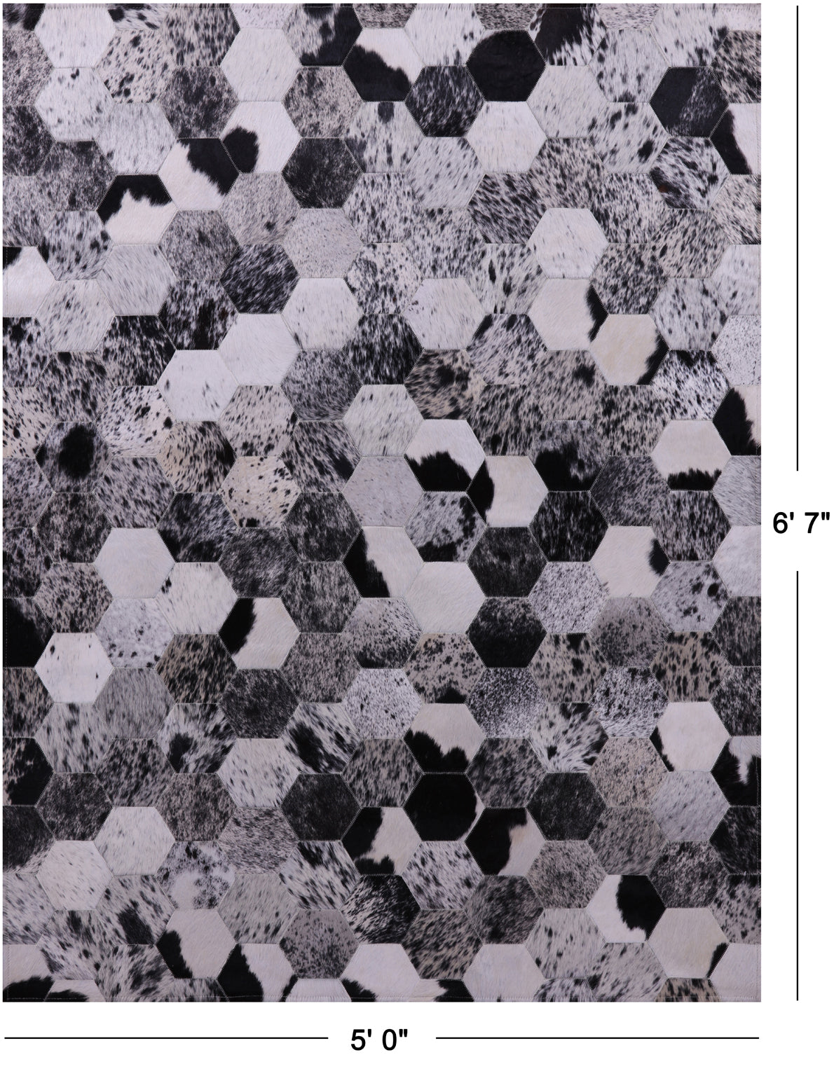 Black & White Salt & Pepper Natural Cowhide Hand Stitched Patchwork Rug - 5' 0" X 6' 7"