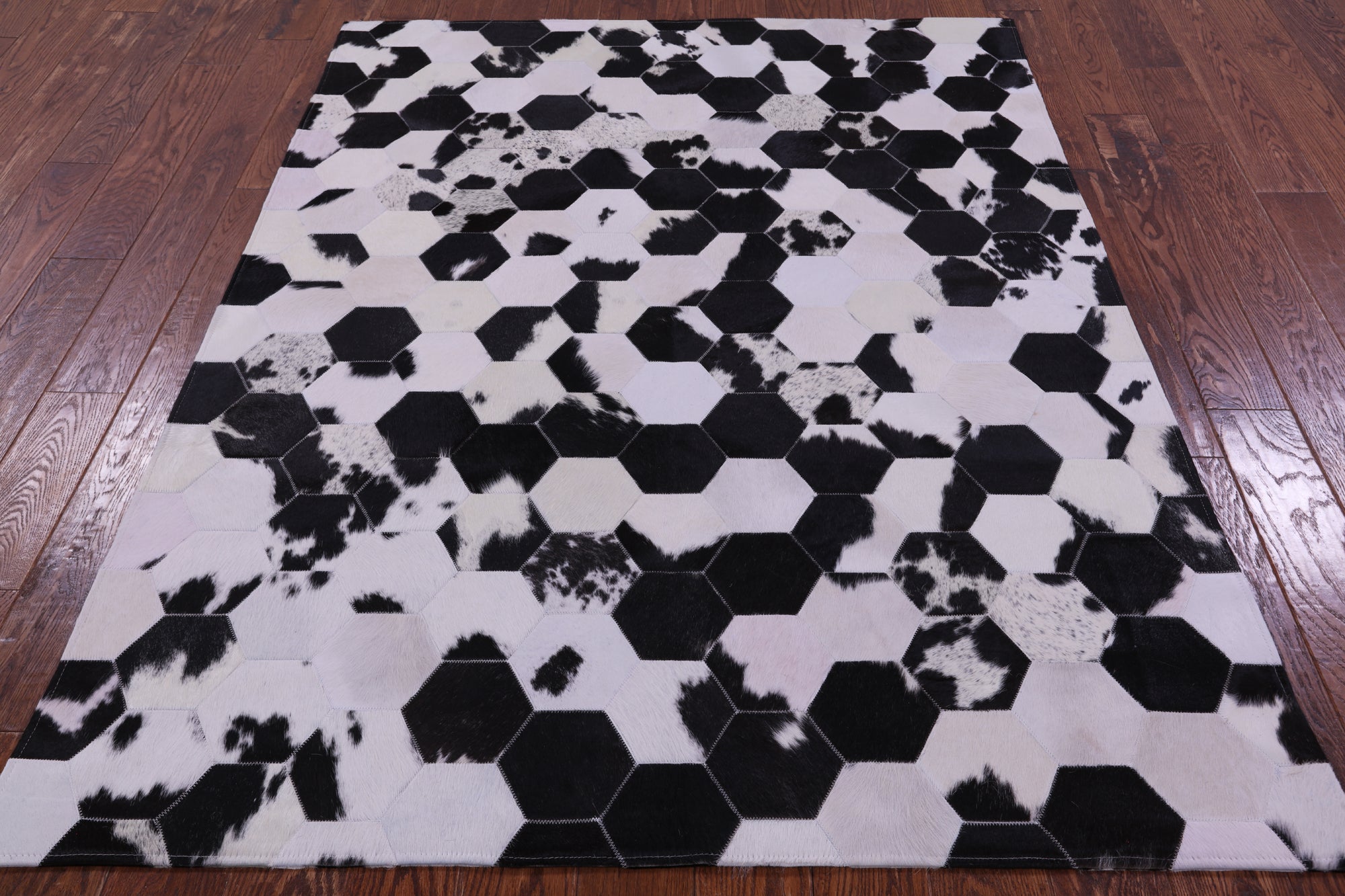 Black & White With Pink Hue Natural Cowhide Hand Stitched Patchwork Rug - 5' 0" X 6' 8"