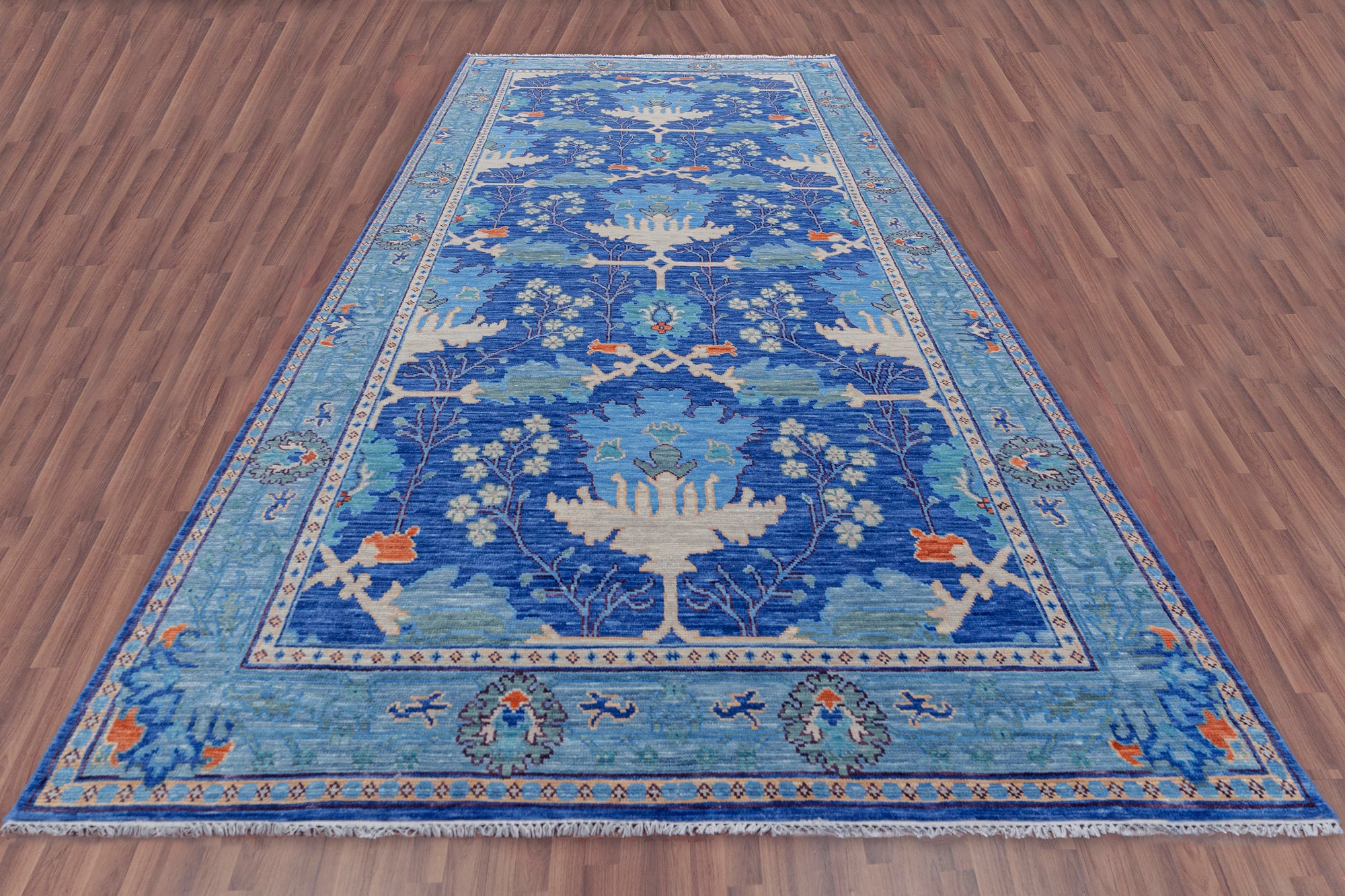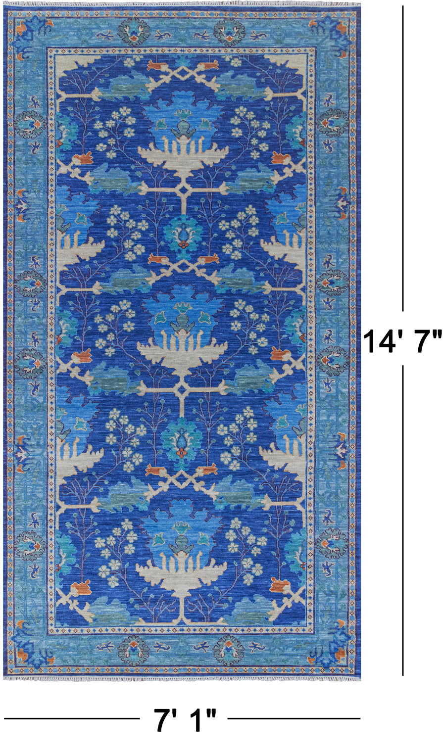 Blue Turkish Oushak Hand Knotted Wool Rug - 7' 1" X 14' 7"