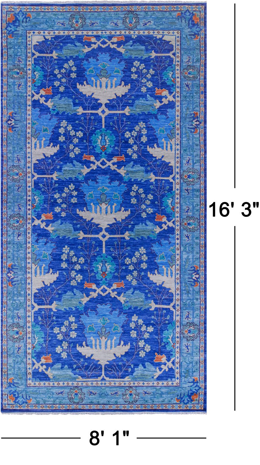 Blue Turkish Oushak Hand Knotted Wool Rug - 8' 1" X 16' 3"