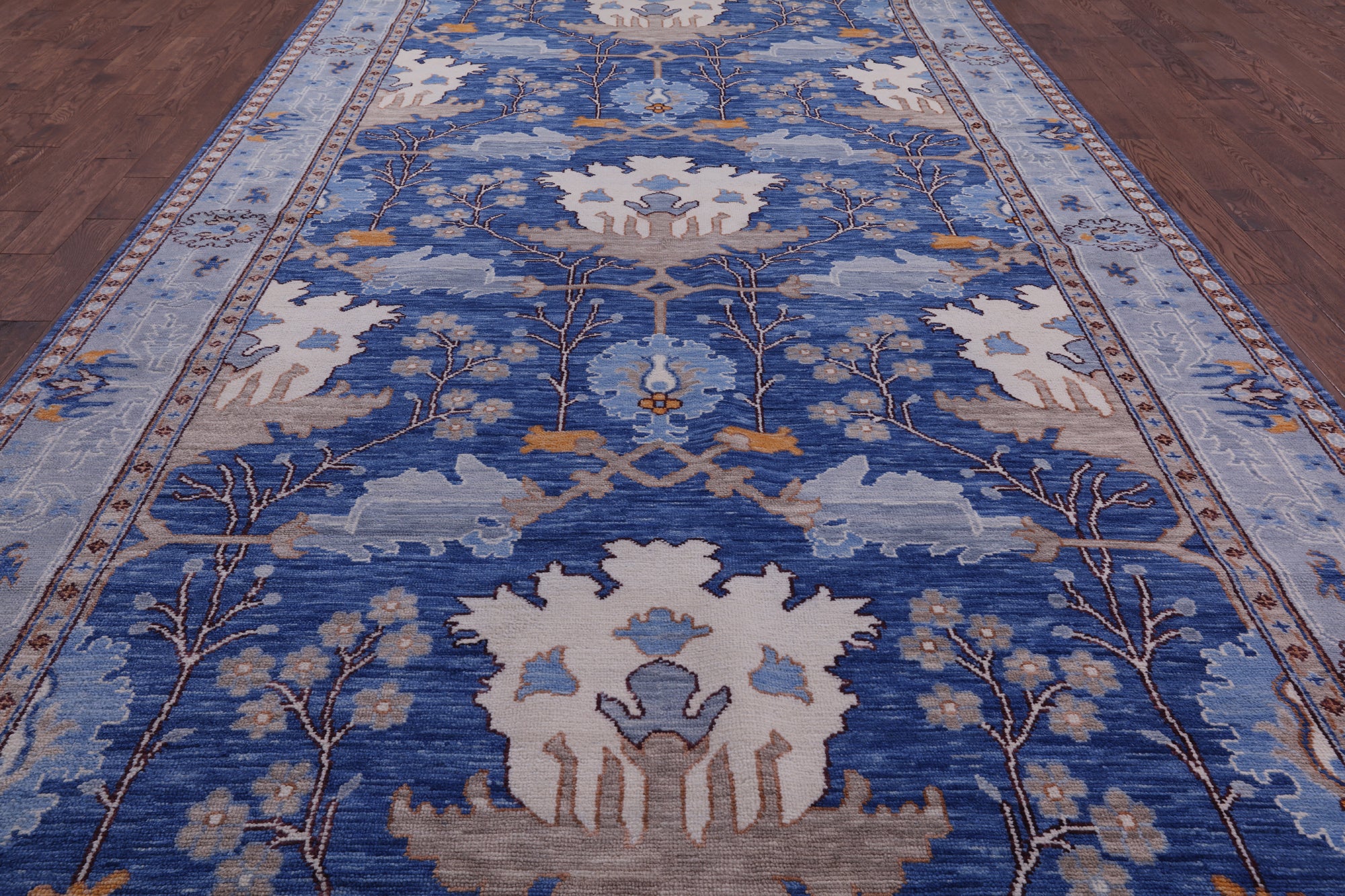 Blue Turkish Oushak Handmade Wool Rug - 9' 3" X 18' 1"