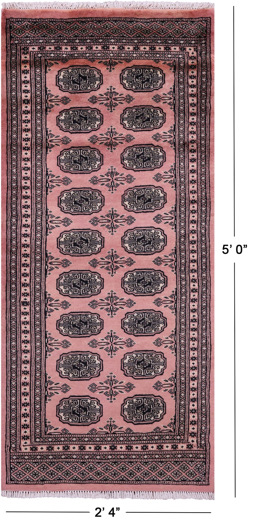 Pink Bokhara Hand Knotted Wool Rug - 2' 4" X 5' 0"