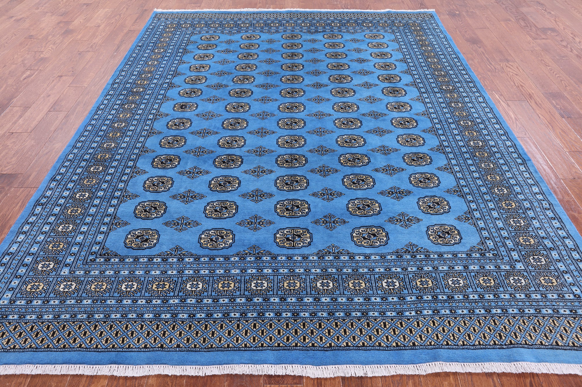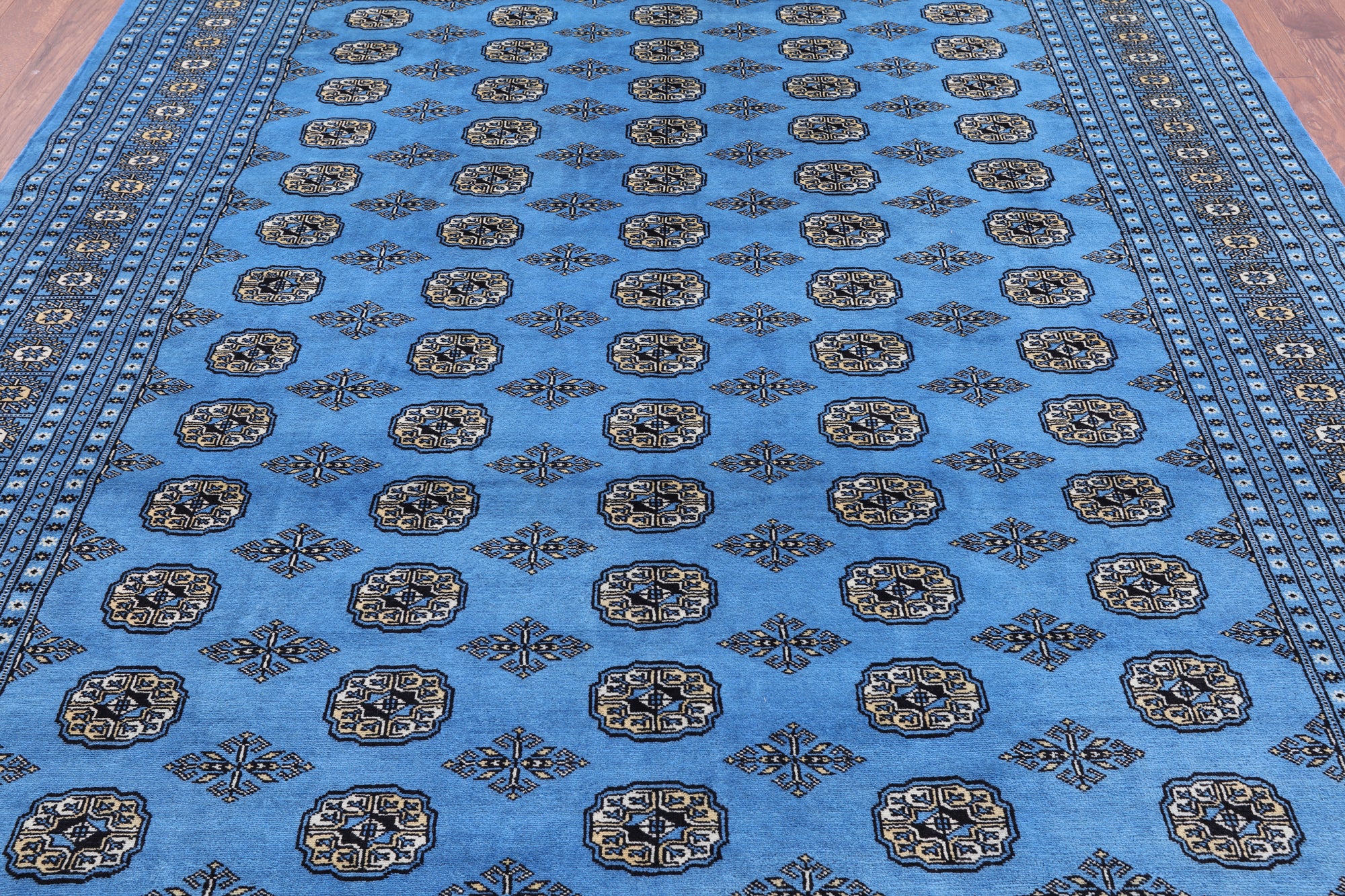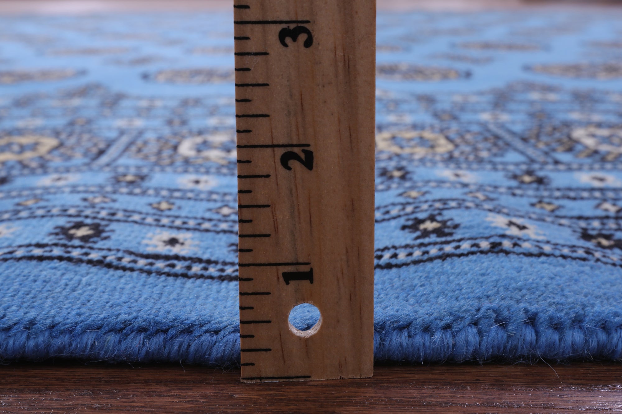 Bokhara Rugs are classic Turkoman designs originally created by nomadic tribes in India. Bokhara Rugs are among the most popular handmade rugs widely produced in Pakistan, India & Afghanistan. There foundation and heavy pile consist of wool, and have a soft luxurious feel. There unique designs consist of repeating geometric designs and vary from one tribe to another. Designs are commonly dark blue/navy, black, brown, or red with ivory accents.