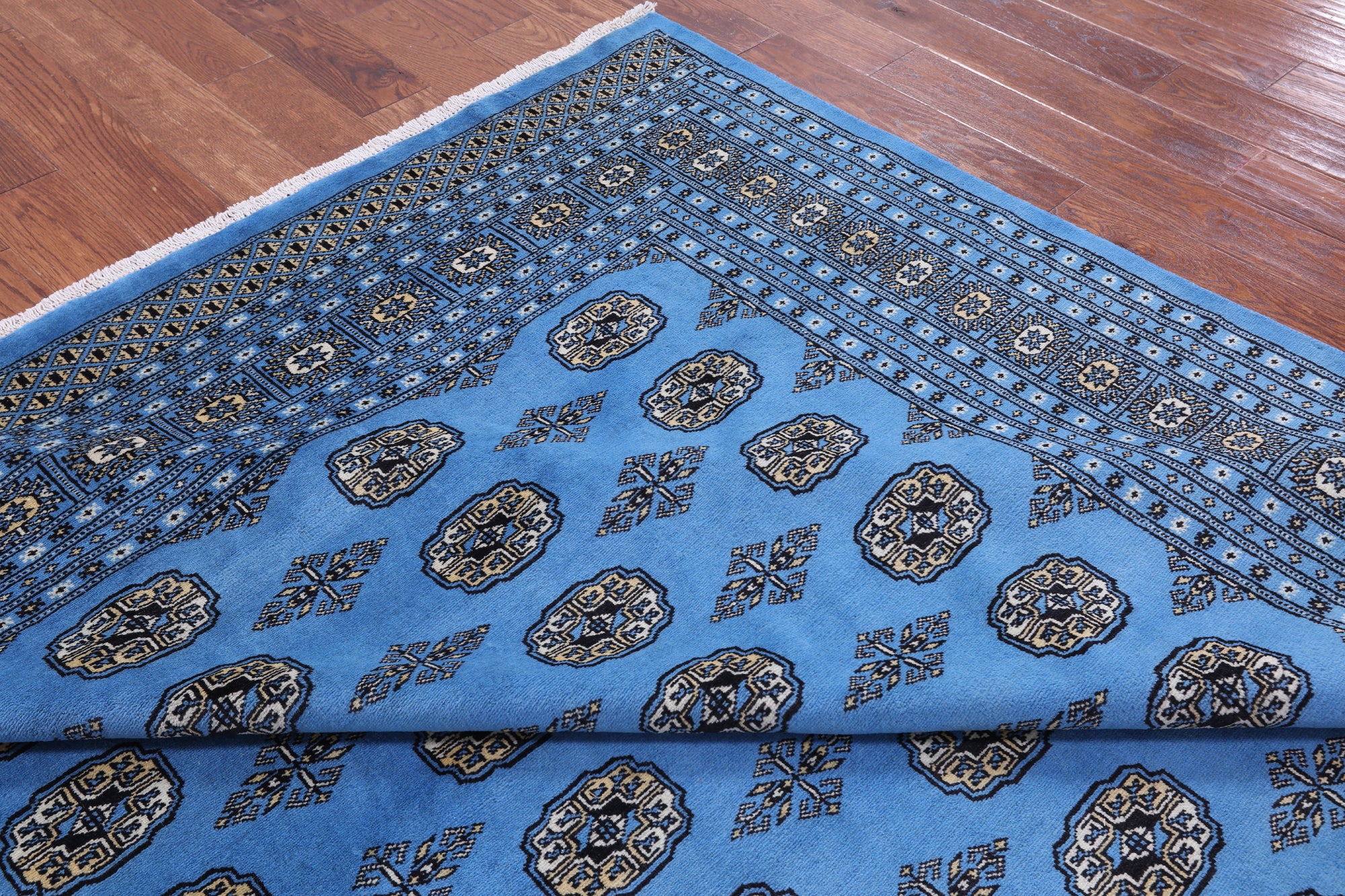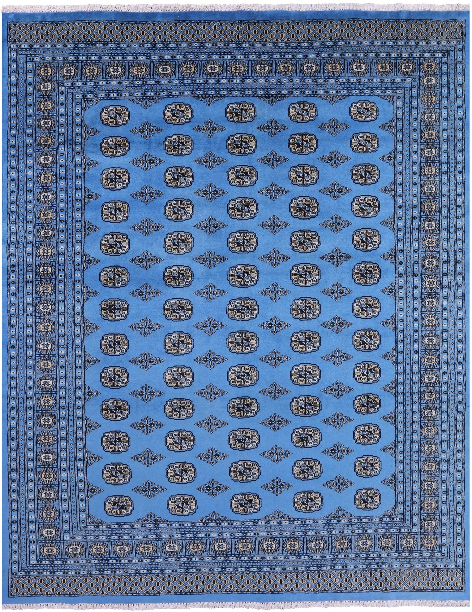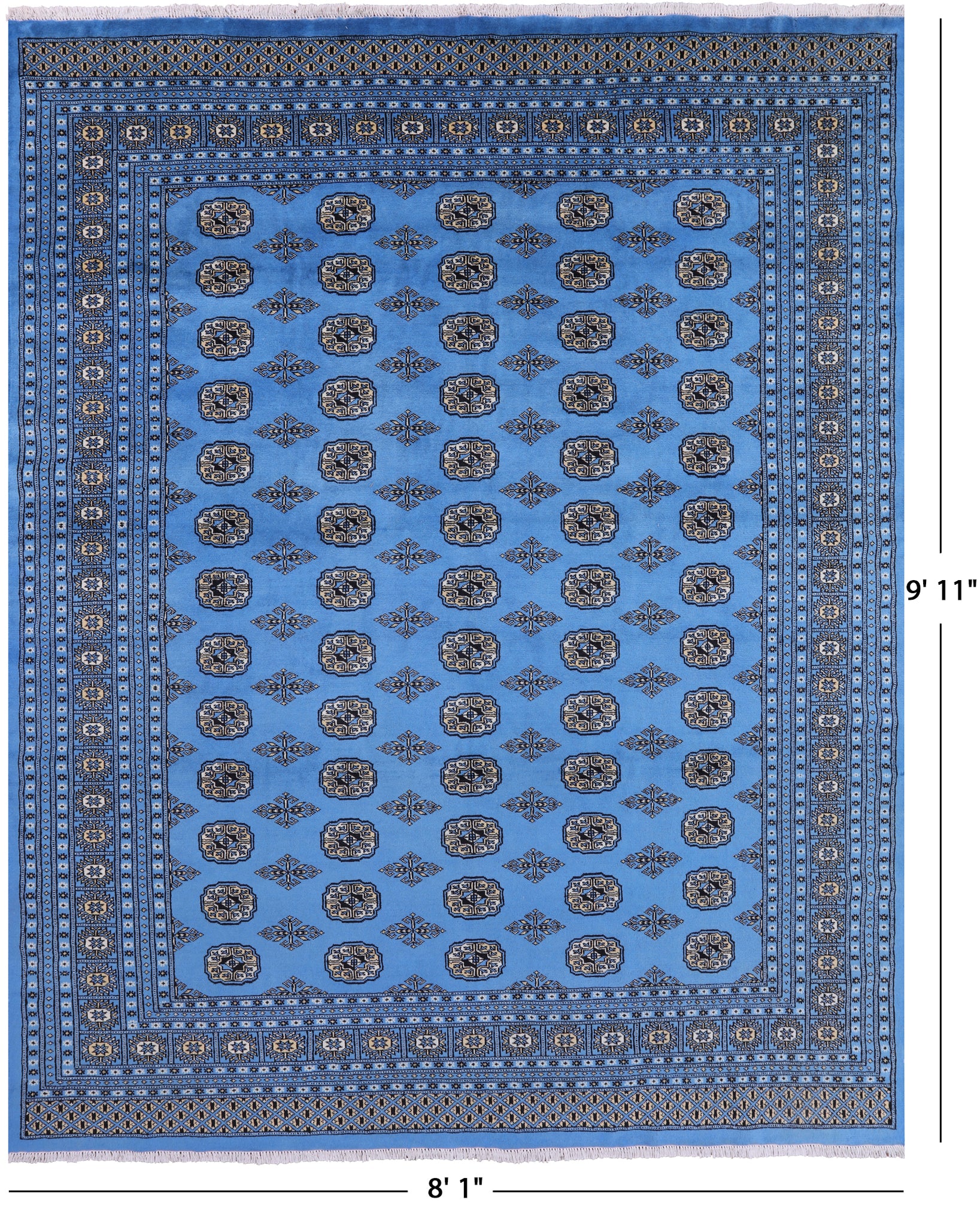 Bokhara Rugs are classic Turkoman designs originally created by nomadic tribes in India. Bokhara Rugs are among the most popular handmade rugs widely produced in Pakistan, India & Afghanistan. There foundation and heavy pile consist of wool, and have a soft luxurious feel. There unique designs consist of repeating geometric designs and vary from one tribe to another. Designs are commonly dark blue/navy, black, brown, or red with ivory accents.