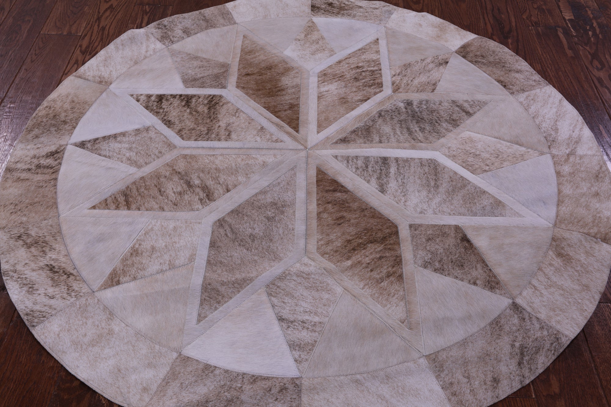 Brown Round Star Natural Cowhide Hand Stitched Patchwork Rug - 5' 0" X 5' 0"