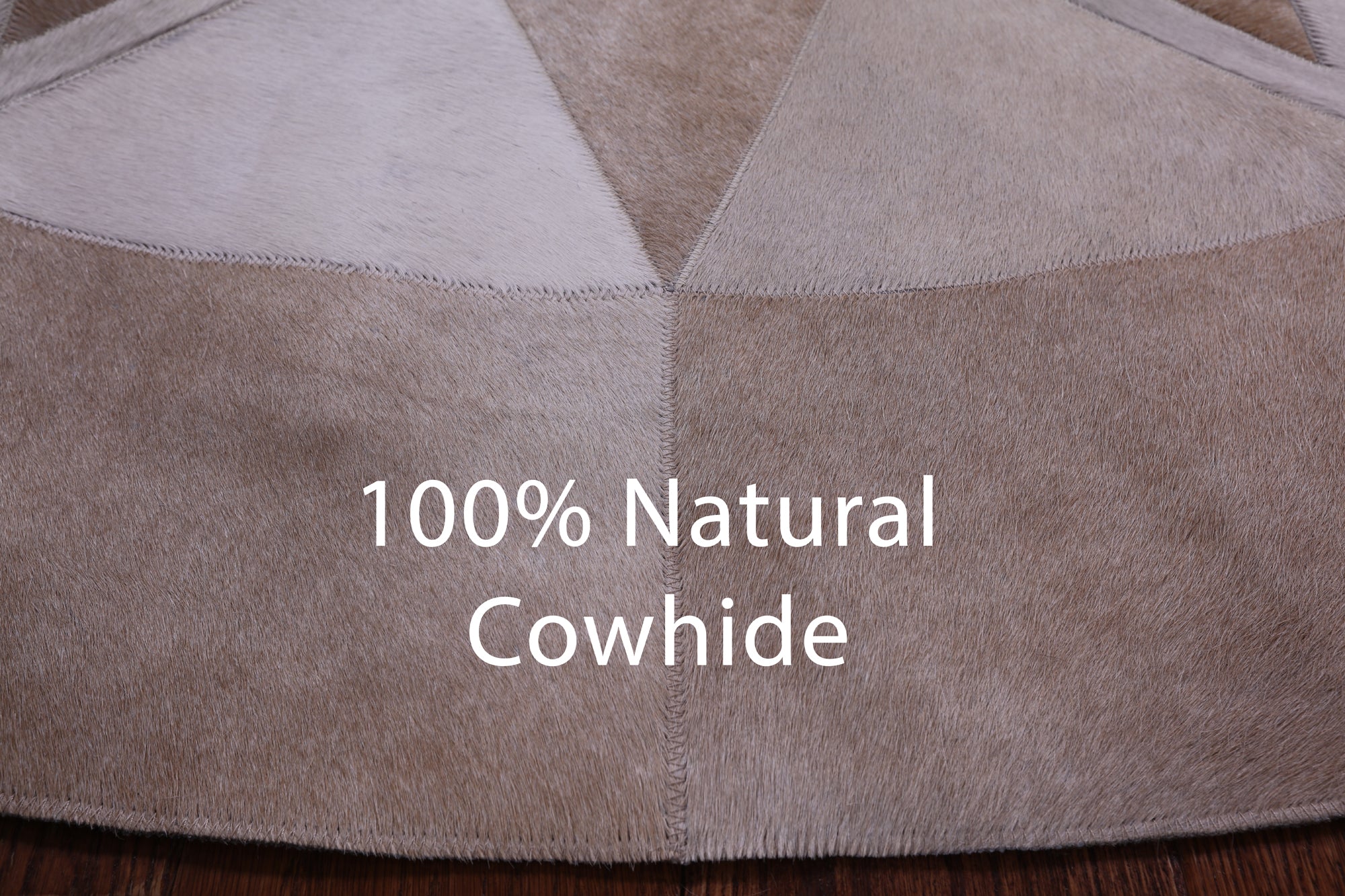 Brown Round Star Natural Cowhide Hand Stitched Patchwork Rug - 6' 6" X 6' 6"