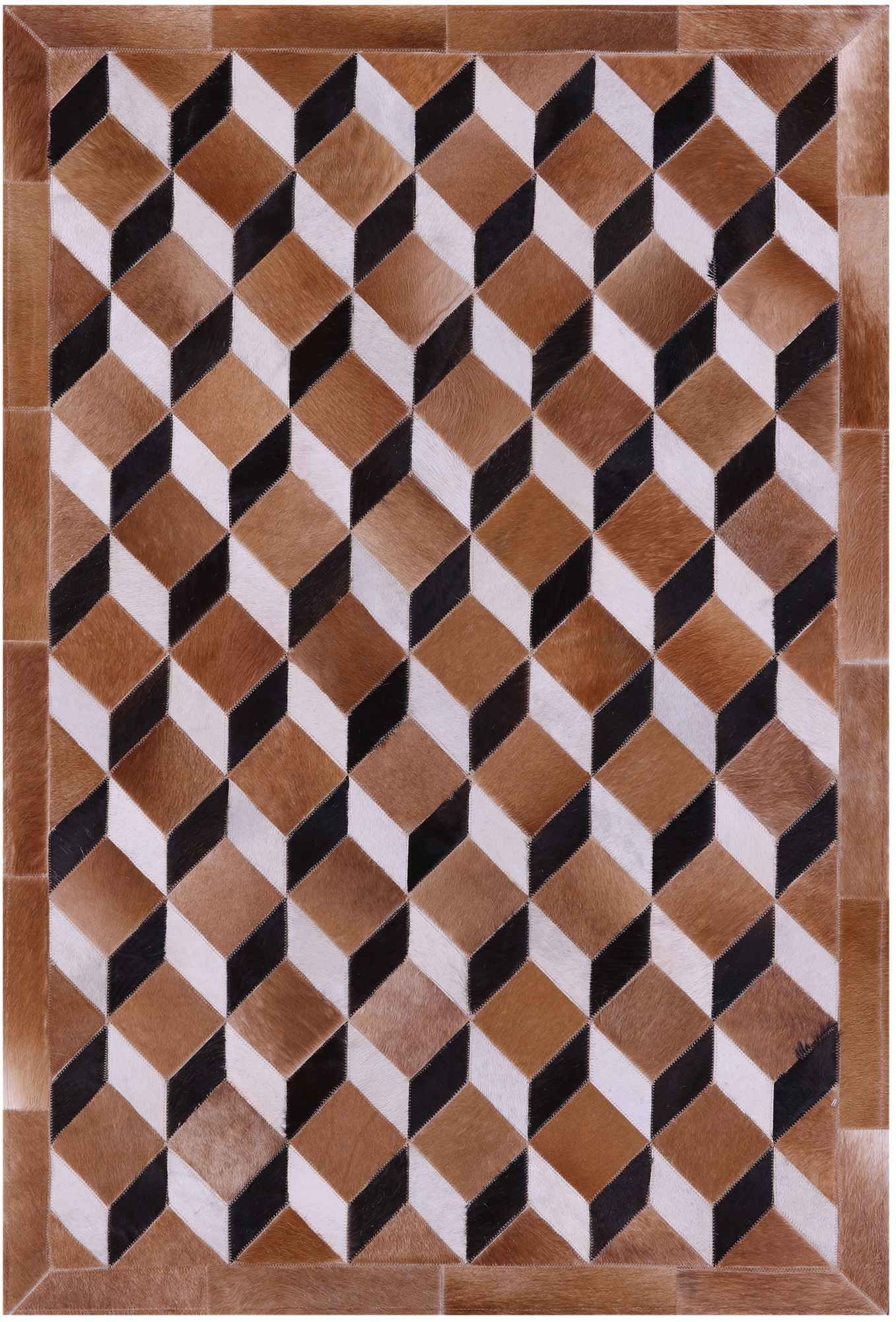 Brown & White Black Natural Cowhide Hand Stitched Patchwork Rug - 3' 5" X 5' 0"